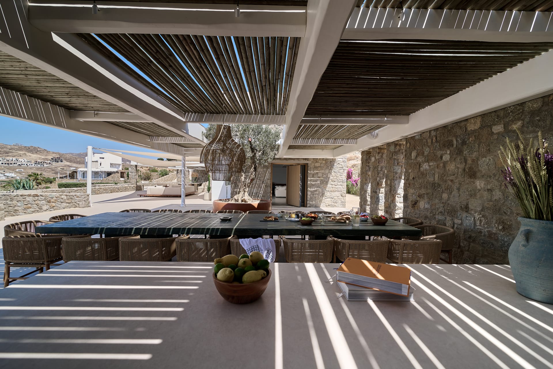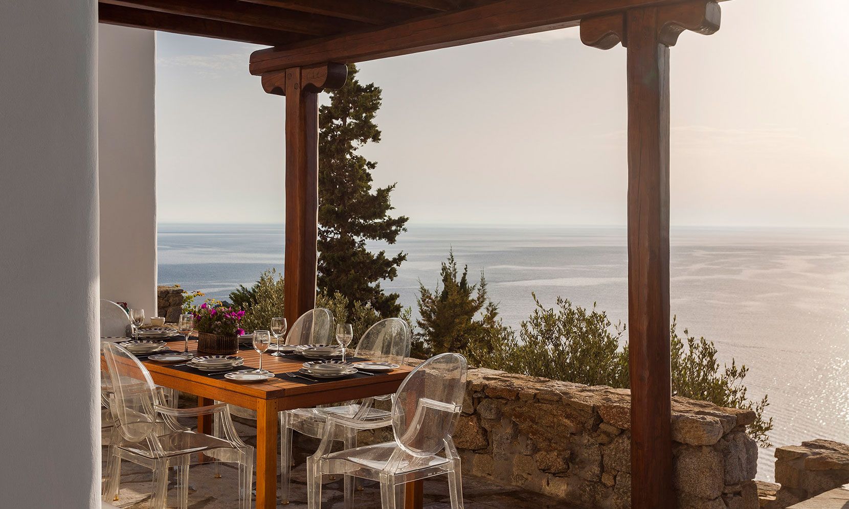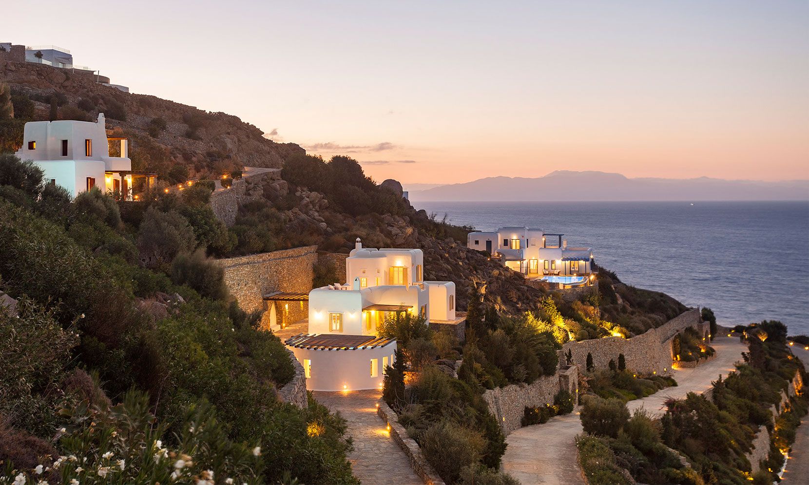 Mykonos Villa Zafira 5 offers exclusive, luxurious privacy just minutes from the island’s most notorious beaches, most eclectic night-life entertainment and most remarkable dining experiences that Mykonos is so famous for. The villa showcases its own Mykonian elegance and is perfectly nestled within the 24/7 access-controlled property where tranquility, sunsets and courteous concierge can accompany or accommodate any desire and ensure that you can concentrate on indulging in unforgettable revelry and/or relaxation. To add to this, the property is uniquely protected from the Etesian Meltemi winds, so you can spend your time outdoors even when the rest of the island is windy.