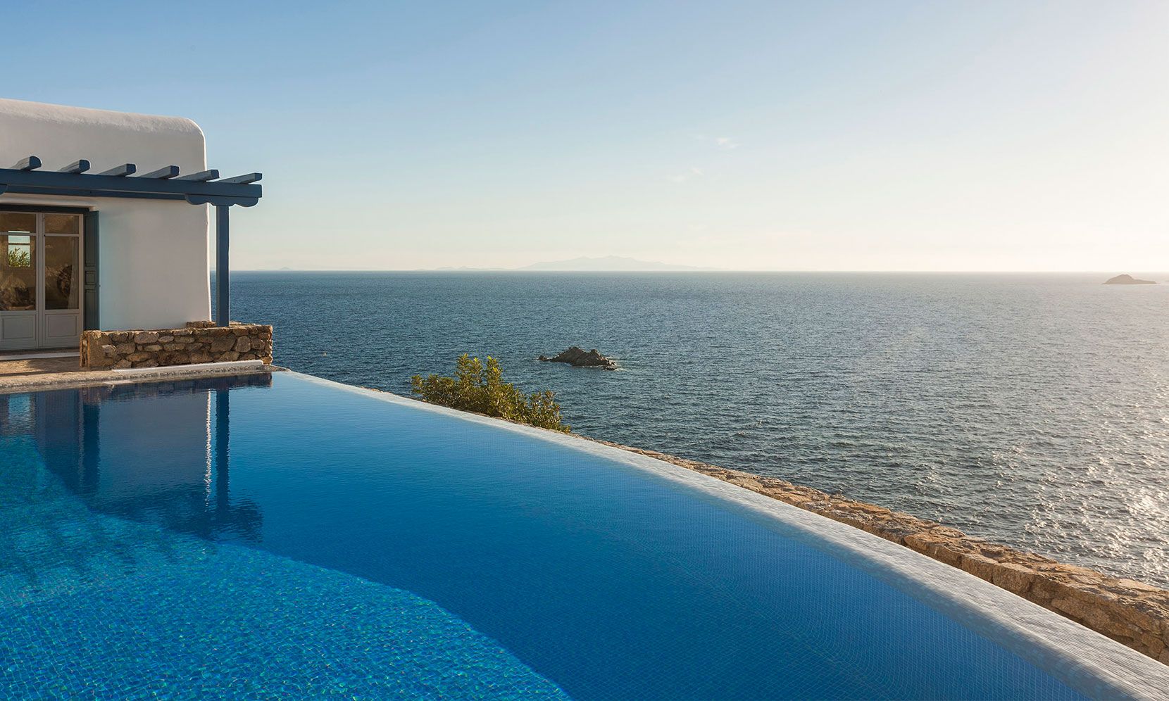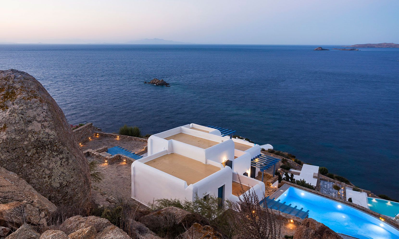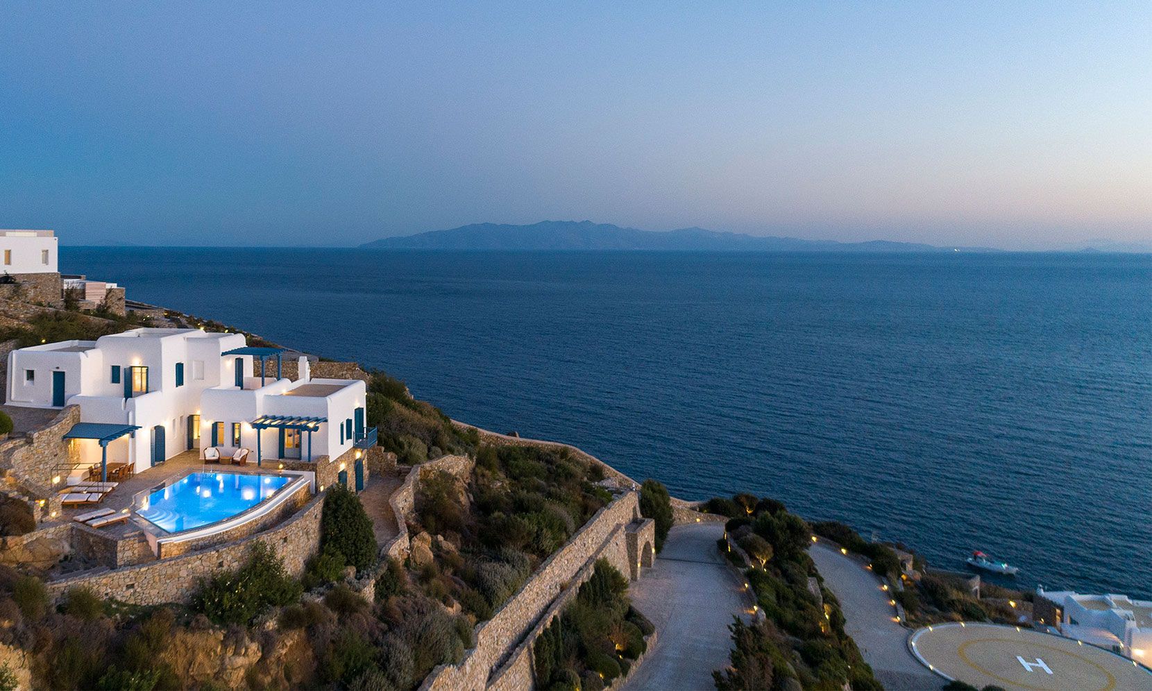 Mykonos Villa Zafira 6 offers exclusive, luxurious privacy just minutes from the island’s most notorious beaches, most eclectic night-life entertainment and most remarkable dining experiences that Mykonos is so famous for. The villa showcases its own Mykonian elegance and is perfectly nestled within the 24/7 access-controlled property where tranquility, sunsets and courteous concierge can accompany or accommodate any desire and ensure that you can concentrate on indulging in unforgettable revelry and/or relaxation. To add to this, the property is uniquely protected from the Etesian Meltemi winds, so you can spend your time outdoors even when the rest of the island is windy.