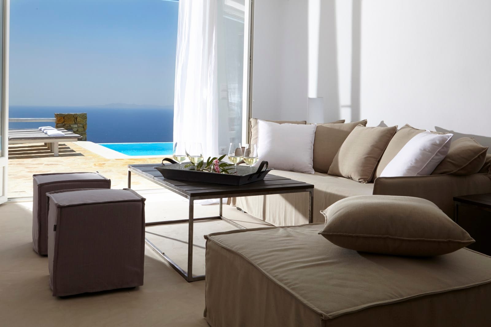 Escape in Mykonos Villa Zenais, a private luxury Mykonos Villa, away from the buzz of the town. Located in Kanalia, in the northern part of the island, it is the perfect destination for family vacation of up to 14 guests.