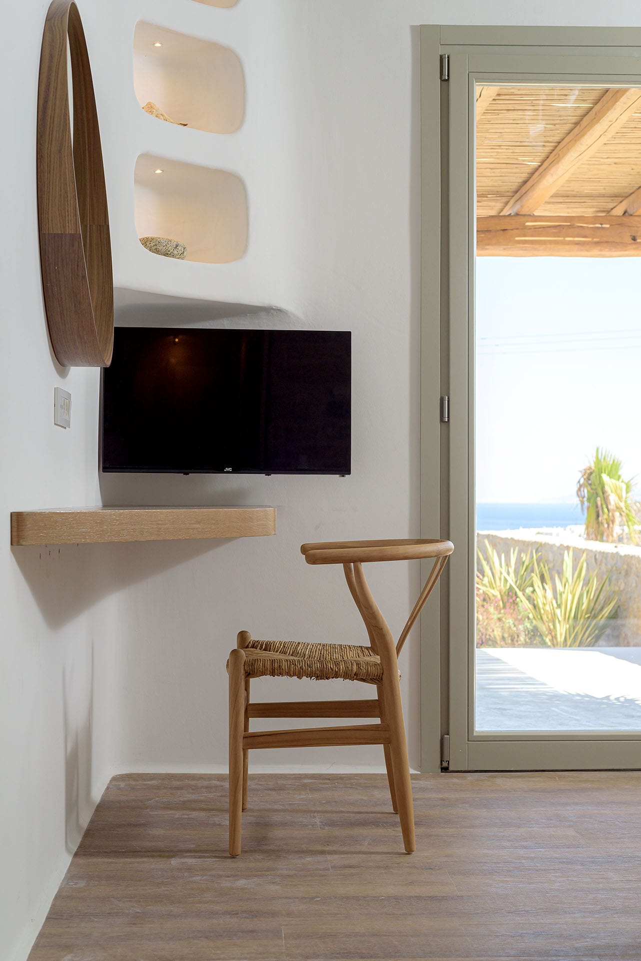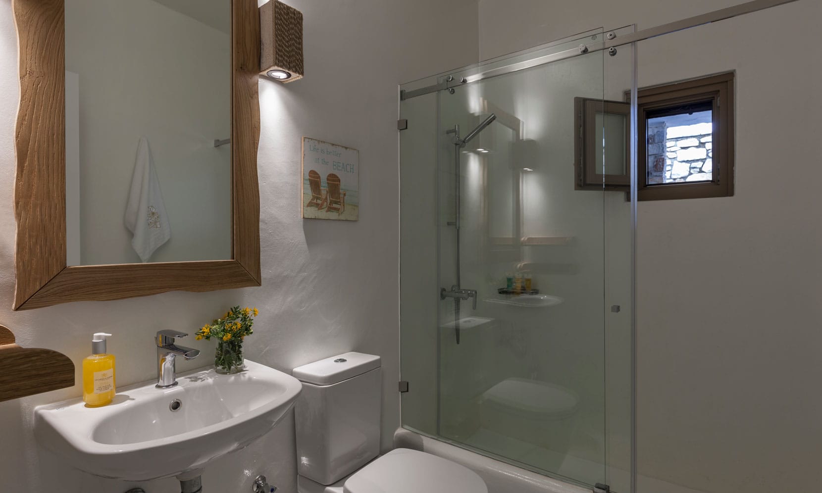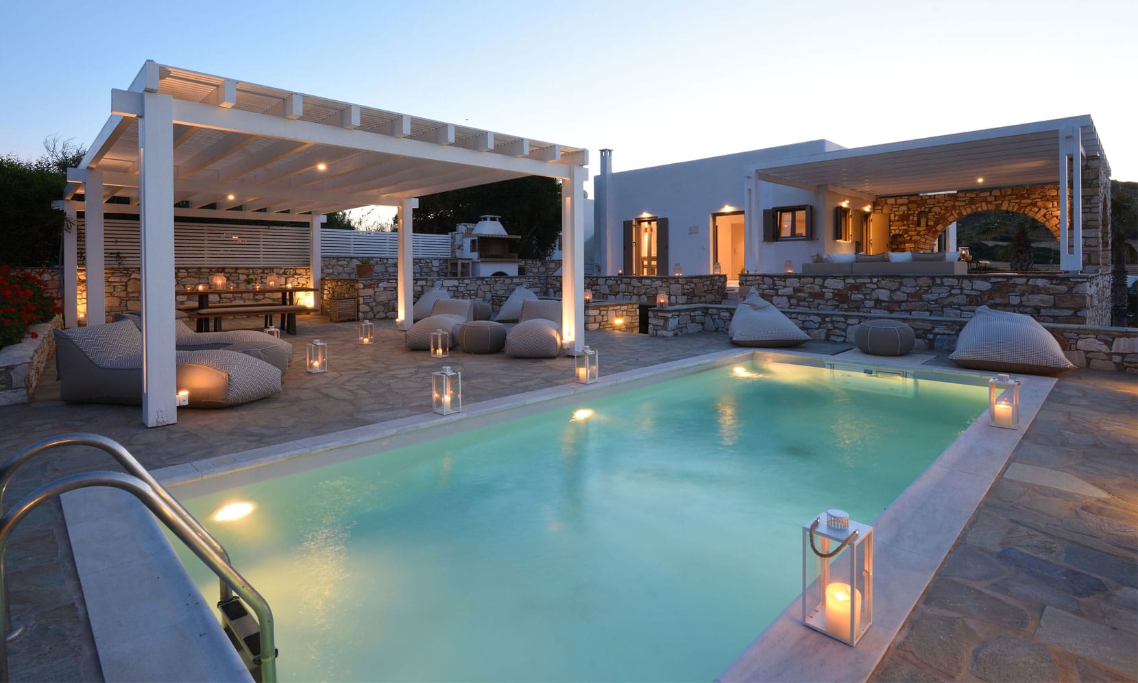 Authentic decorations, natural stone, and quality white furnishings adorn the white-washed interiors creating an atmosphere of pure bliss and relaxation. Idyllically set in the quaint fishing village of Ambellas, 150 meters from the beach overlooking the crystal clear waters of the Aegean Sea this charming Greek villa offers a tranquil retreat for memorable vacations.