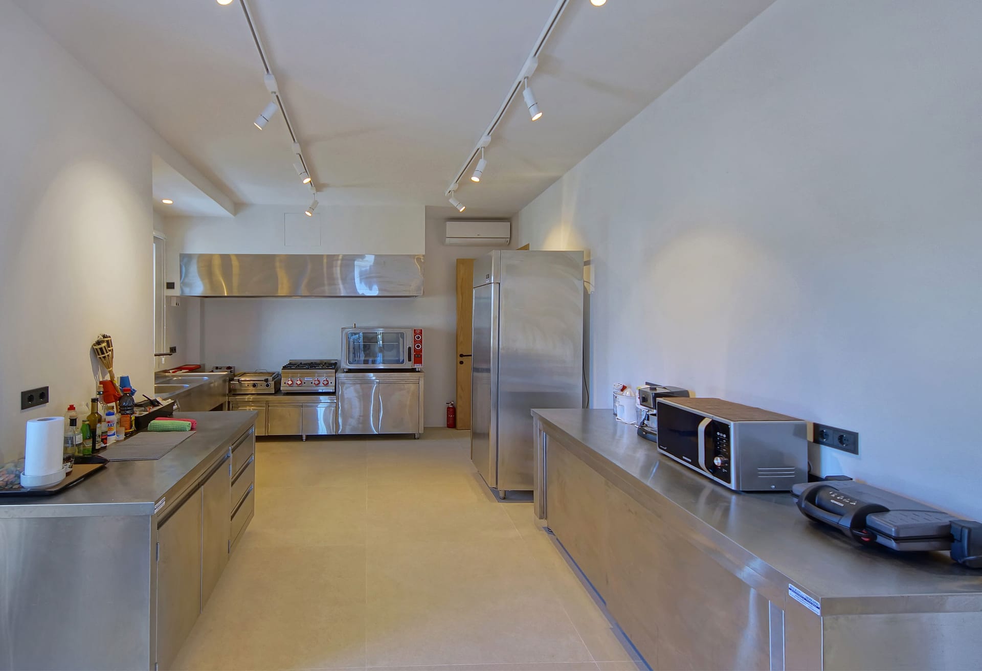 The impressive main building , unfolds on two levels, including master suite with en suite bathroom on the forst floor, and two more bedrooms on the ground level, one with its own indepedent entrance. The same building houses the main indoor lounge with its spectacular sea view and a fully equipped kithcen, as well as professional catering area. Three more indepedent rooms with private balconies with view to the Aegean Sea, can double as guests rooms. All area have direct access to the outdoors, and provide all guests with a unique living experience.
