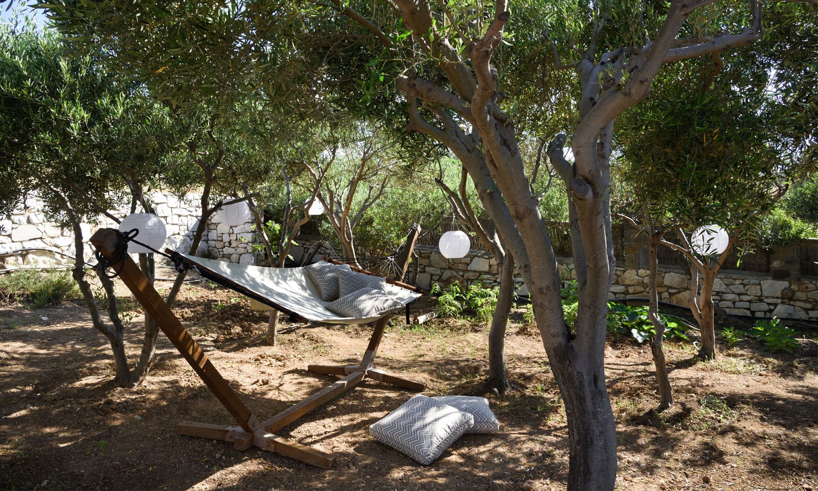 At the beautiful pool terrace guest can enjoy a refreshing swim in the crystalline waters of the pool, relax with an ice cold cocktail as they soak up the everlasting sun while laying in one of the comfy loungers or unwind under the natural shade of the enormous Kedros tree at the secluded sitting area fitted with stone build bed sofas and bamboo furnishings. The flickering candles and divine aromas of Parisian roses and natural herbs make this corner of the villa the perfect spot for intimate moments of relaxation in view of the cerulean endless horizon.