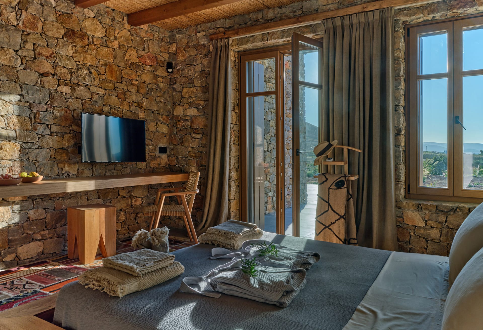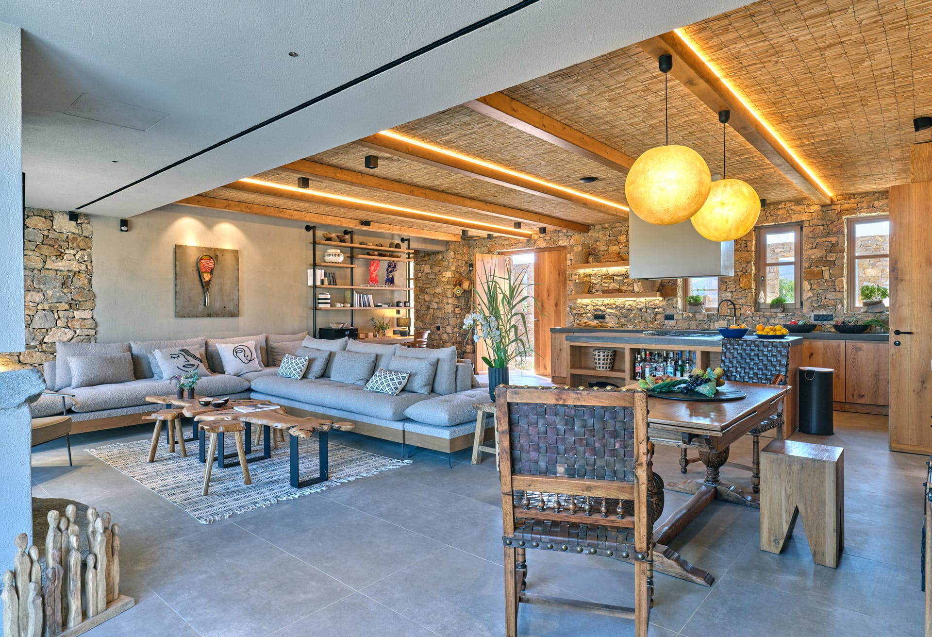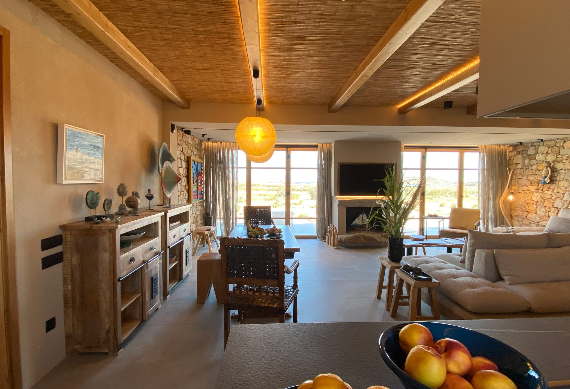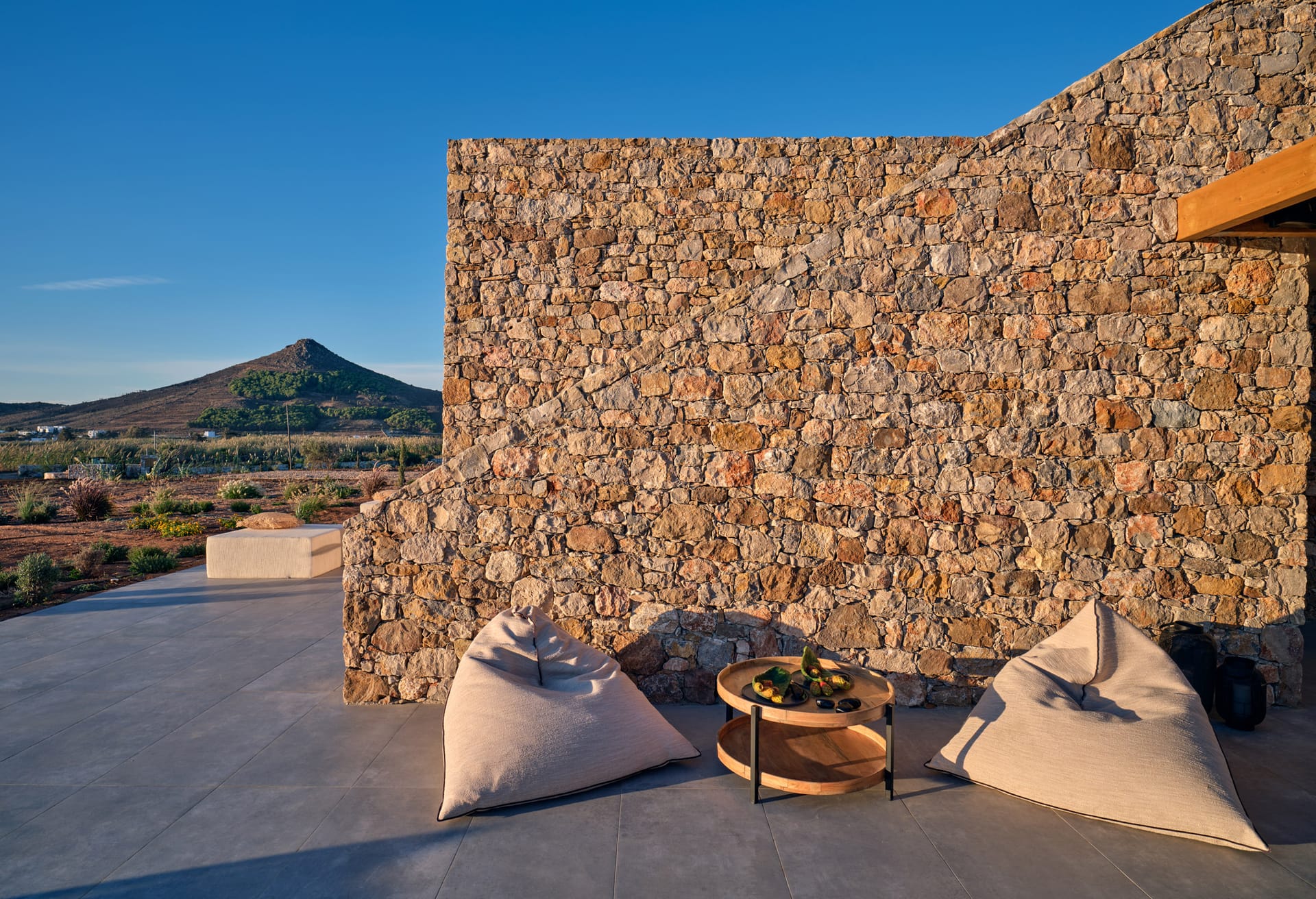 Mardiva farmhouse is a brand-new, two-level stone villa located on the eastern side of Paros.