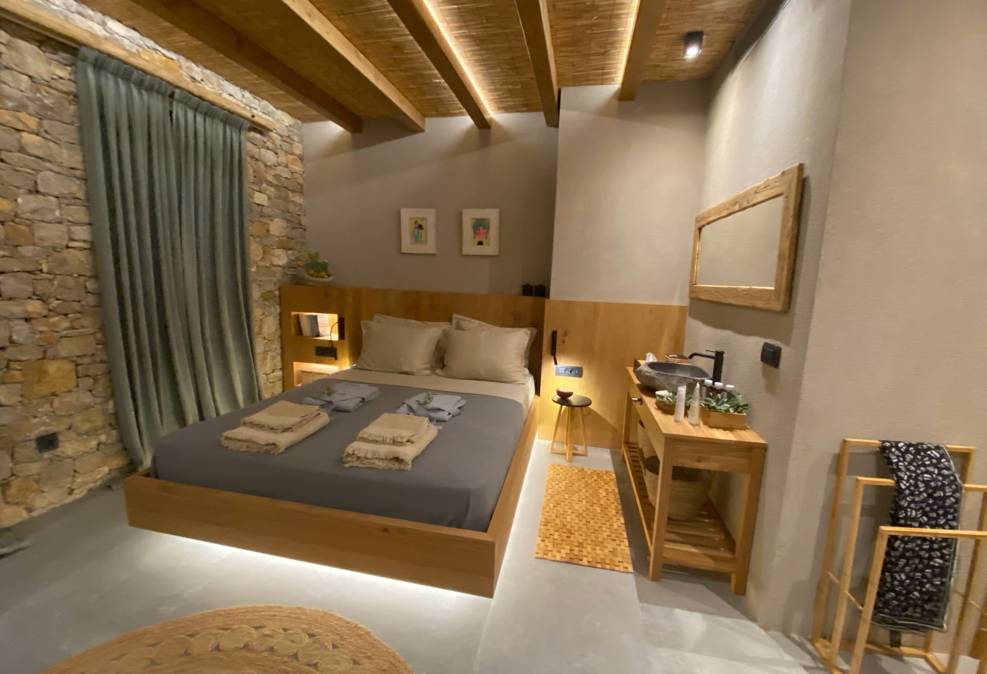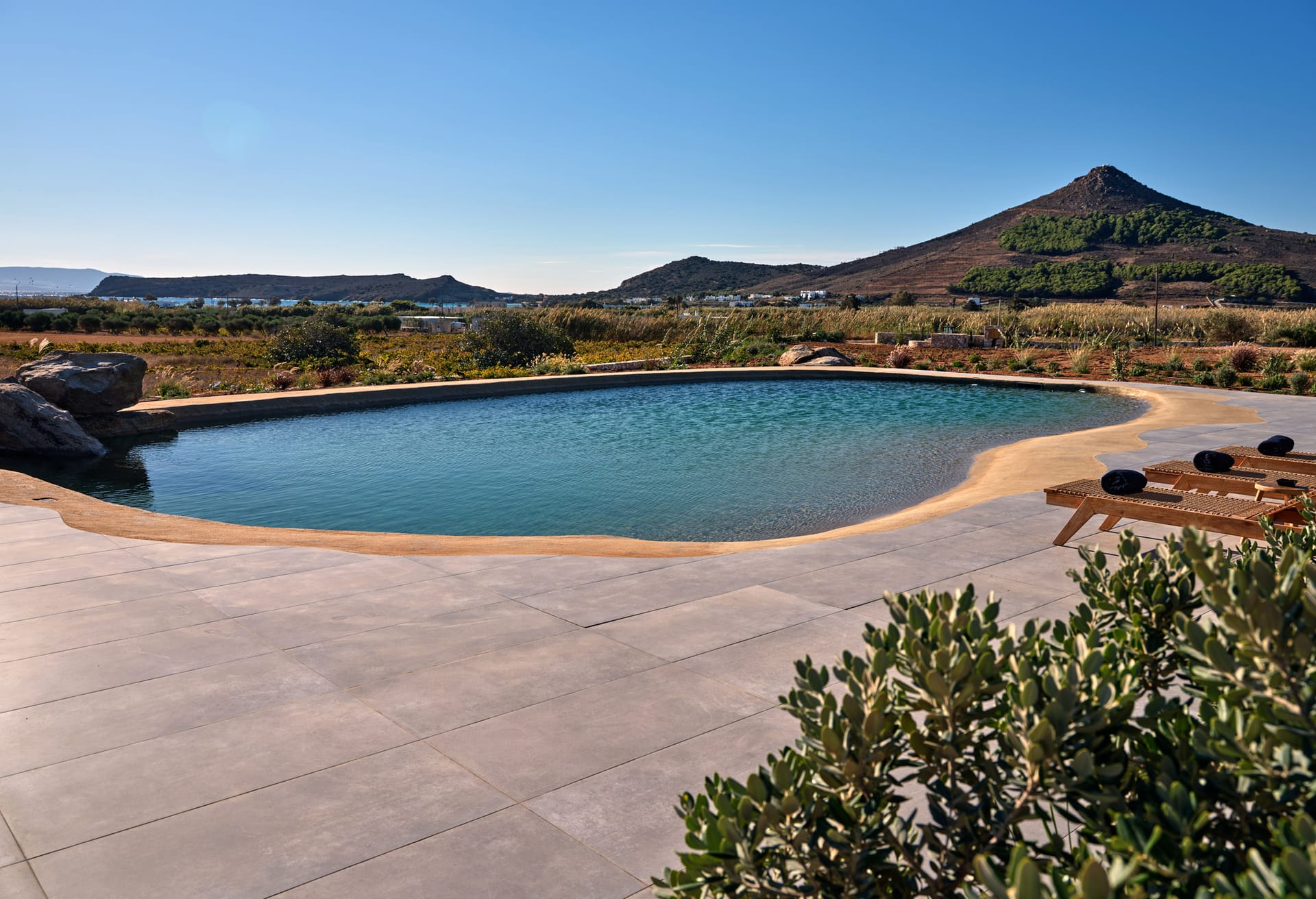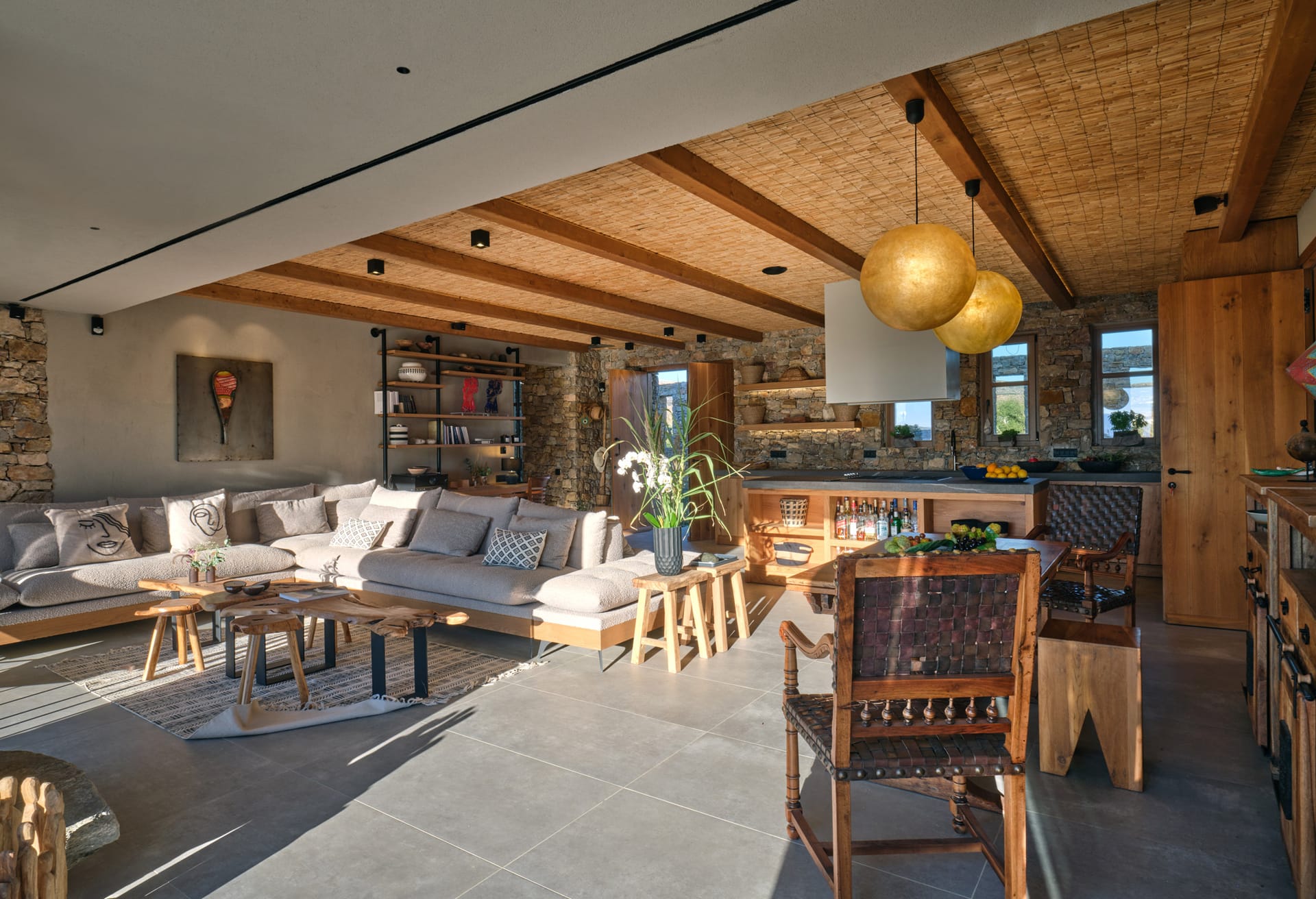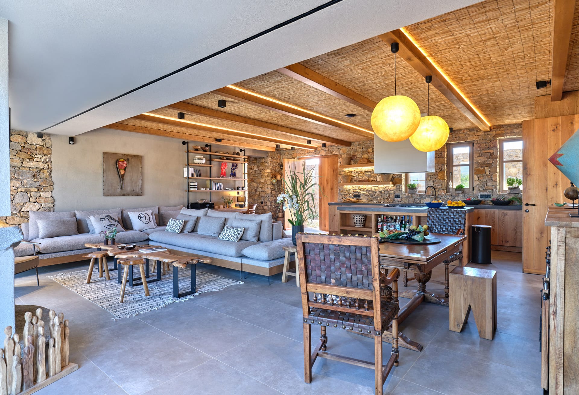 Mardiva farmhouse is a brand-new, two-level stone villa located on the eastern side of Paros.