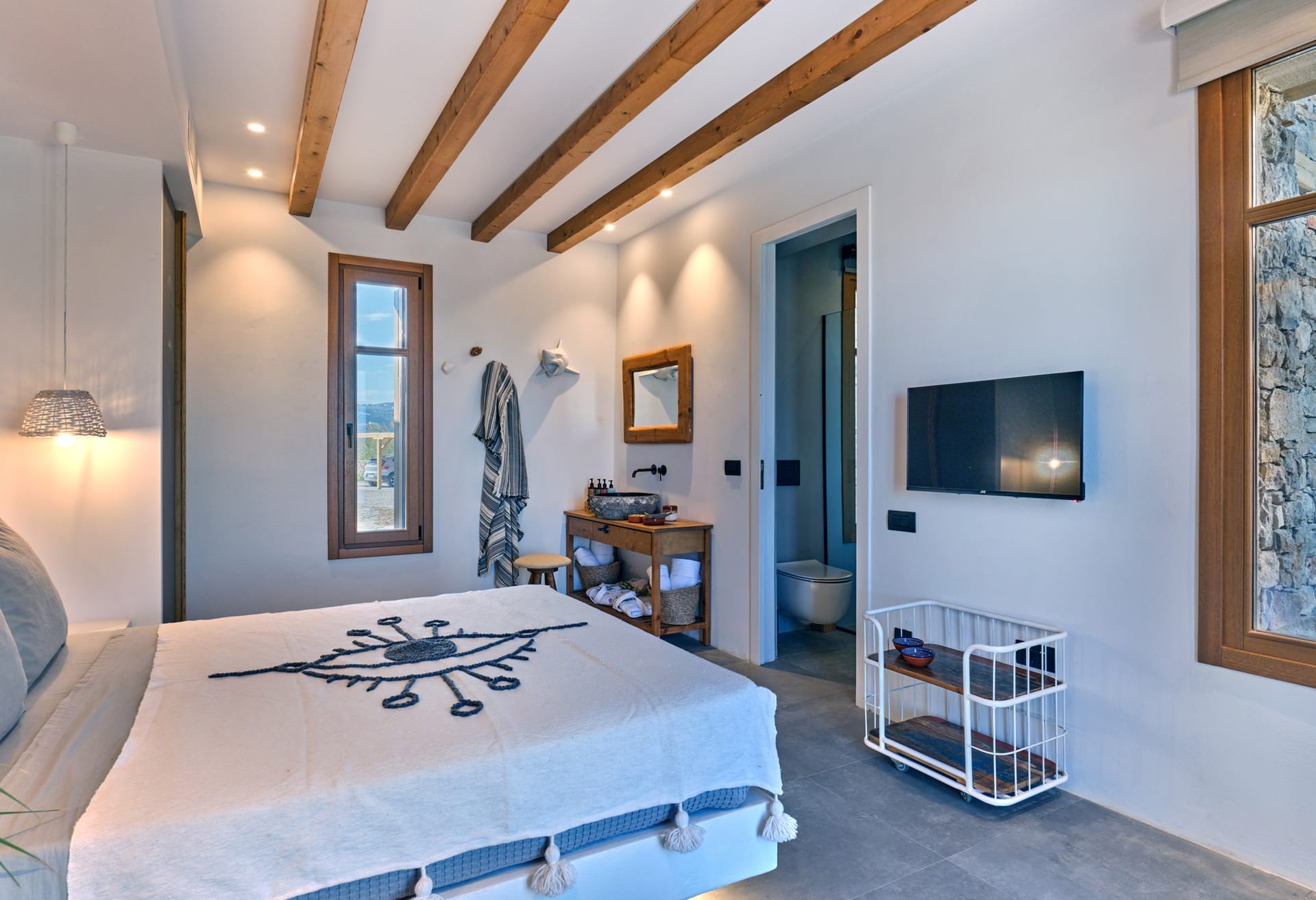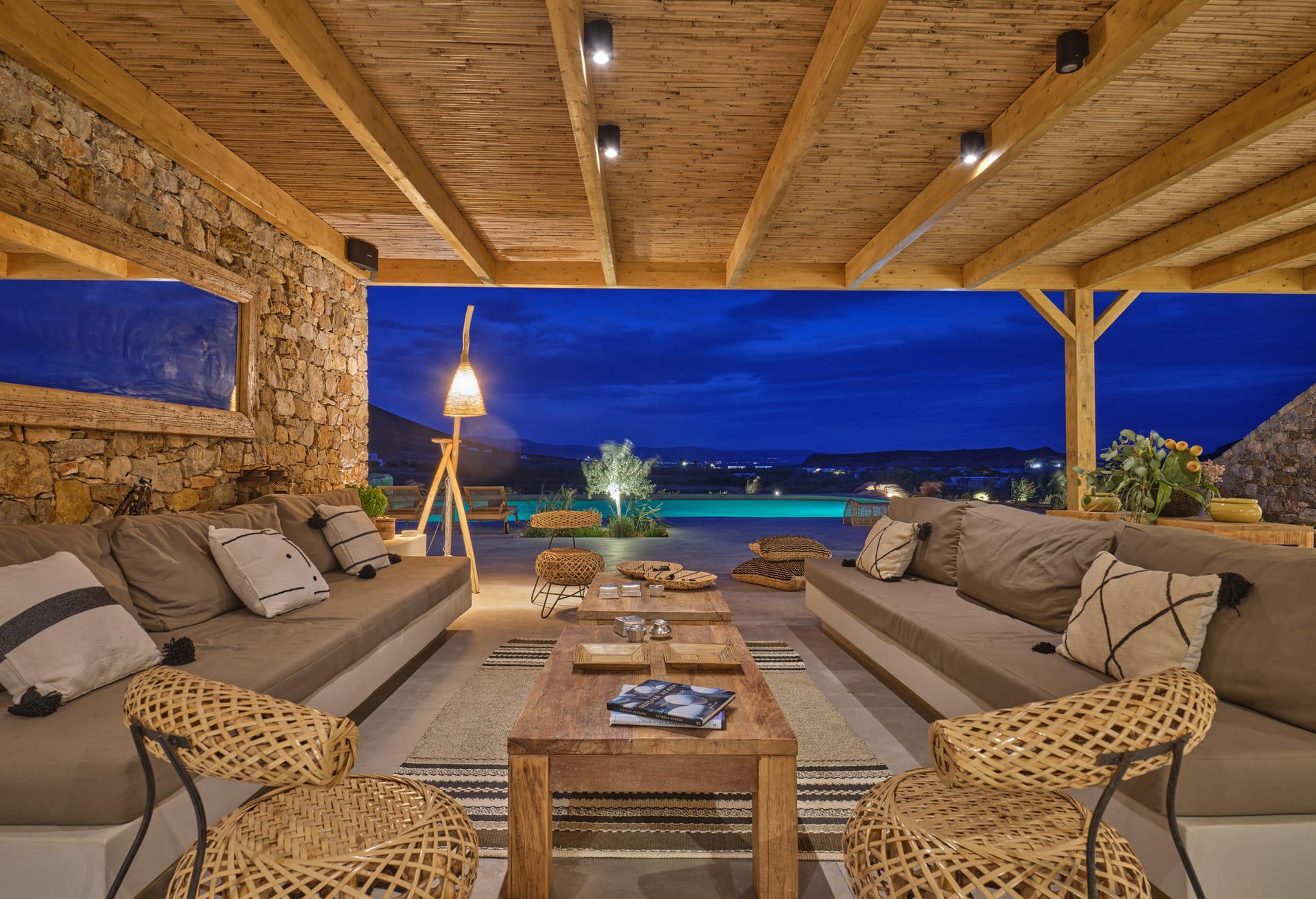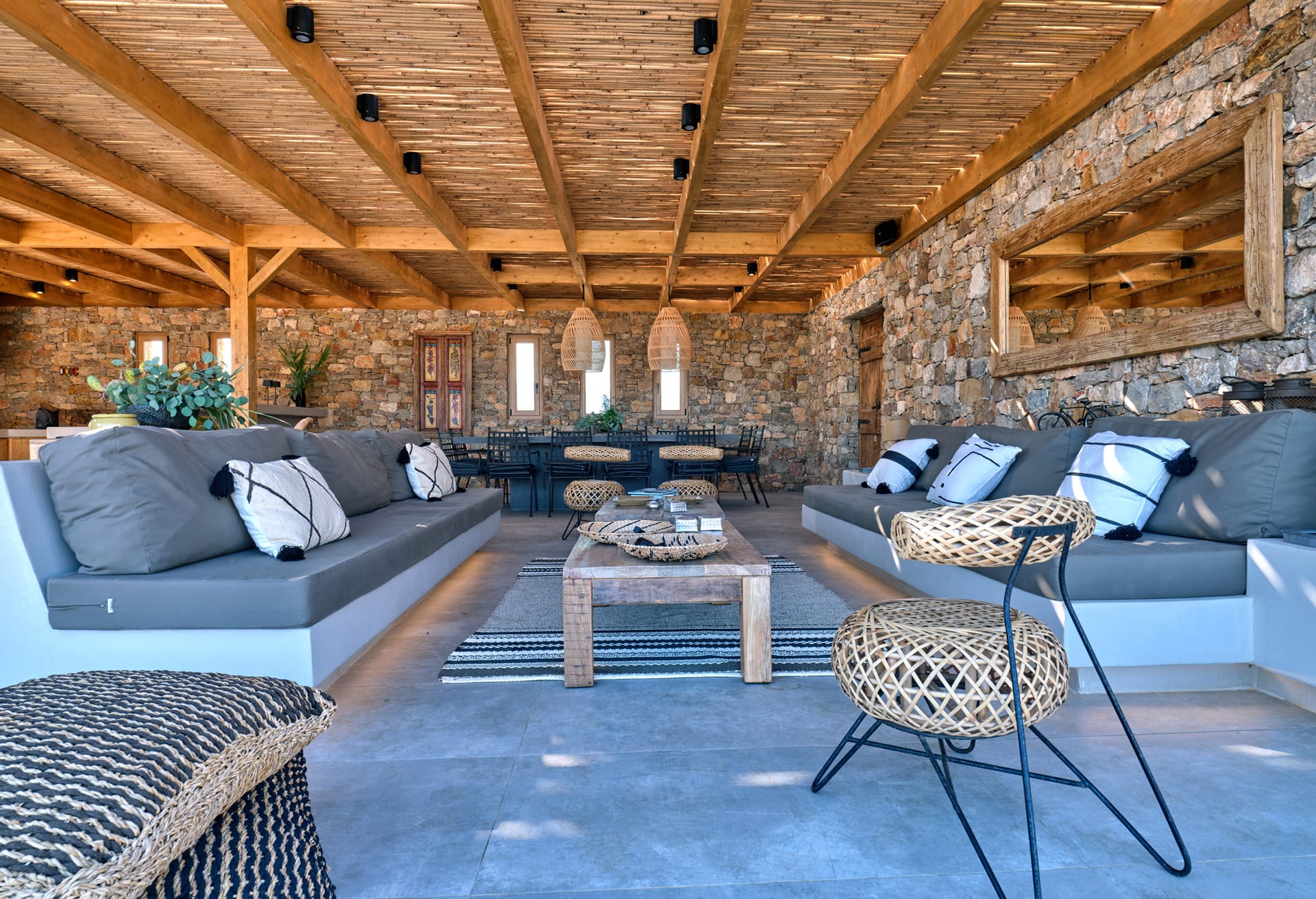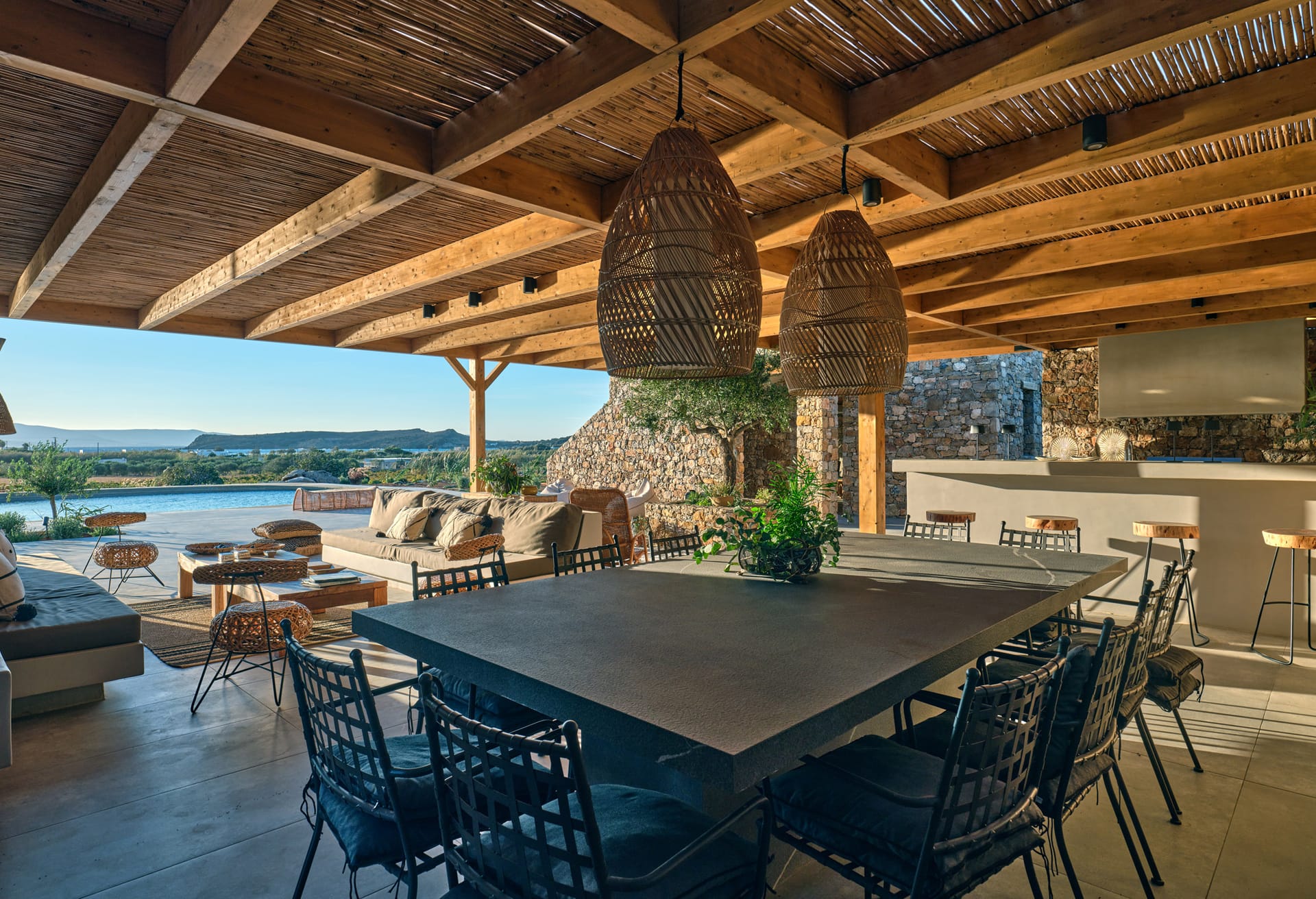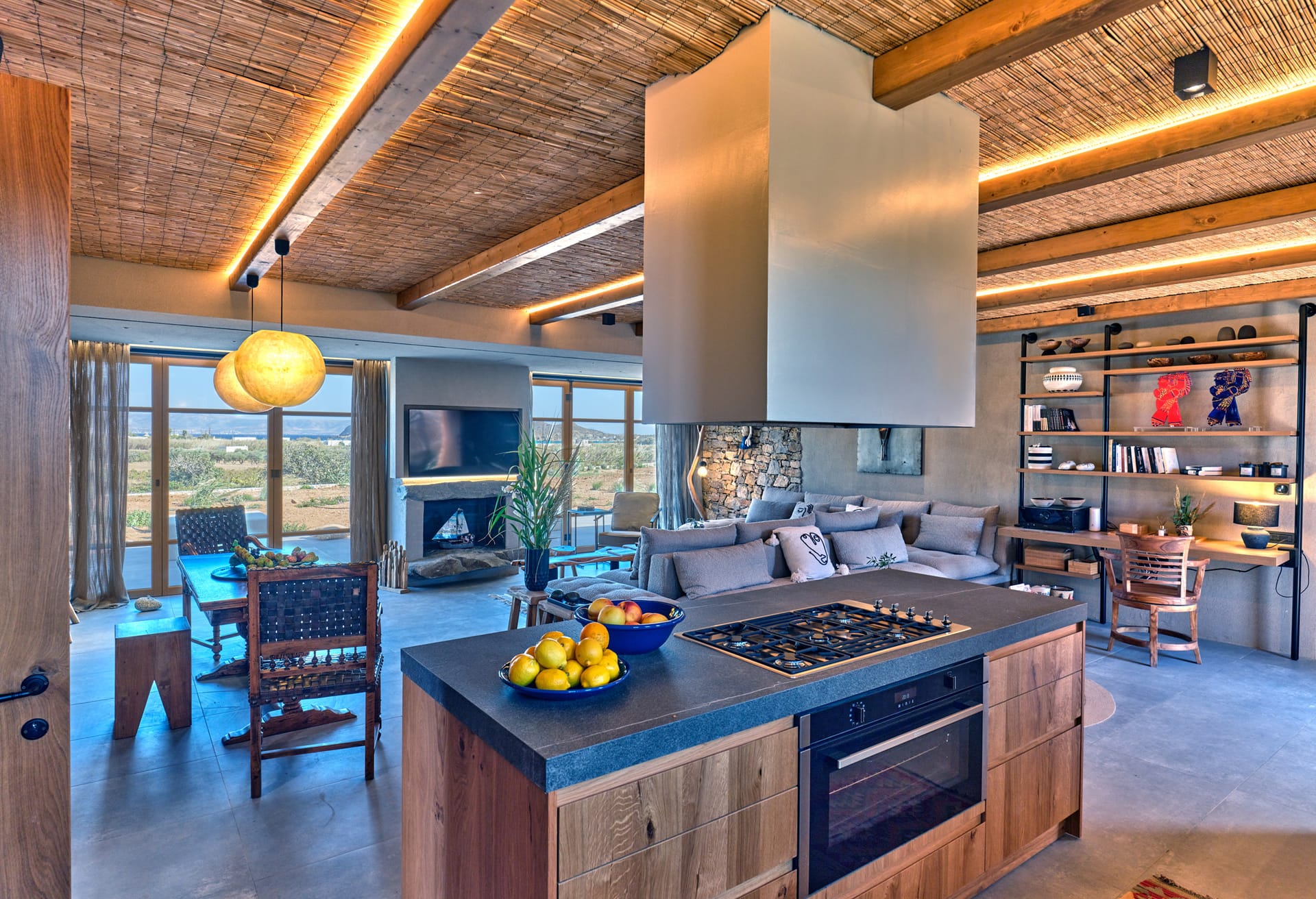 Mardiva farmhouse is a brand-new, two-level stone villa located on the eastern side of Paros.