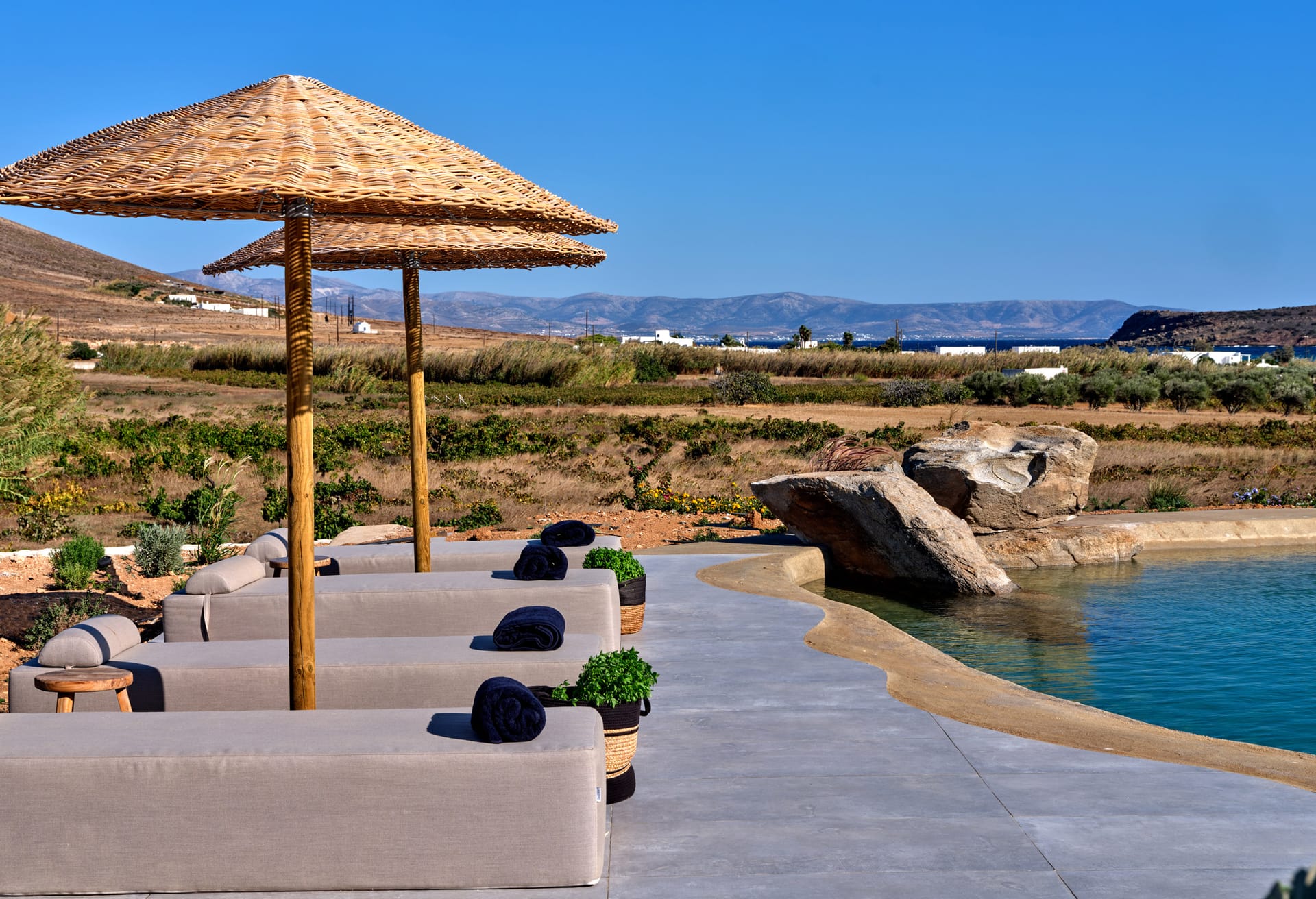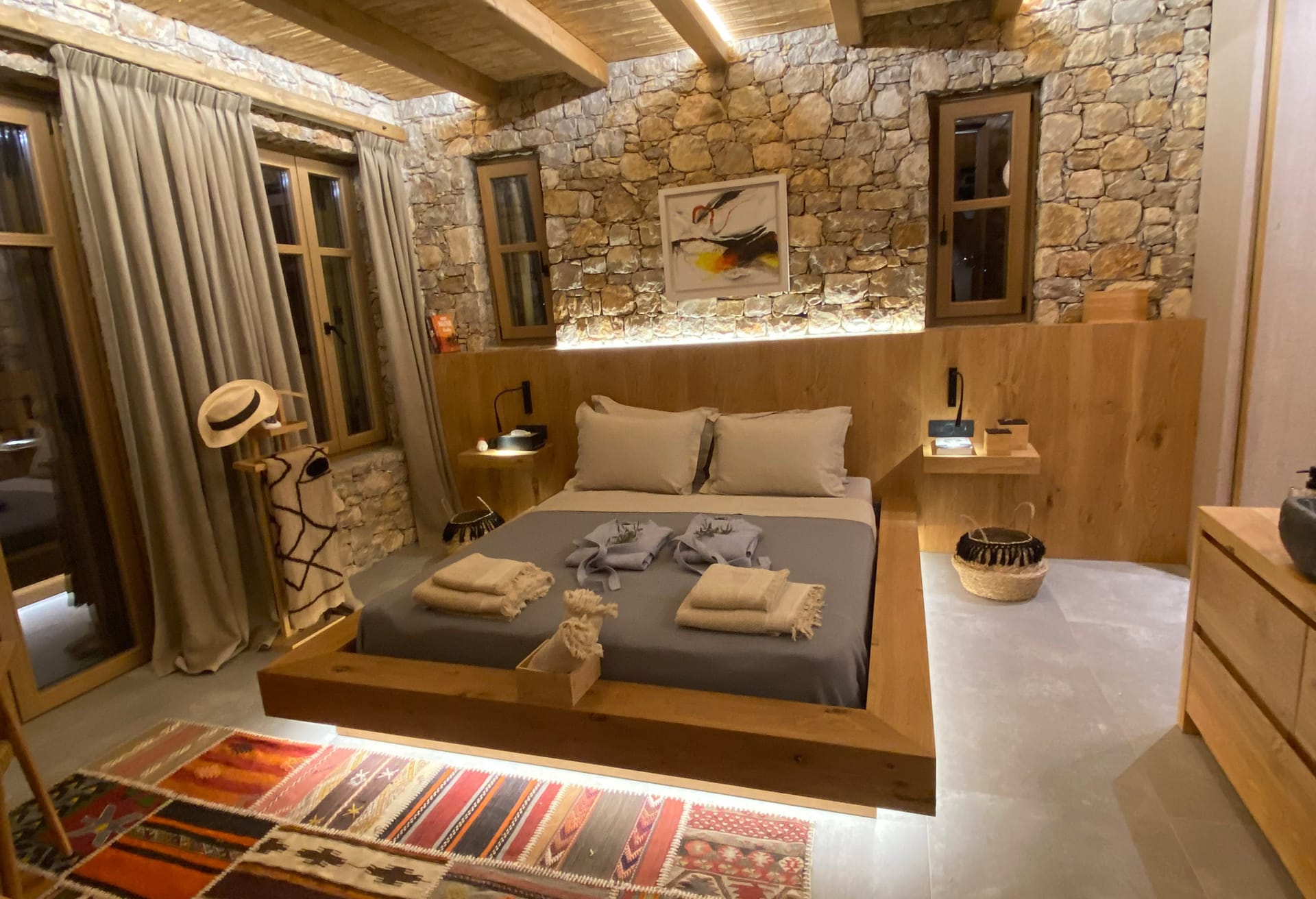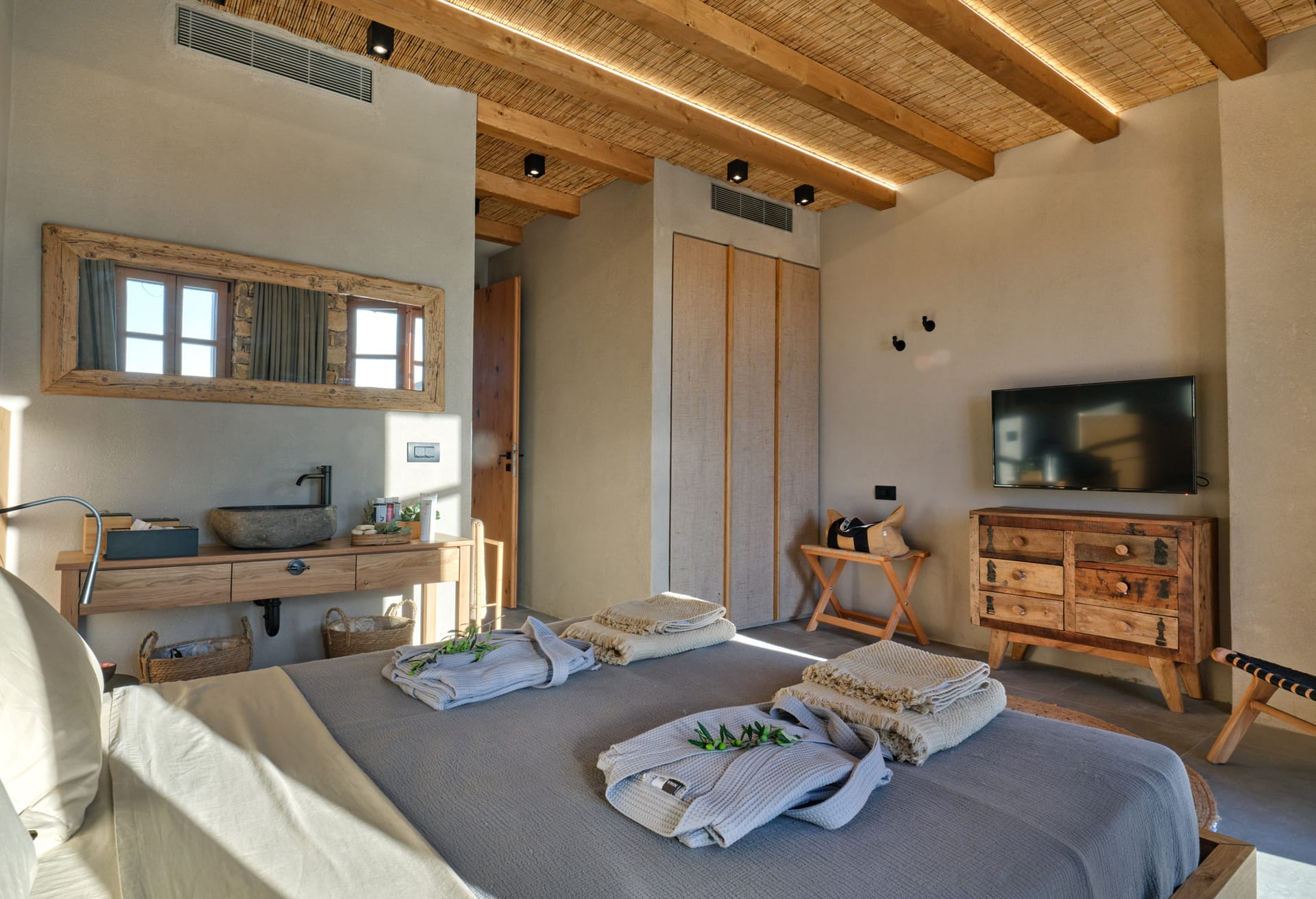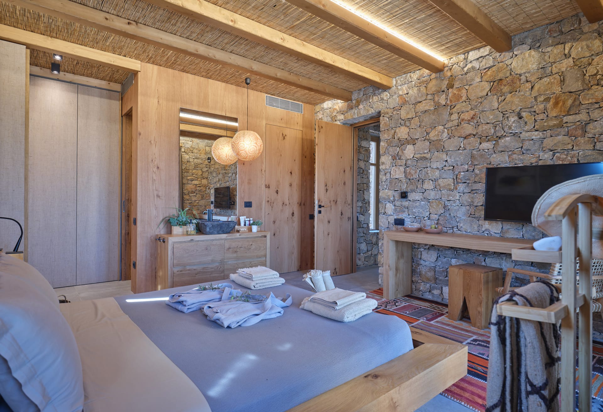 Mardiva farmhouse is a brand-new, two-level stone villa located on the eastern side of Paros.
