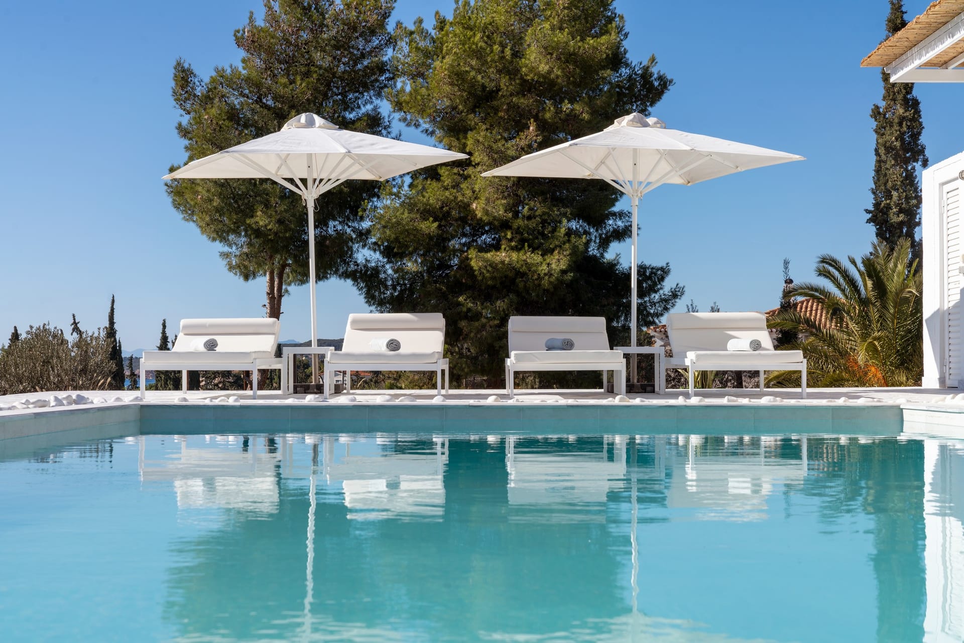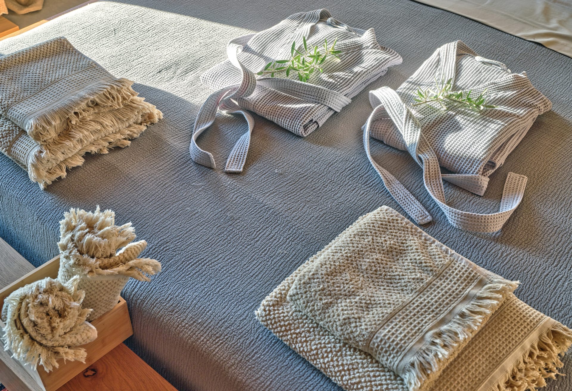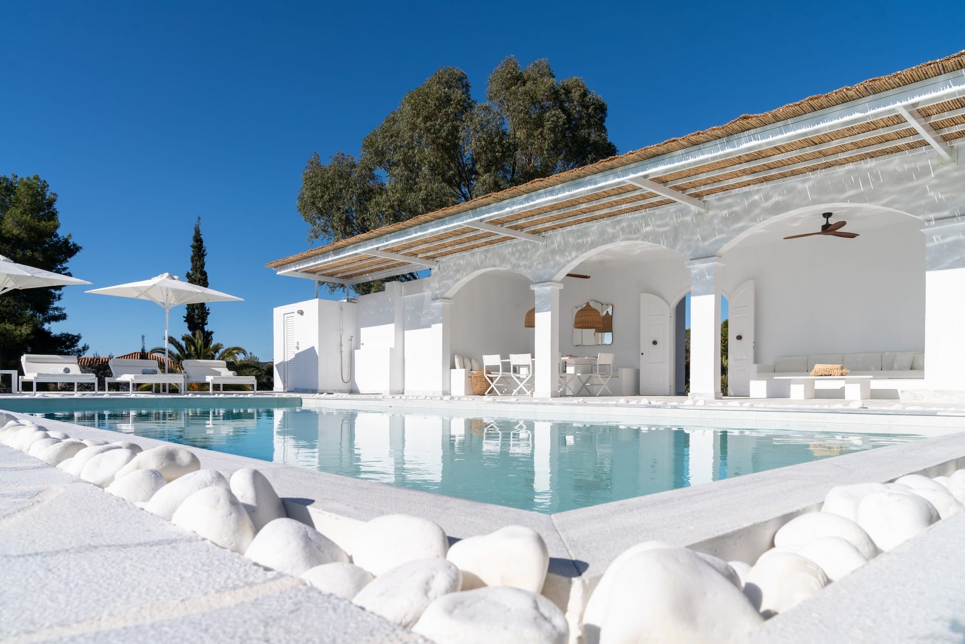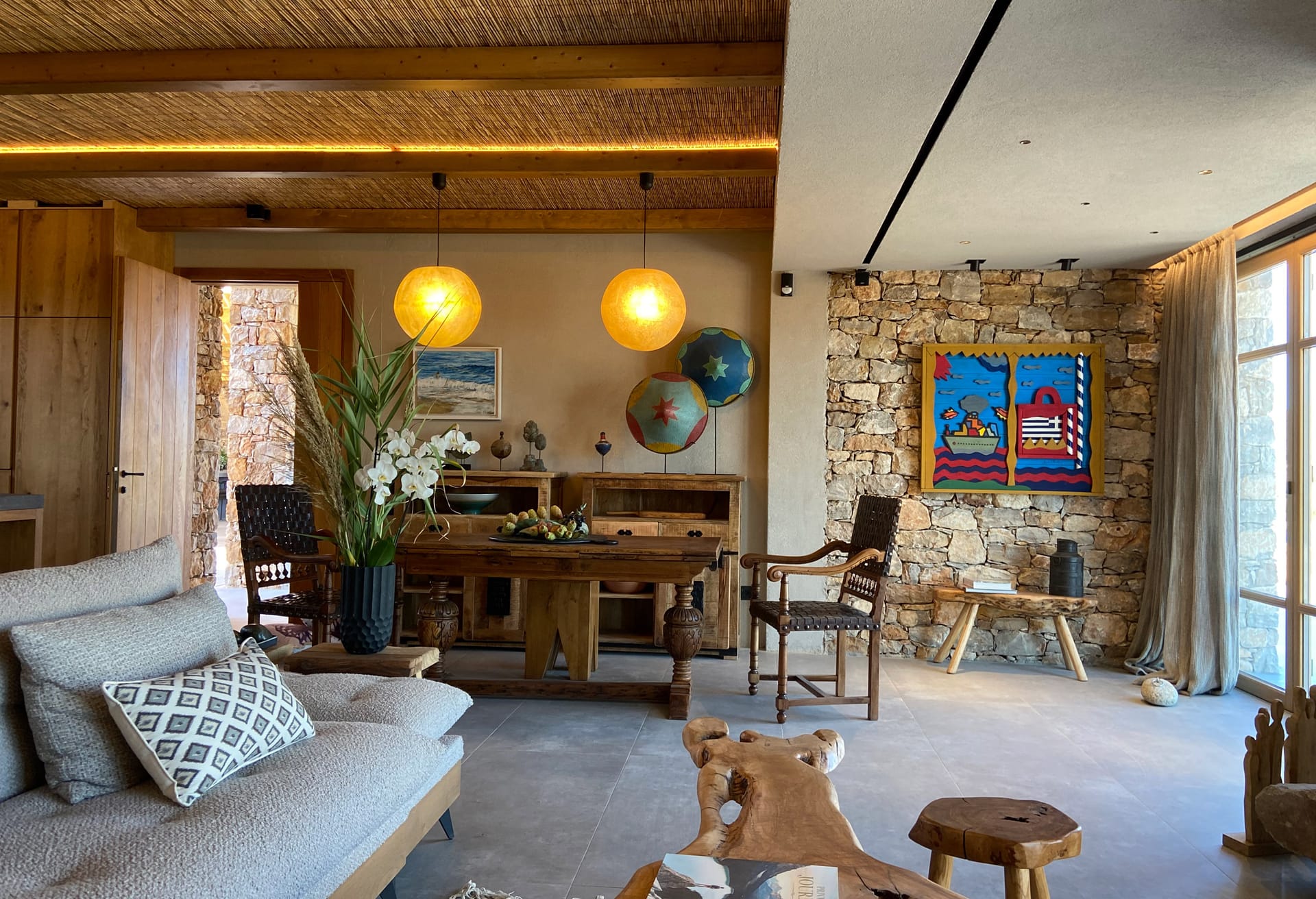 A private pool with a breathtaking view is available, and guests are also close to one of the best sandy beaches on the island (5 minutes away). In addition, there is a well-equipped in-house private gym and a yoga and meditation area on the terrace with a heated jacuzzi. The heating and cooling systems in the farmhouse can be adjusted independently, making it a pleasant retreat no matter the season.