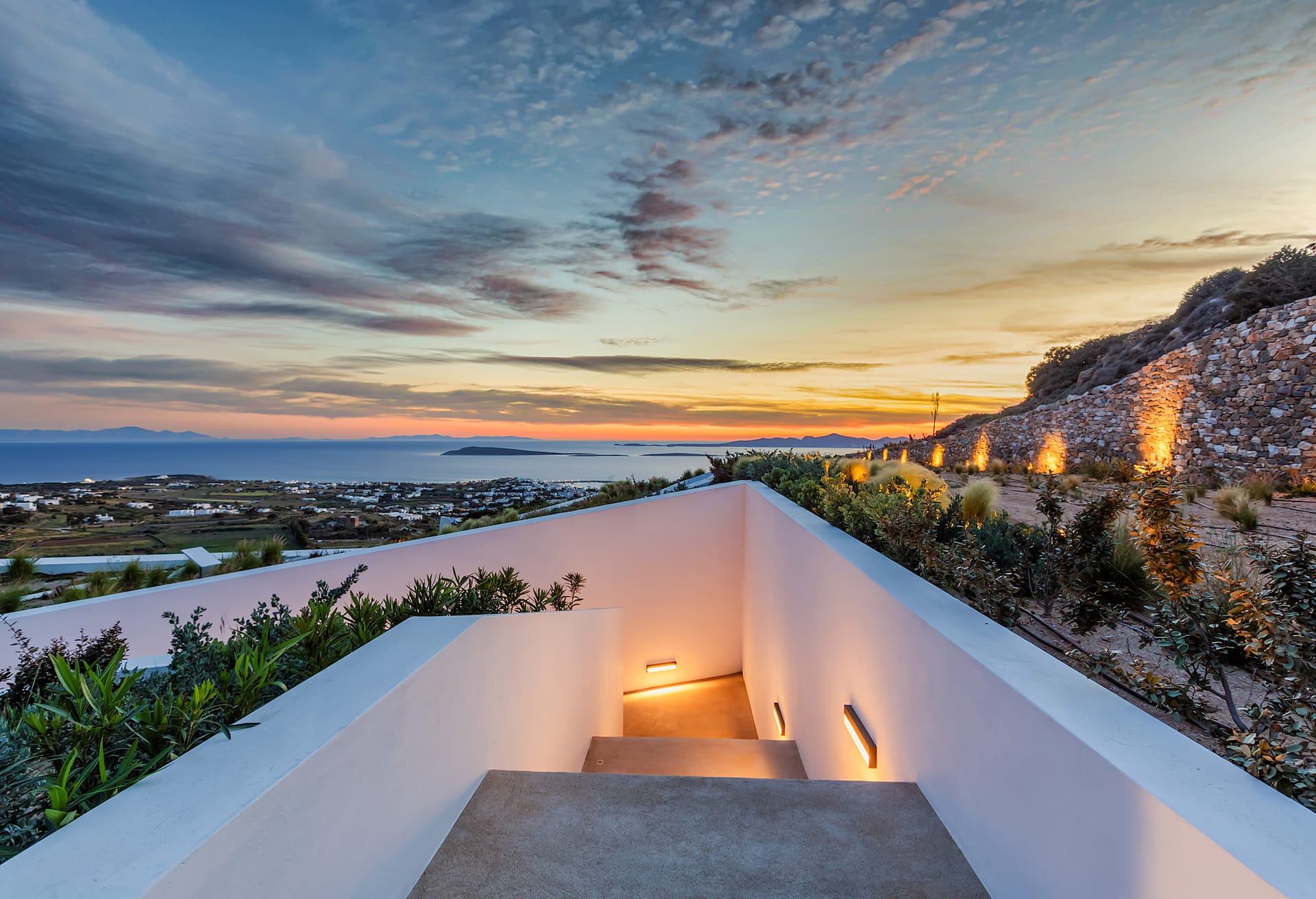 Villa Skylines Estate I. Set on the hills of Agkairia–Kavaleto, just behind the traditional fishing village of Aliki, Villa Skylines Estate One is the creation of a renowned local architectural studio that has brought to life a truly remarkable property in Paros. Part of an exclusive complex of three independent residences, the villa can also be rented together with its sister properties, making it ideal for larger groups seeking privacy without compromise.