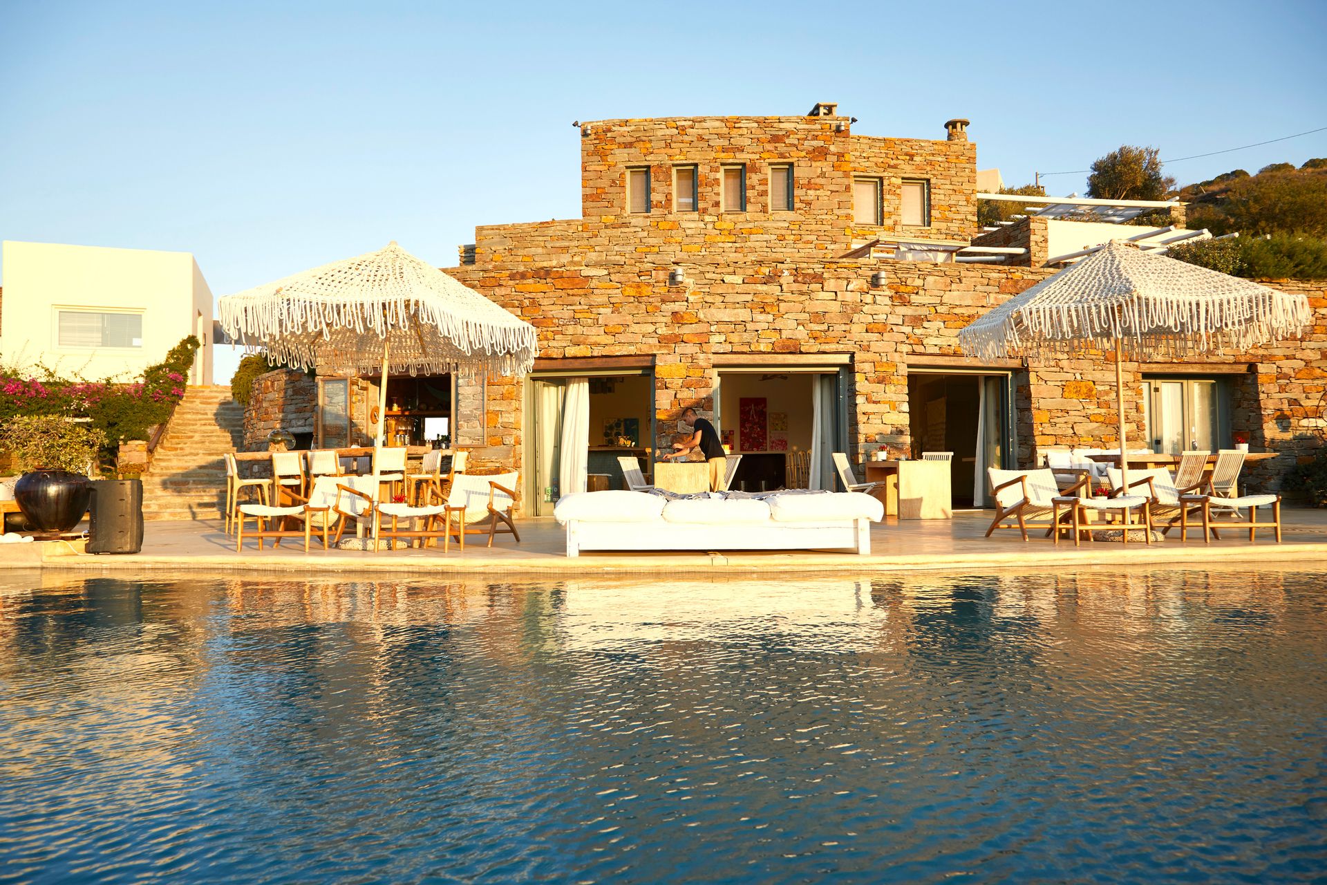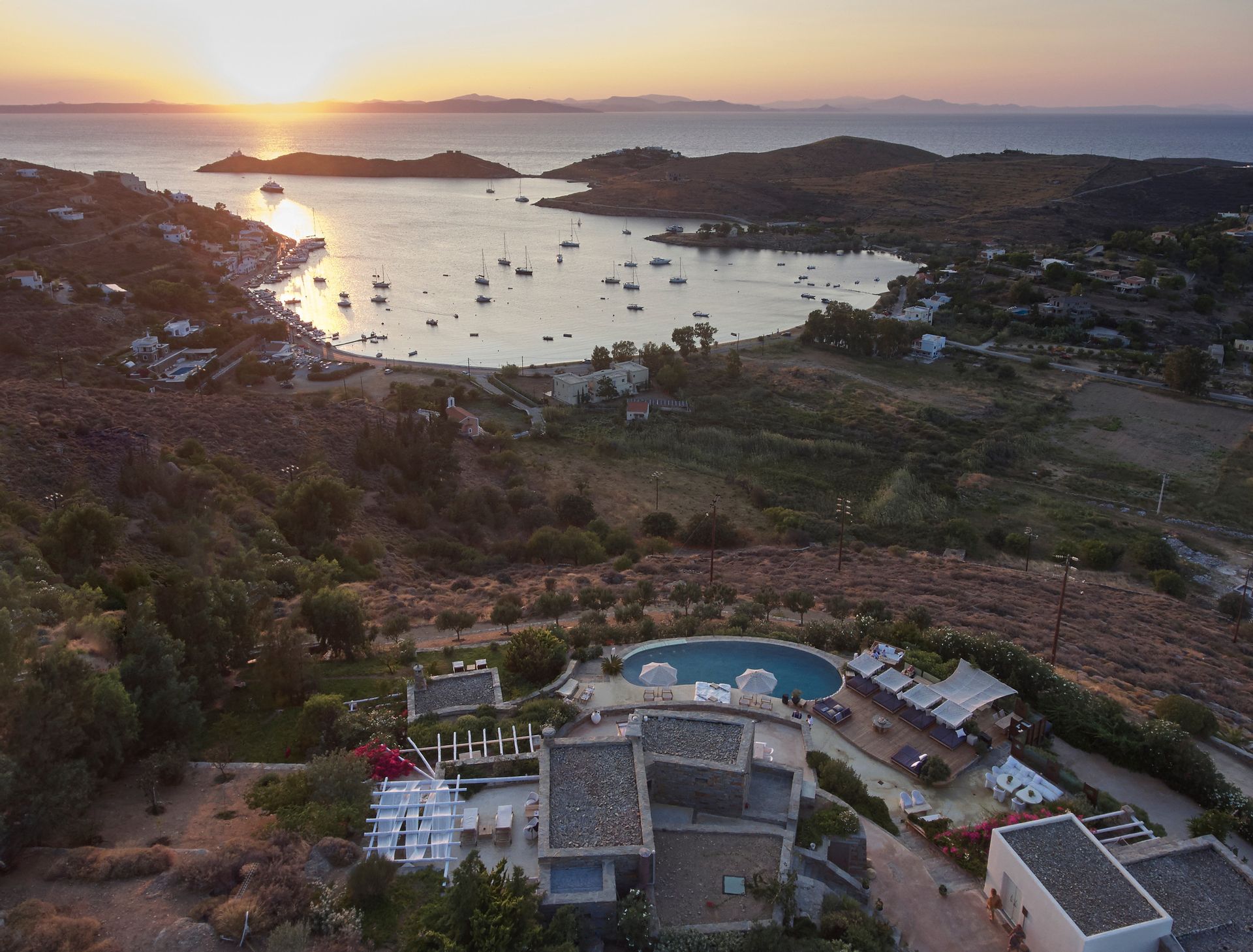 Aigis Private Living, by having roots in the art of Greek island hospitality and in the authenticity of the tradition, offers the ultimate choice for travellers dreaming of a luxury holiday with family or a group of friends, just an hour away from Athens, in Kea island in the Cyclades. The complex consists of 9 distinctively decorated suites, capable of hosting up to 18 guests. The suites are independent and distributed in 5 different levels, whereas the second level includes the restaurant, the sunset bar and the pool. Enjoy an exclusive stay in a heaven of artistic refinement, unwind on your terrace, relax with a cocktail from the barand relish the most exceptional flavours at the fine dining Aigis Sunset Bar Resto restaurant while enjoying utmost privacy and relaxation. Experience a stay beyond imaginable at this luxury accommodation with all facilities and services of Aigis that only the Aspioti’s famly can offer you in Kea island. The smile, the meraki (=passion), the kefi (=fun) kai the love for hospitality are the ones who drives you in another dimension and make every experience unforgettable.