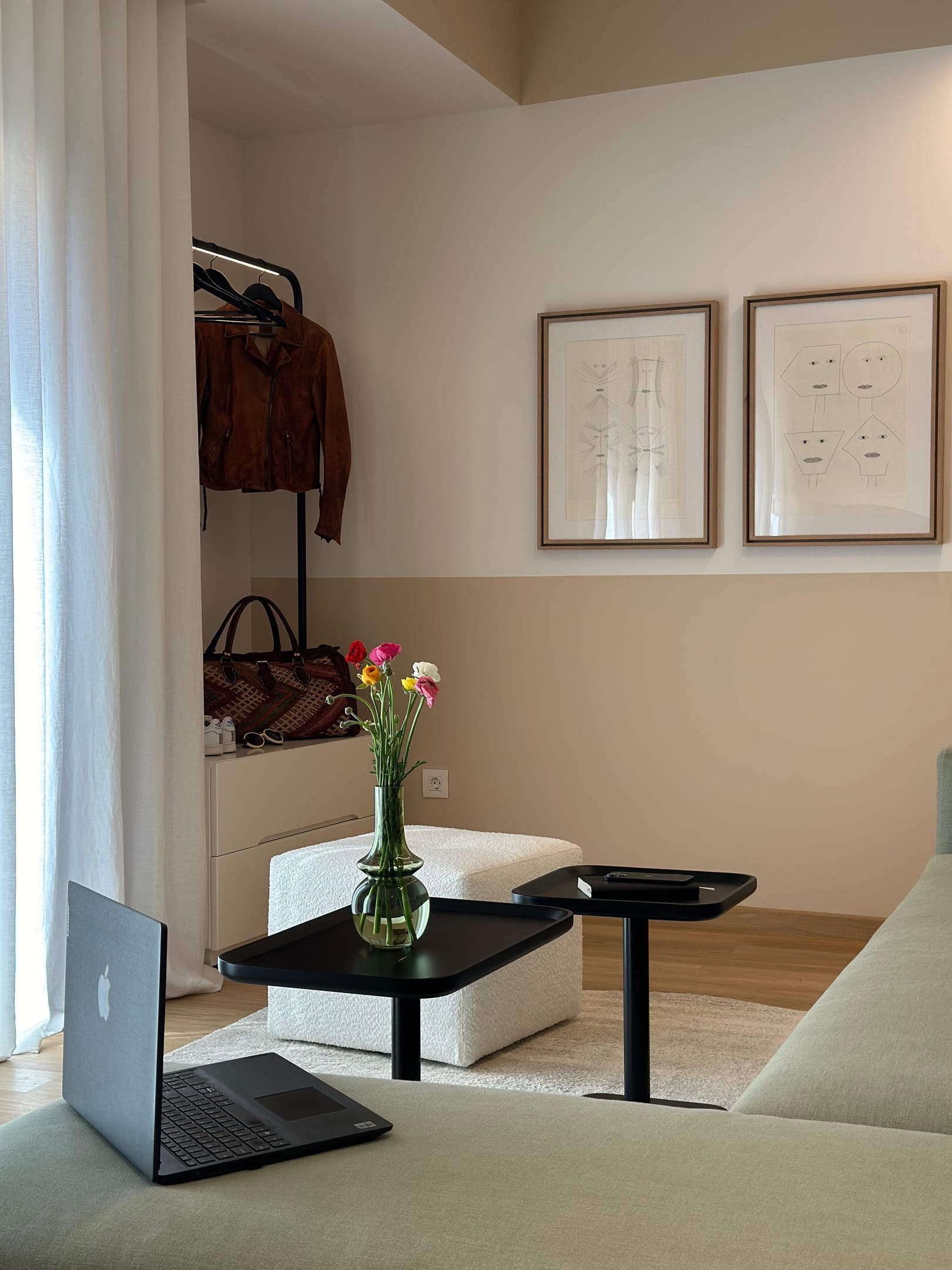 The Avra is a bright and welcoming one‑bedroom apartment in a beautifully renovated building in the heart of Thissio. It offers a serene bedroom, a cozy living room with Smart TV, a compact kitchenette, and a stylish bathroom. The small private balcony provides a pleasant spot to enjoy fresh air. Thoughtful design and warm tones create a homely yet sophisticated atmosphere — ideal for couples, friends, or small families.