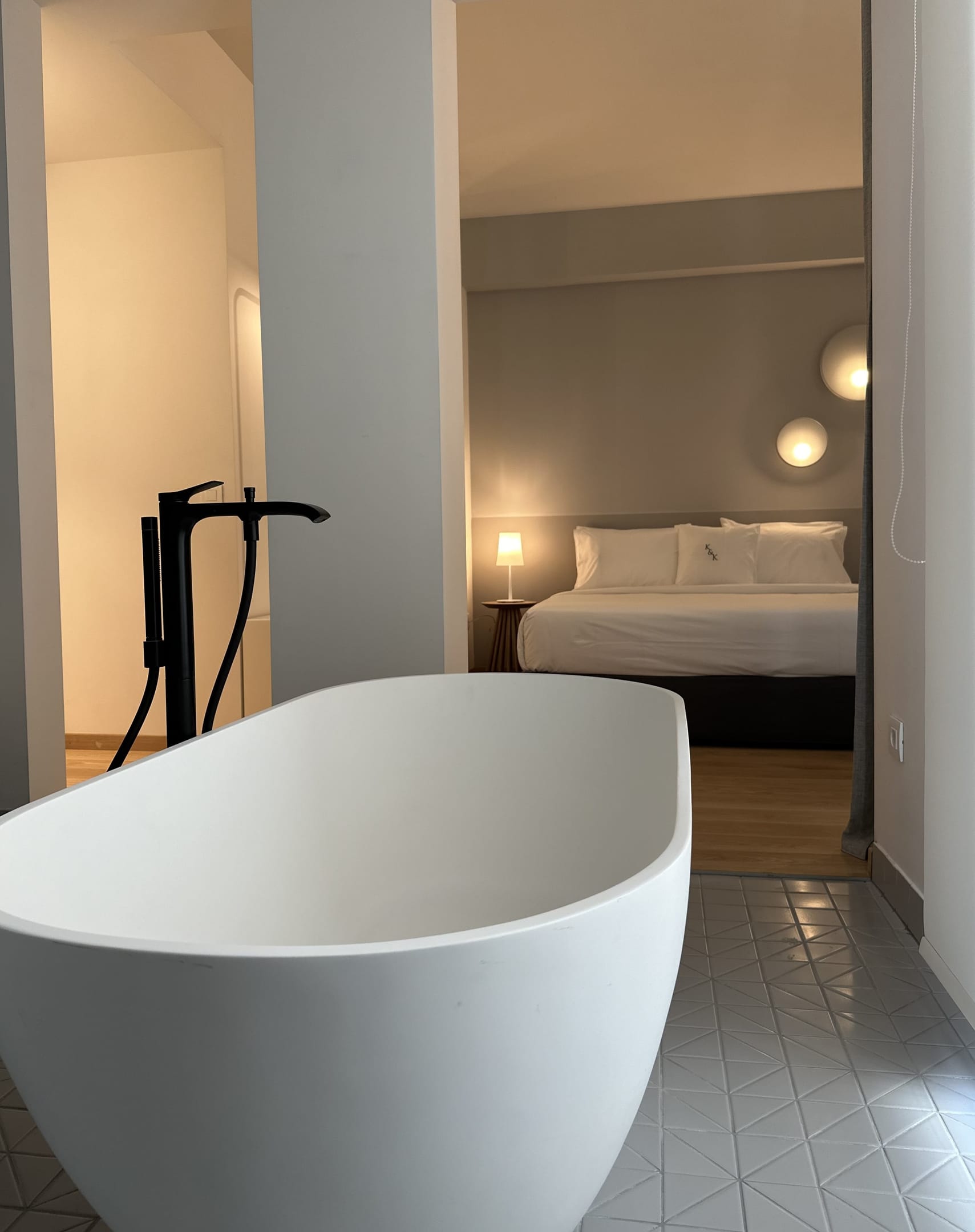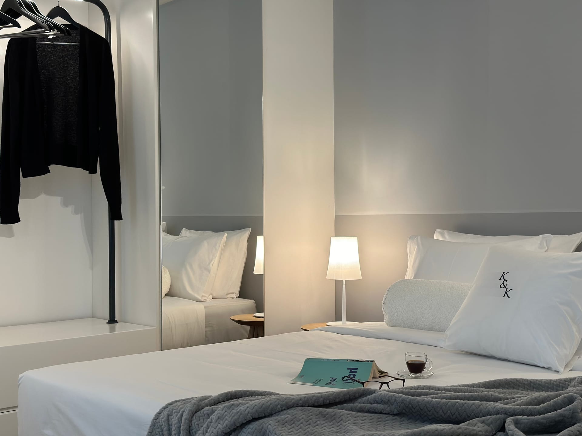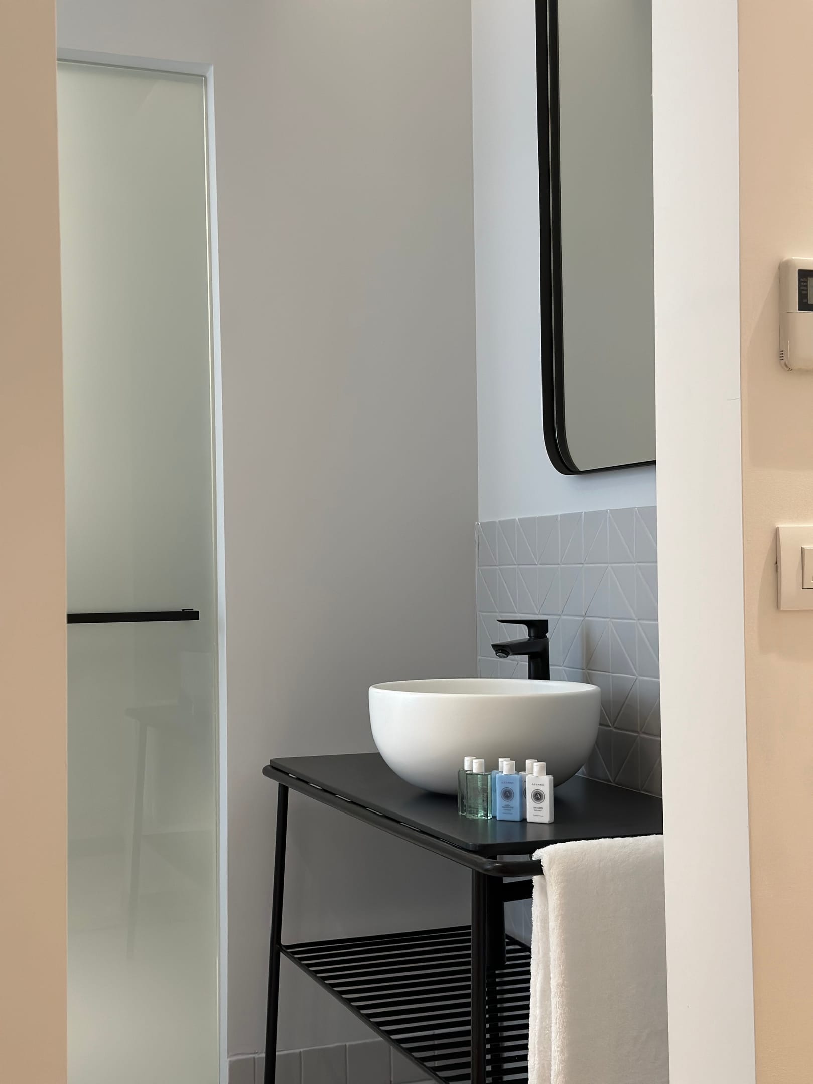 The Daphne is a charming and comfortable one‑bedroom suite in the beautifully renovated Aionion Residences in the heart of Thissio. Its unique feature is the inviting bathroom, which offers both a sleek walk‑in shower and a bathtub for a touch of luxury. The suite also includes a serene bedroom, a cosy sitting area with a Smart TV, and a compact kitchenette. Thoughtfully designed interiors make it perfect for couples or solo travellers looking for style and convenience.