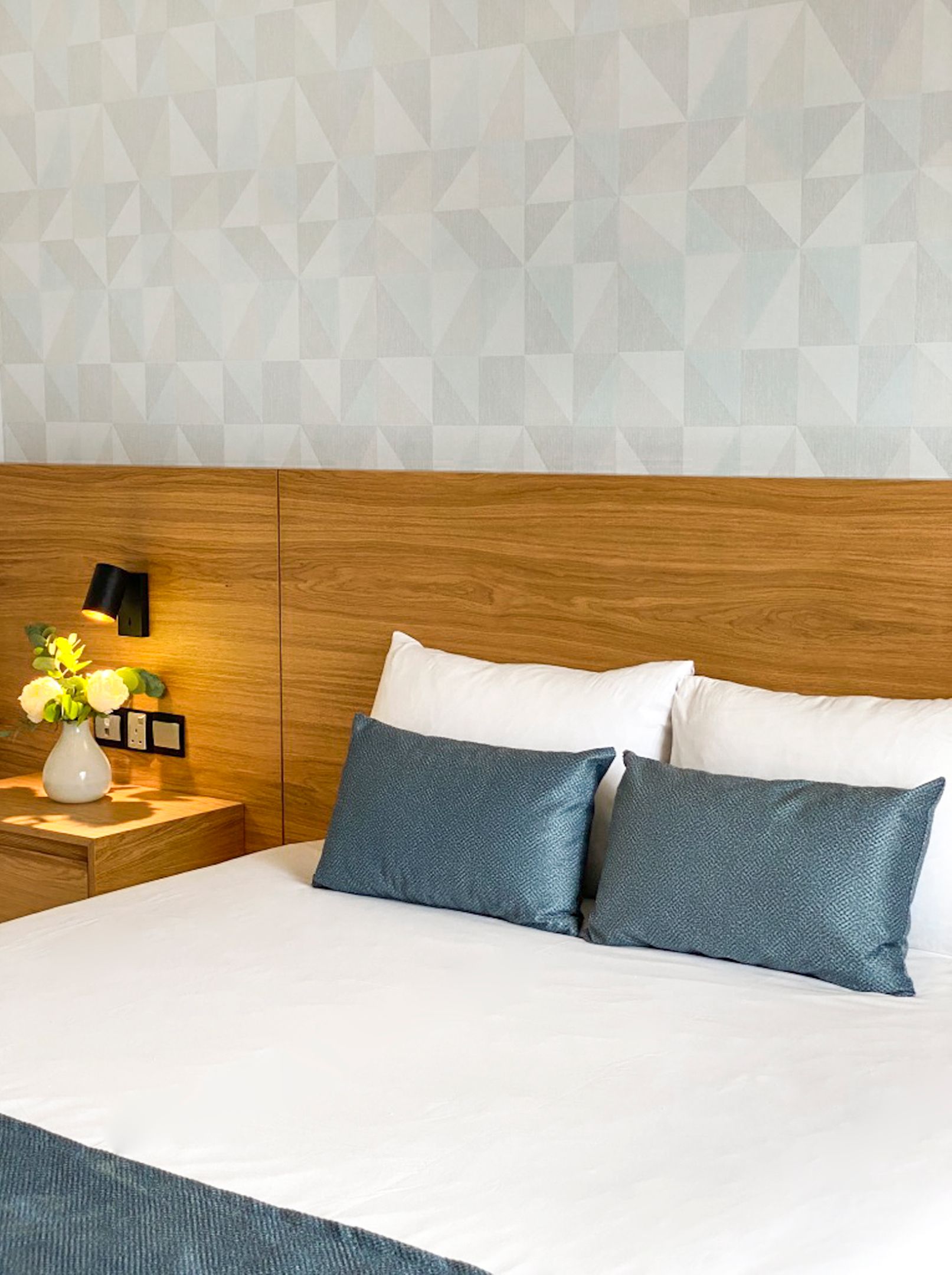 Providing comfort and style in equal measure, the newly renovated (Feb 2020),Executive Rooms capture the sophistication of a modern Limassolian residence. At an average size of 22 square meters, the urban refuges are filled with thoughtfully considered furnishings and feature a luxurious marble bathroom with a deep soaking tub or a walk in overhead shower. These rooms can accommodate up to two guests. The executive rooms among others feature wooden flooring, private balcony with seating facing the city or the pool and gardens of the hotel, eco-friendly toiletries, double glazed windows, safe box, mini fridge, hair dryer, satellite flat screen Tv, direct dial telephone, wake – up alarm system, tea and coffee making facilities replenished daily , self-controlling air-condition system and complimentary wireless internet access.