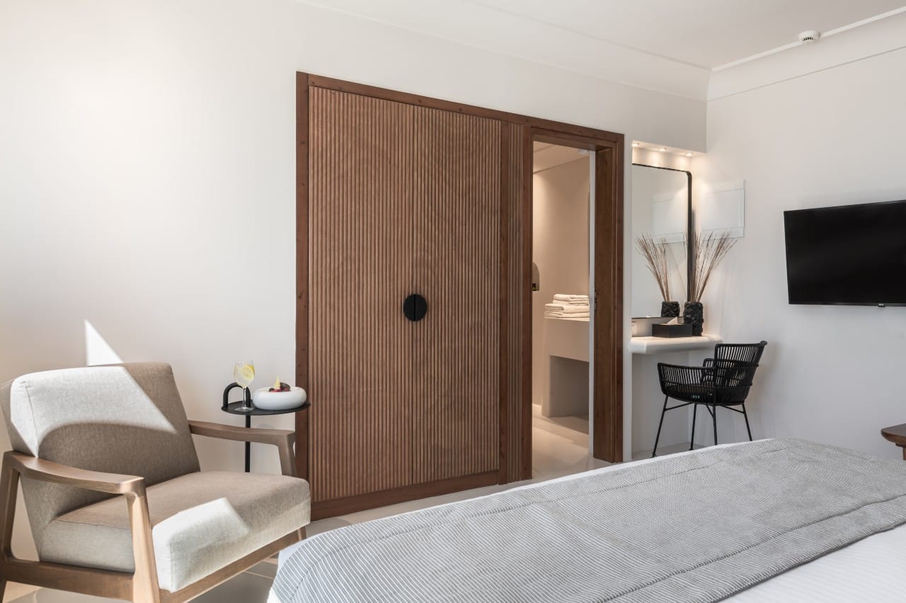 A truly enchanting couple’s getaway, the Akra Junior Suite combines Santorini’s charm with modern amenities and limitless comfort. In its elegant indoors you will indulge in moments of utter privacy and relaxation, whereas outdoors, in its fully furnished terrace, the mesmerizing beauty of the caldera, the sea and the sunset are an irresistible spot you’ll find hard to leave behind!