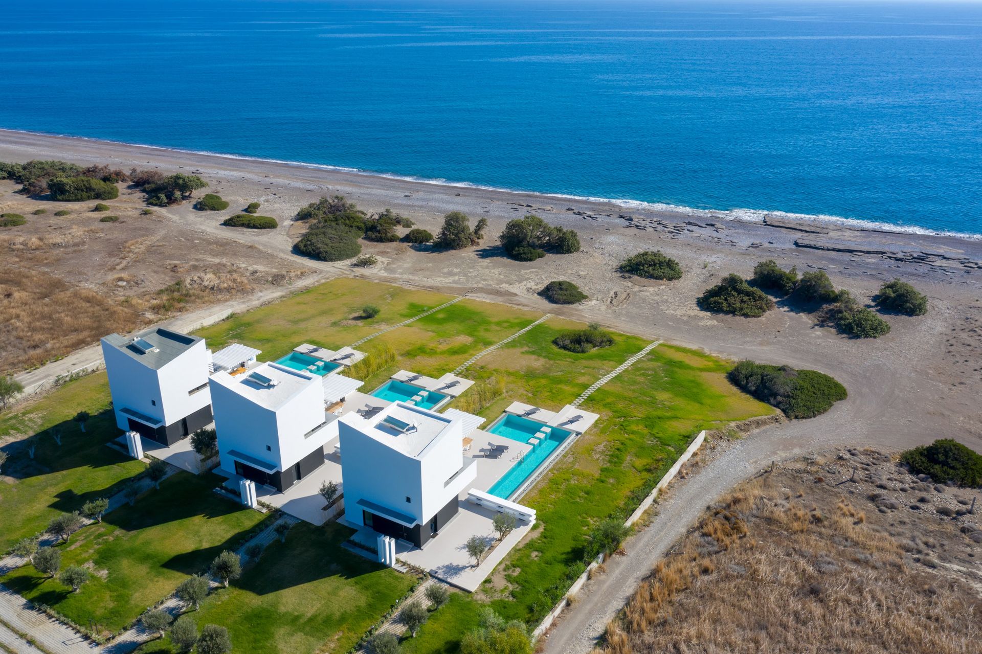 Albatross Villas is an architectural award-winning complex of three villas located in the area of Gennadi, offering private swimming pools and luxurious living just a few steps from the sea, in the remote and serene setting of southern Rhodes. Each of the properties accommodates a different number of guests to suit a variety of needs.