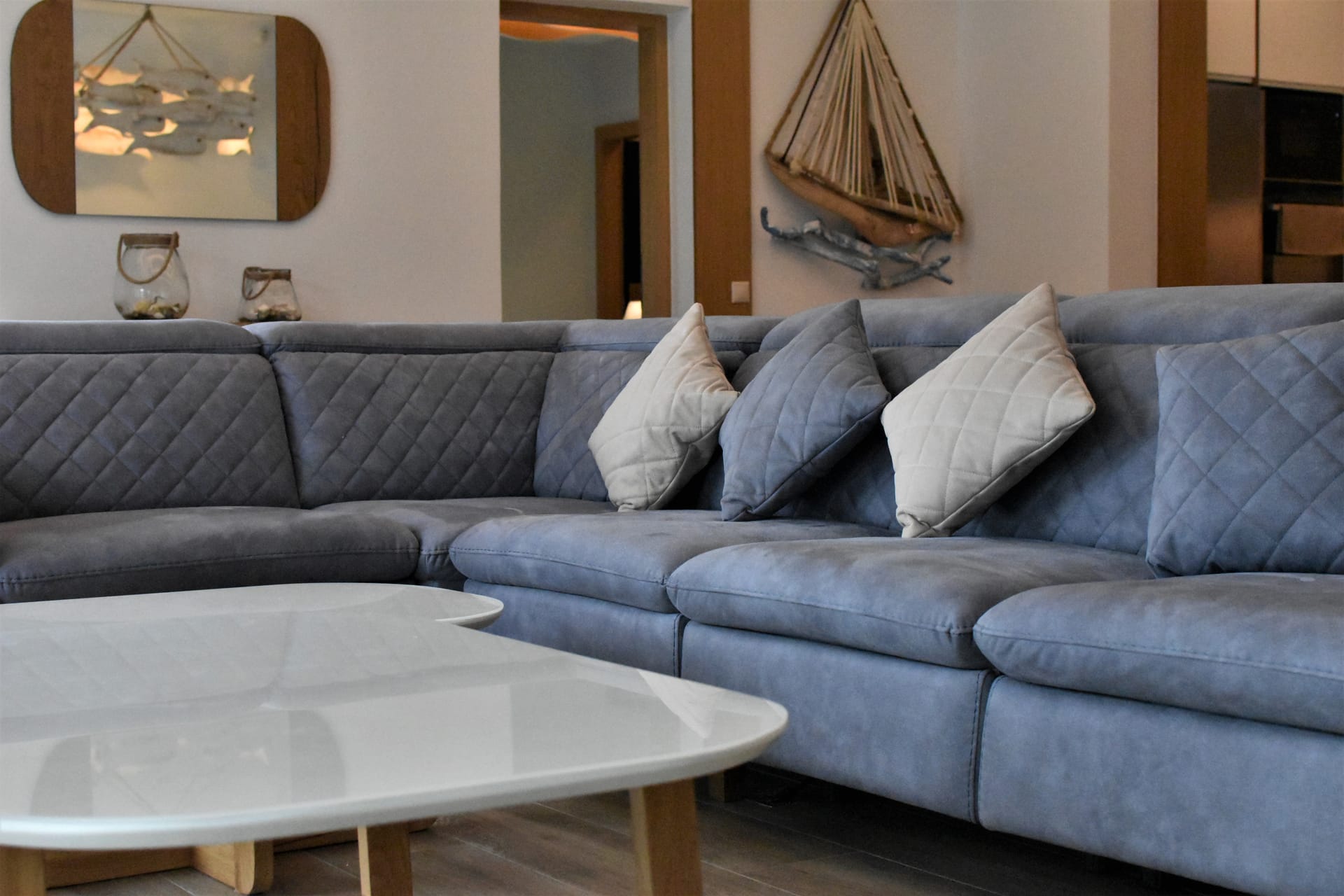 Great Albatross Villa features a magnificent decorating style with elegant Modern Greek details. It offers three fully air-conditioned bedrooms, each with a comfortable double bed, a screen TV, and private balconies boasting mesmerizing views of the sea. All bedrooms are equipped with ensuite bathrooms that feature stylish and contemporary showers.