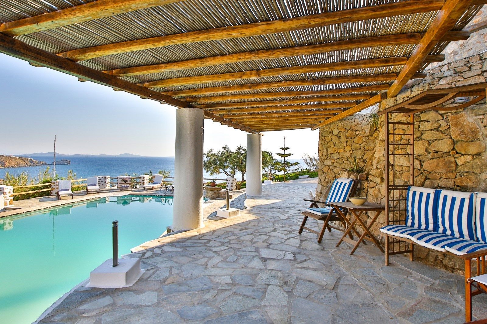 Daily breakfast is included and served within the villa, offering a selection of homemade Greek delicacies. Luxury linens, towels, and pool towels are provided. Toiletries and slippers are also included, and housekeeping is offered daily.