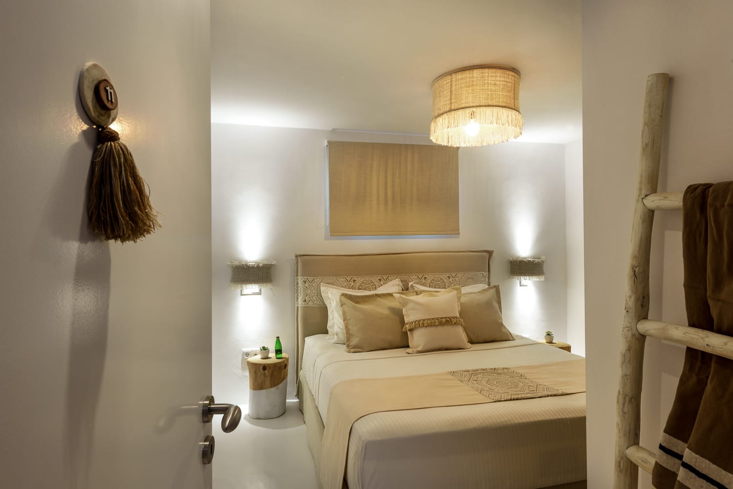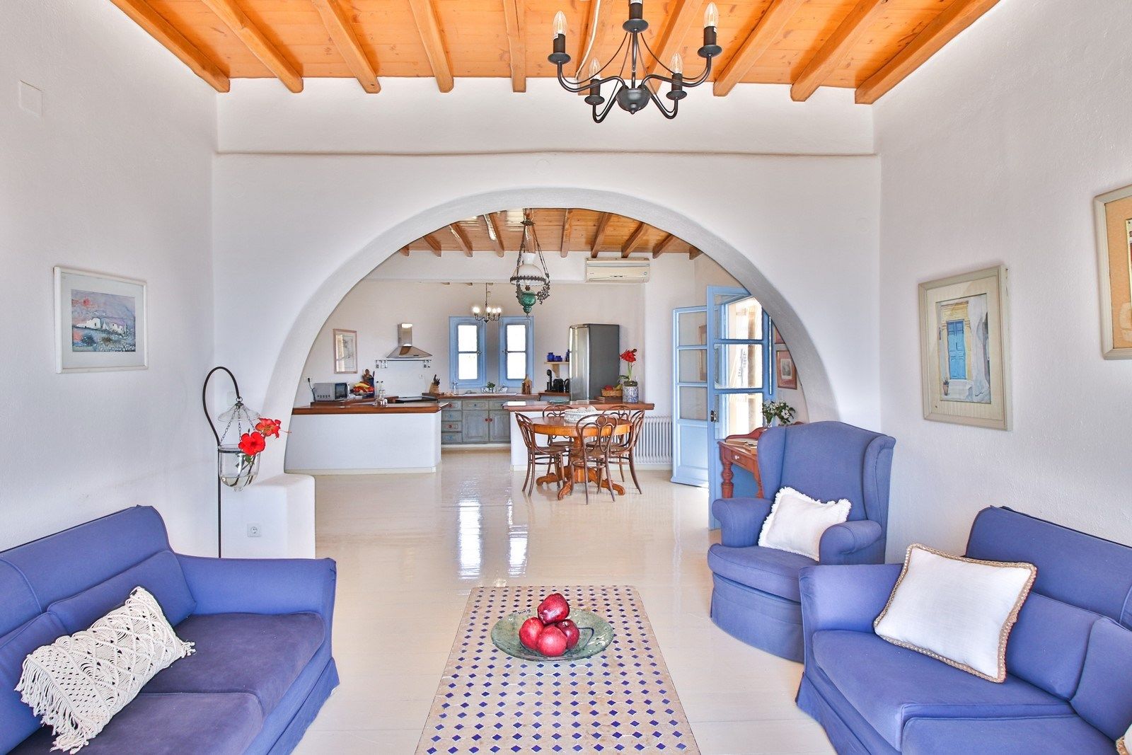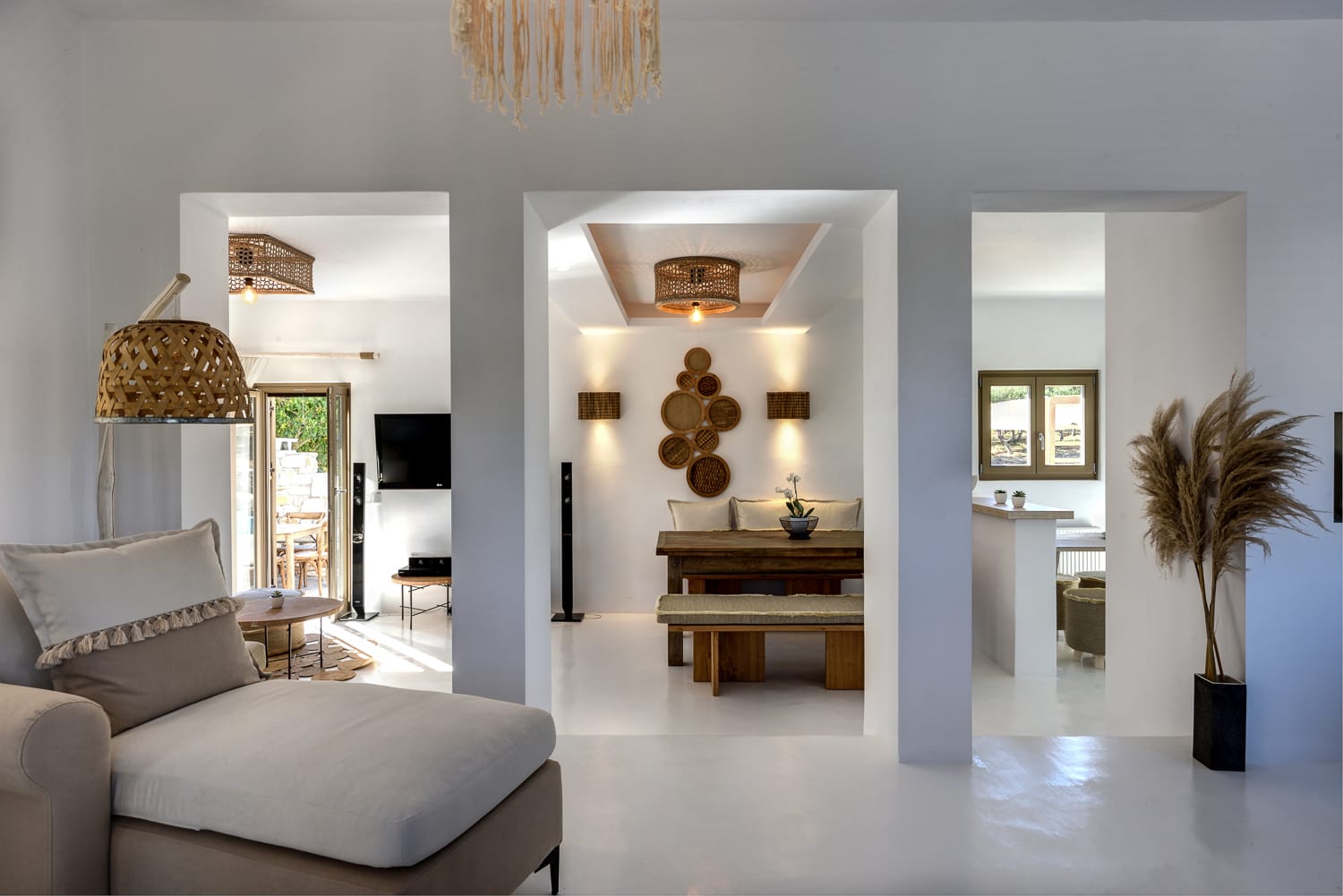 Each space is meticulously designed to blend traditional Santorinian architecture with modern comforts. Large windows and open-plan living areas create an airy, sunlit atmosphere, while the elegant furnishings add to the refined aesthetic.