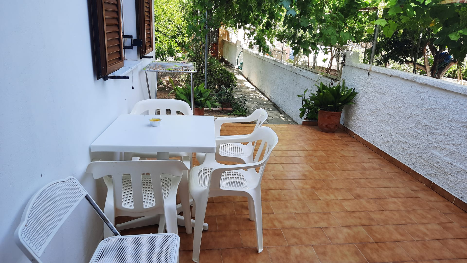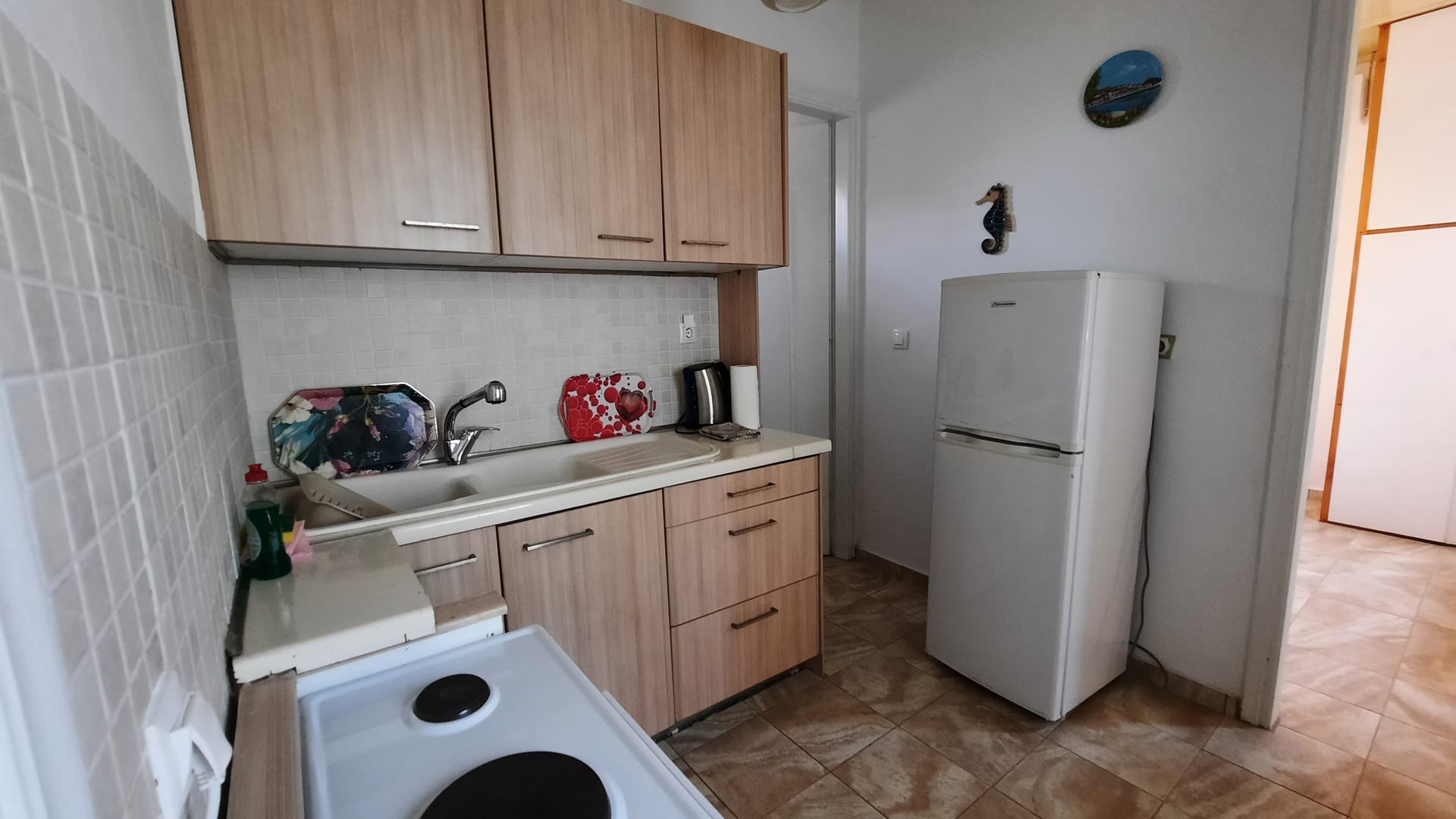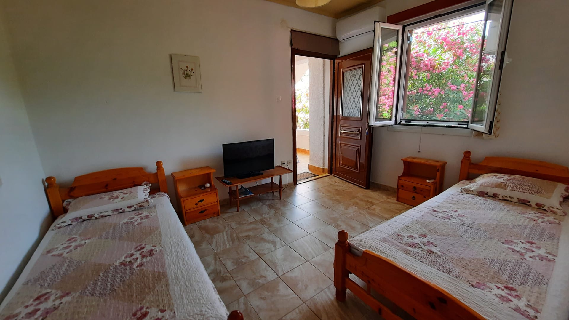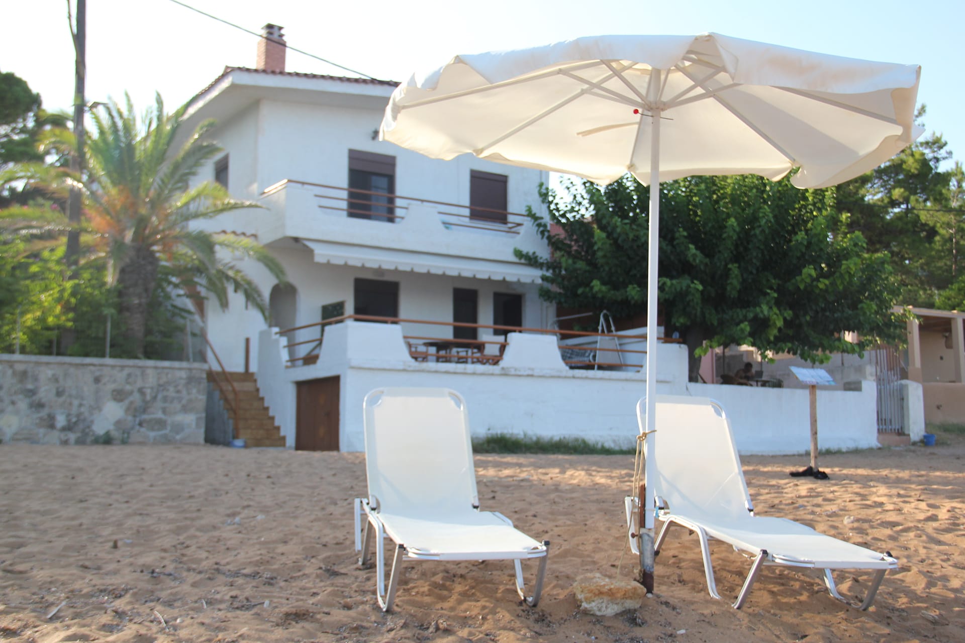 Amalia is a simple, traditionally-furnished beachside apartment with direct access to a safe, sandy beach and a shady veranda overlooking the garden amongst the pine trees on the slope of Lepeda hill.