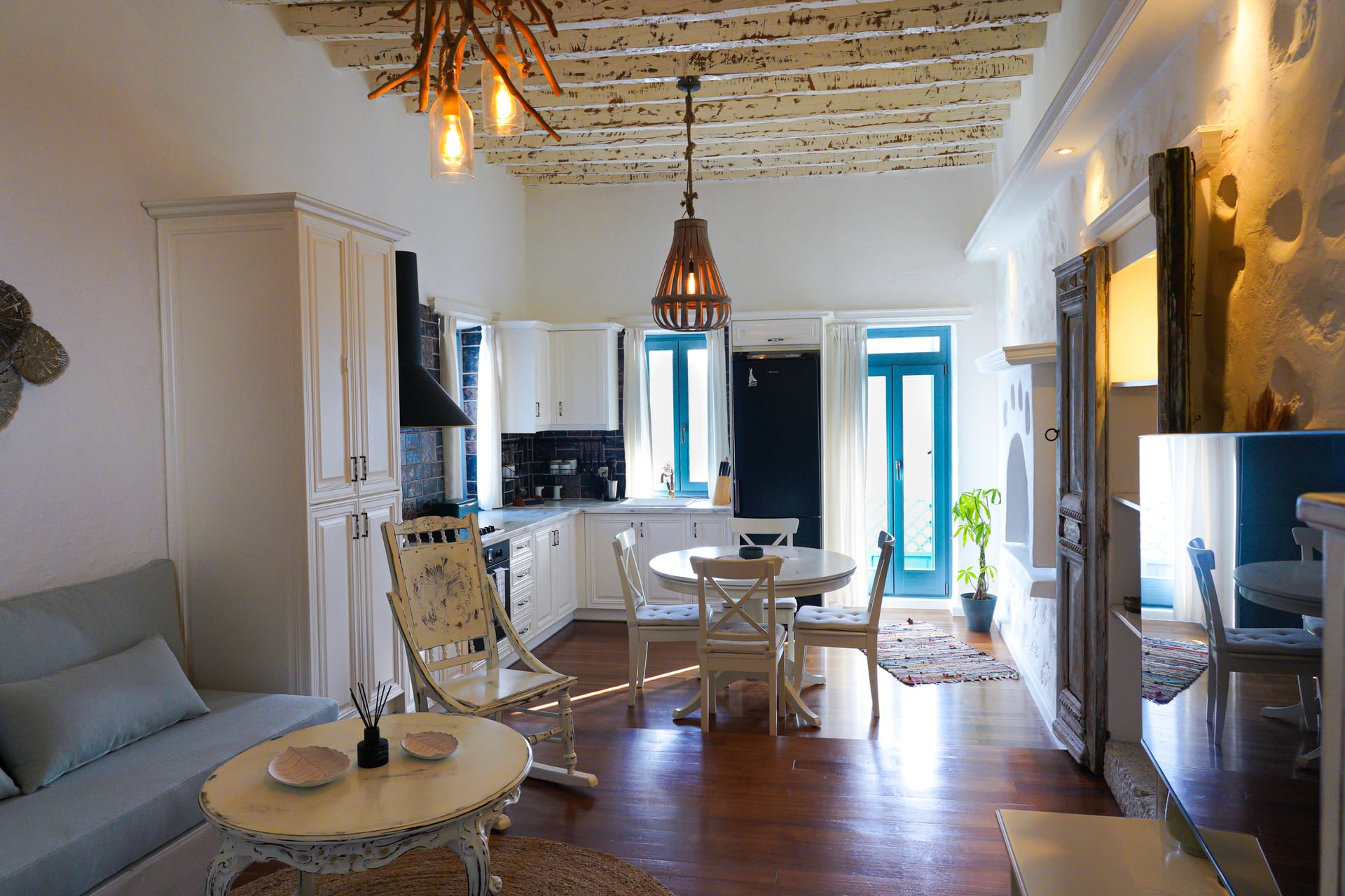Amalia is one of three apartments in this building and is situated on the ground floor, along with its sister property, Jerasimo. These properties can also be rented together, for a bigger family or up to 8 friends. Accommodation comprises one bedroom with 1 king-sized bed (convertible to 2 singles), a sitting room with 2 single beds, a comfortable, fully-equipped kitchen and a bathroom with a shower. There is a shared laundry area to the rear of the property.