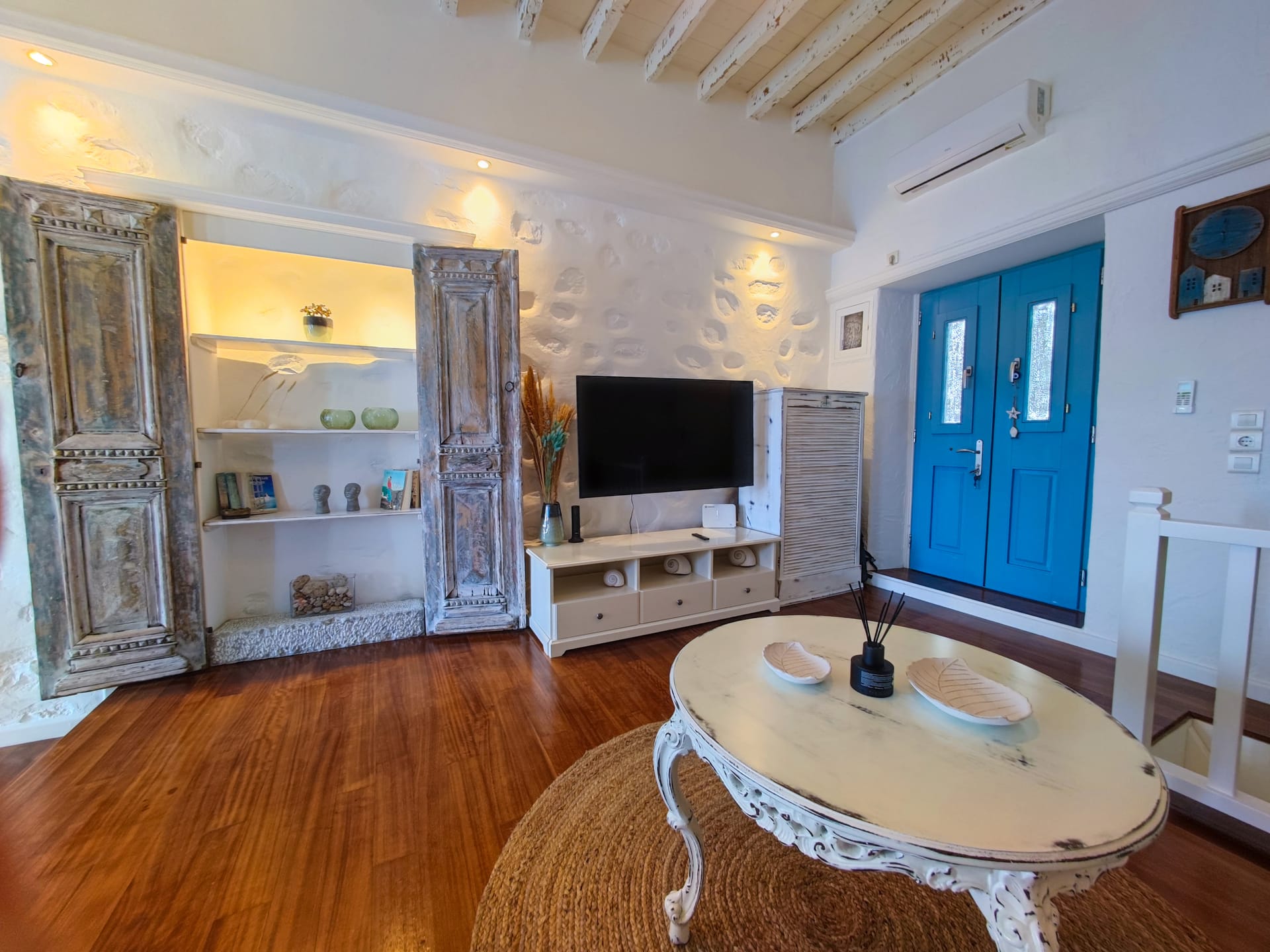You approach this special home on foot, leaving the quiet road and walking the last 70m along the sandy beach. It is one of a handful of small properties in this unique location where the residents park at the edge of the beach and stroll along the sand to reach their front door.