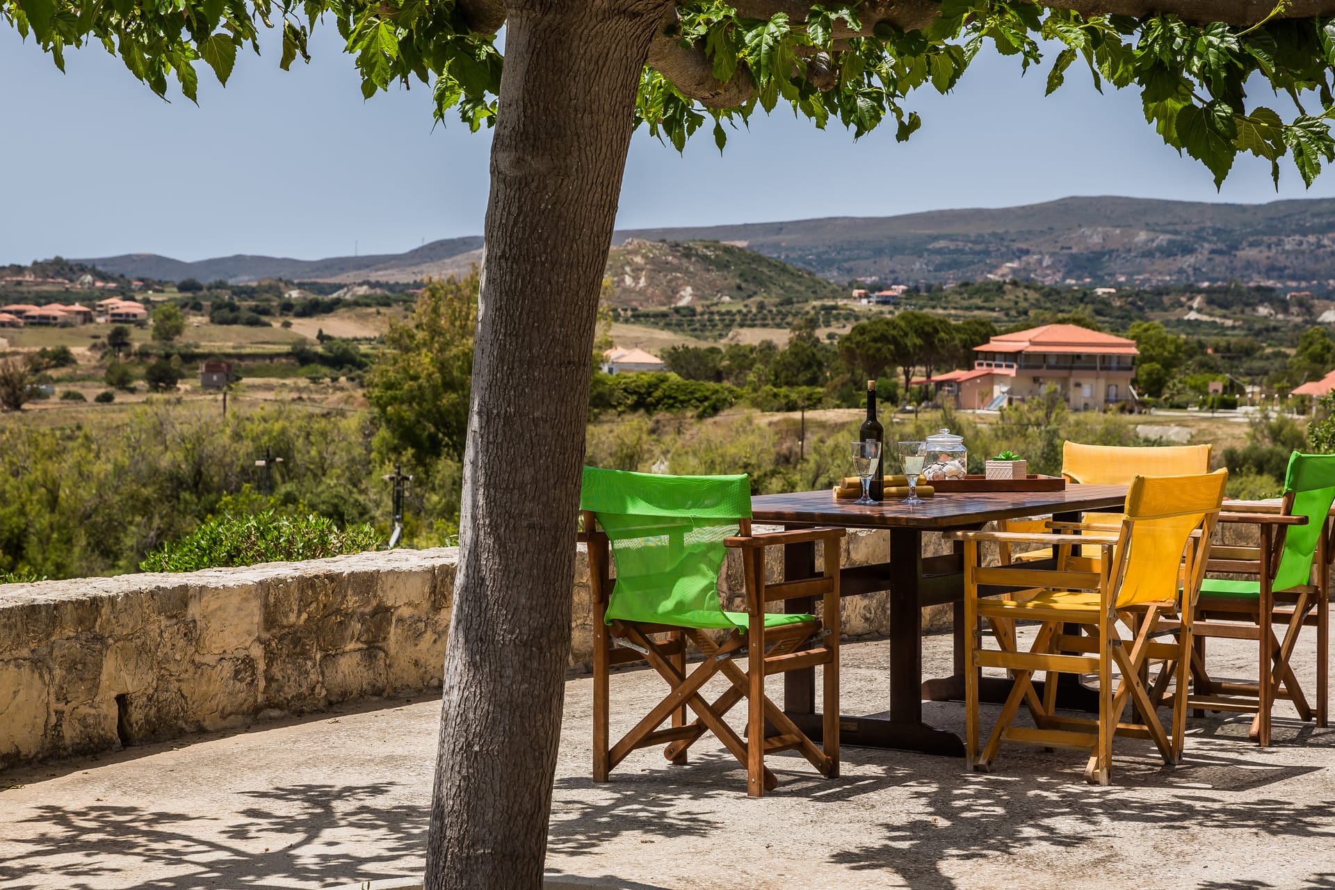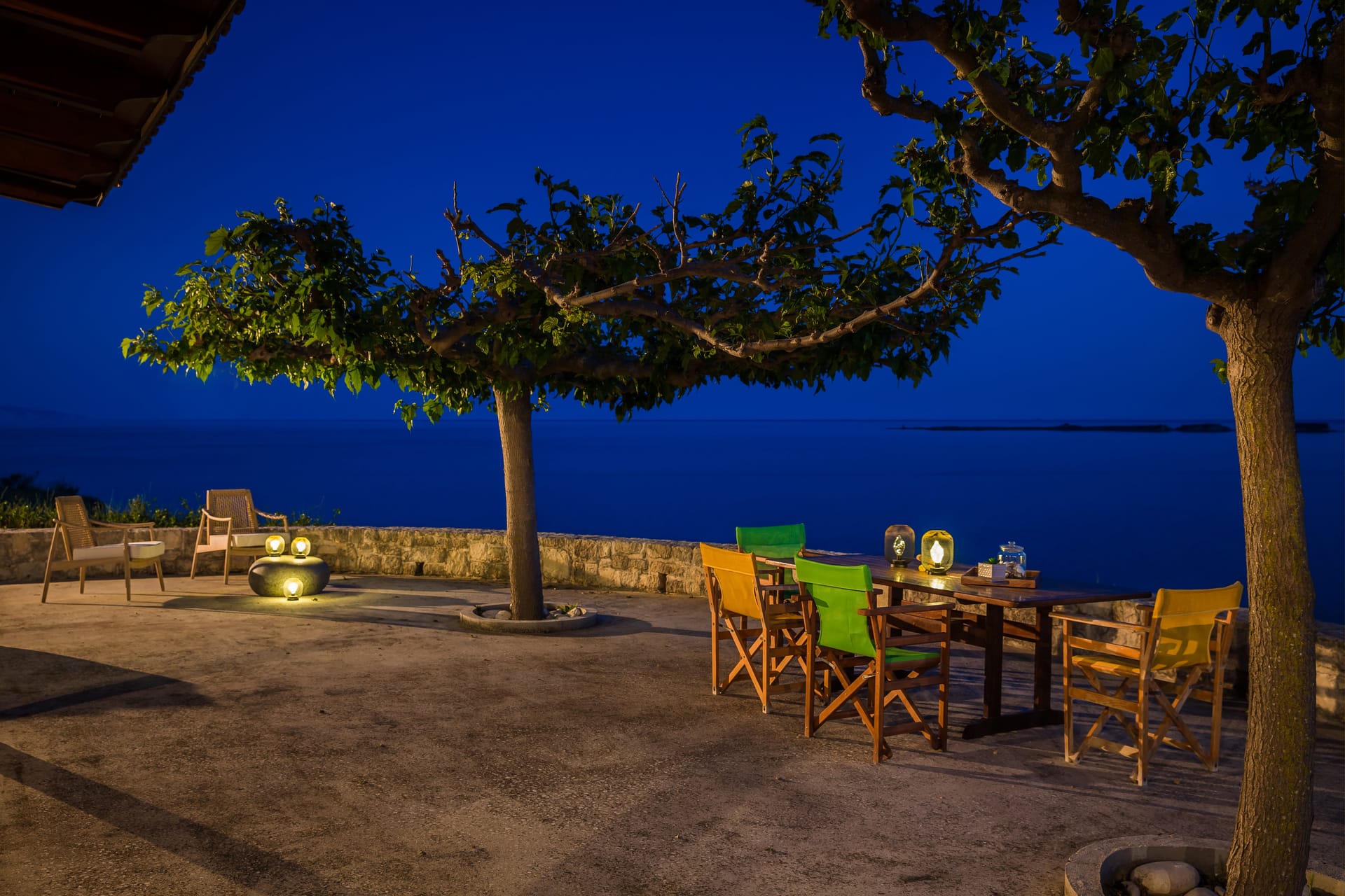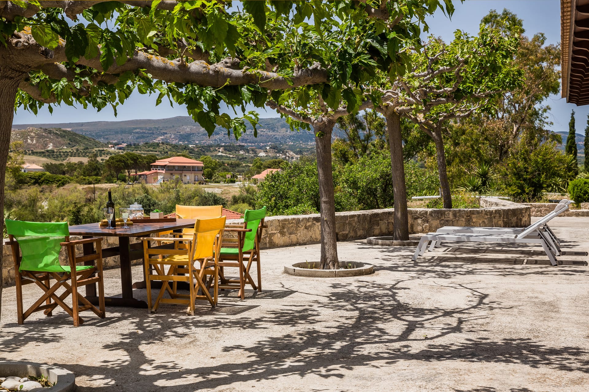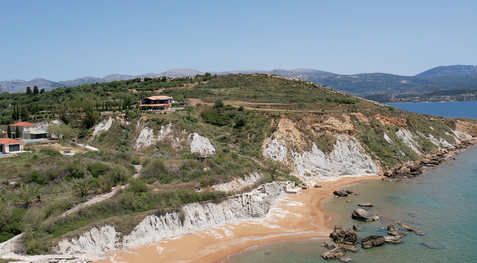 A wrap-around terrace encircles this outstanding villa situated on a prominent headland at the south of the peninsula. The terraces incorporate trees for natural shade, comfortably-furnished seating areas and vast sun-traps for tranquil tanning. There are stunning panoramic views in all directions, over the valley below, across the sea to Vardiani island, and to Zakynthos beyond. A secluded sandy beach can be reached by a short stroll meandering through a gentle cliffside path.