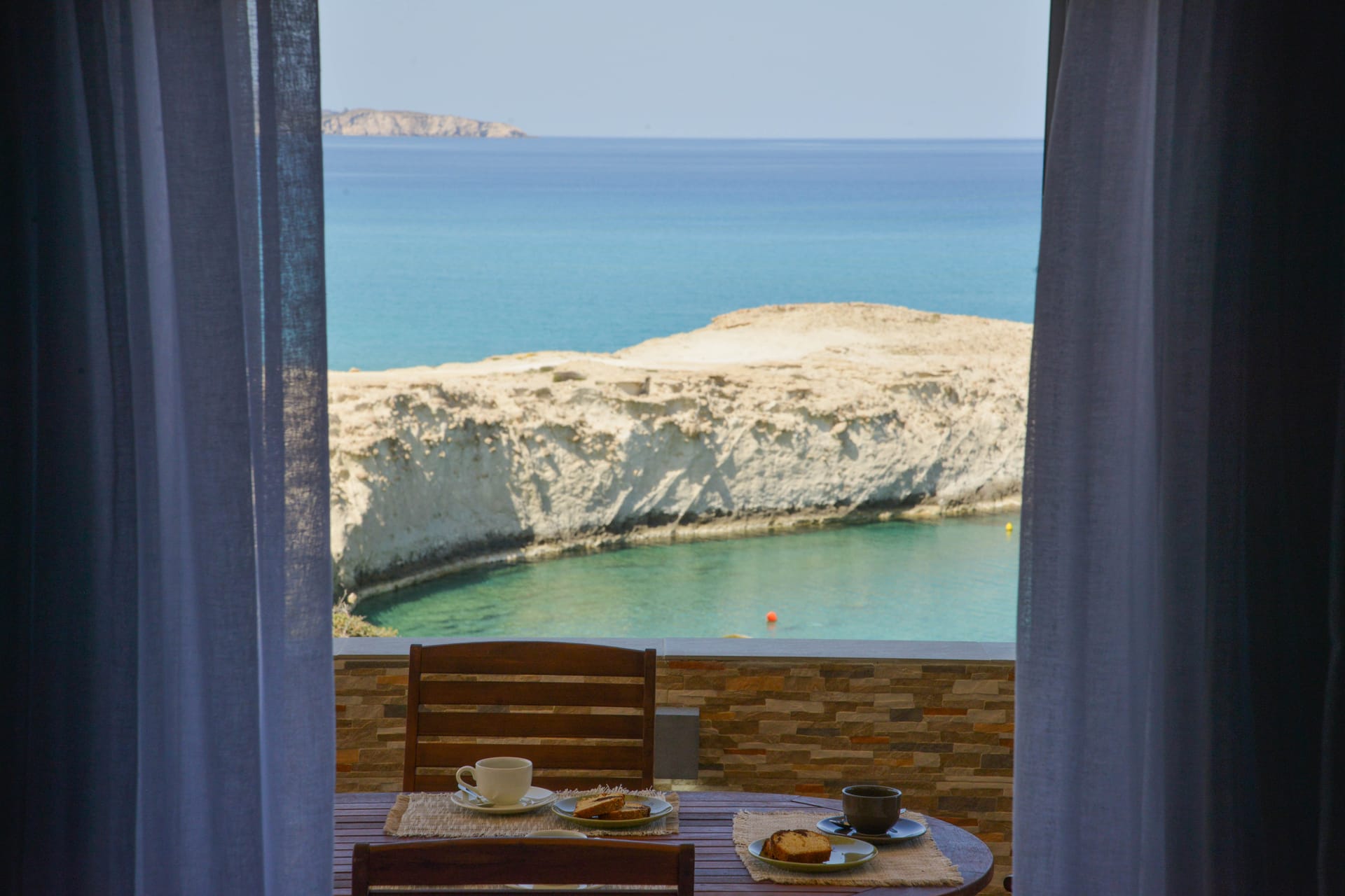 Accessed by external wide, stone steps surrounded by pink bougainvillea, Eleanna is blessed with a large balcony overlooking the tranquil, sandy beach and the Gulf beyond. With views towards Argostoli and the mountains of the island, the balcony is furnished with comfortable sofas and a table for out-door eating. The beach is merely steps away, and the house is well-stocked with beach equipment for use by the guests, including SUPs and a kayak for exploring the coast.
