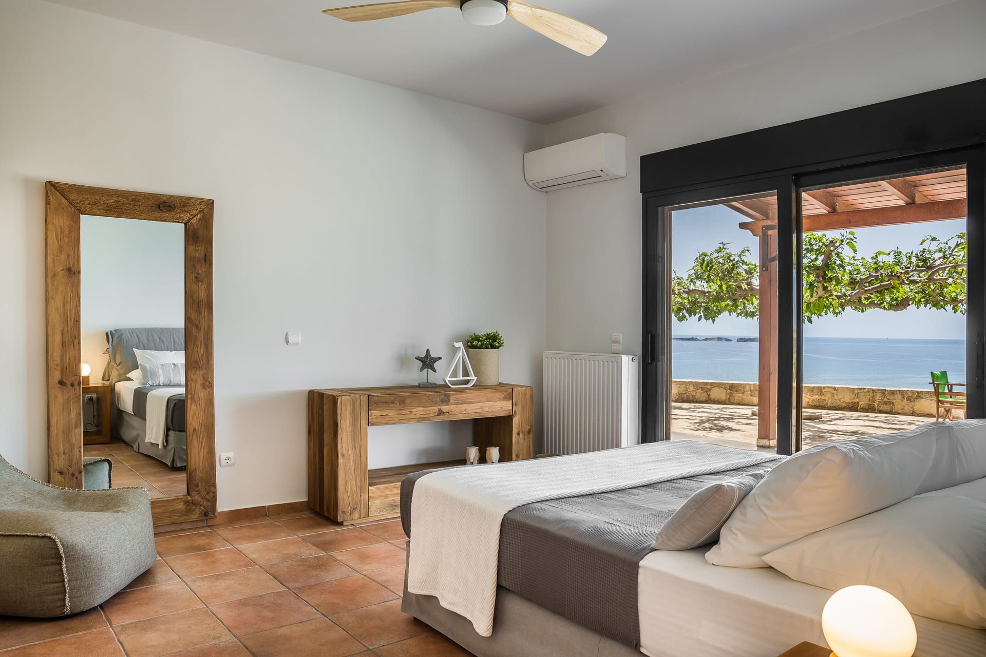 The upper-floor house, Sapphire, offers one large king-sized bedroom (with a single bed available in the sitting area), while ‘Aquamarine’ has two king-sized bedrooms, each with an en-suite bathroom and direct access to the terrace. Both floors have generous light-filled living spaces with huge doors opening to the outside spaces.