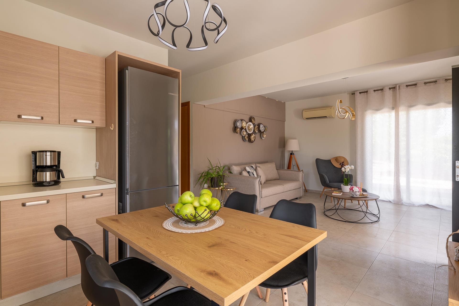 If you don’t want to cook at home, the popular Apolafsi taverna is merely steps away, with a further traditional taverna and grill on the beach in Lepeda – about 1 km. And in the other direction, again about 1km, you have Lixouri town with its many restaurants, cafes, ice-cream bars and all the other amenities you would expect.