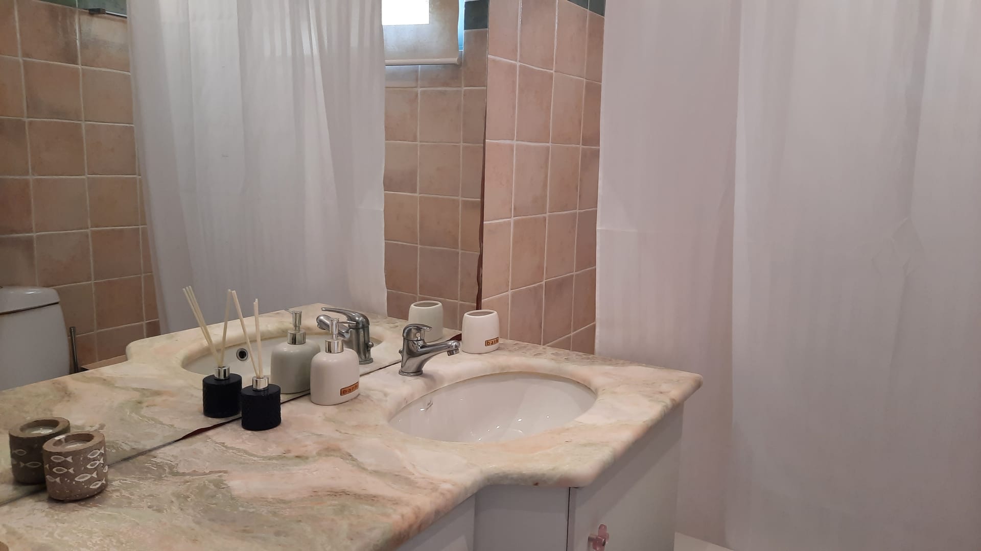 There is a wide staircase, and also an internal elevator, that takes you to the first floor, where you find two large bedrooms, both with en-suites; one is a bathroom, the other is a shower room. Both these light-filled rooms have incredible views to the sea, and doors that open directly on to a large roof-top terrace. Two further bedrooms and another bathroom are located in the semi-basement, which has direct access to the garden and pool area. It is here you’ll also find a small sitting area with a convertible sofa bed, and the laundry room.