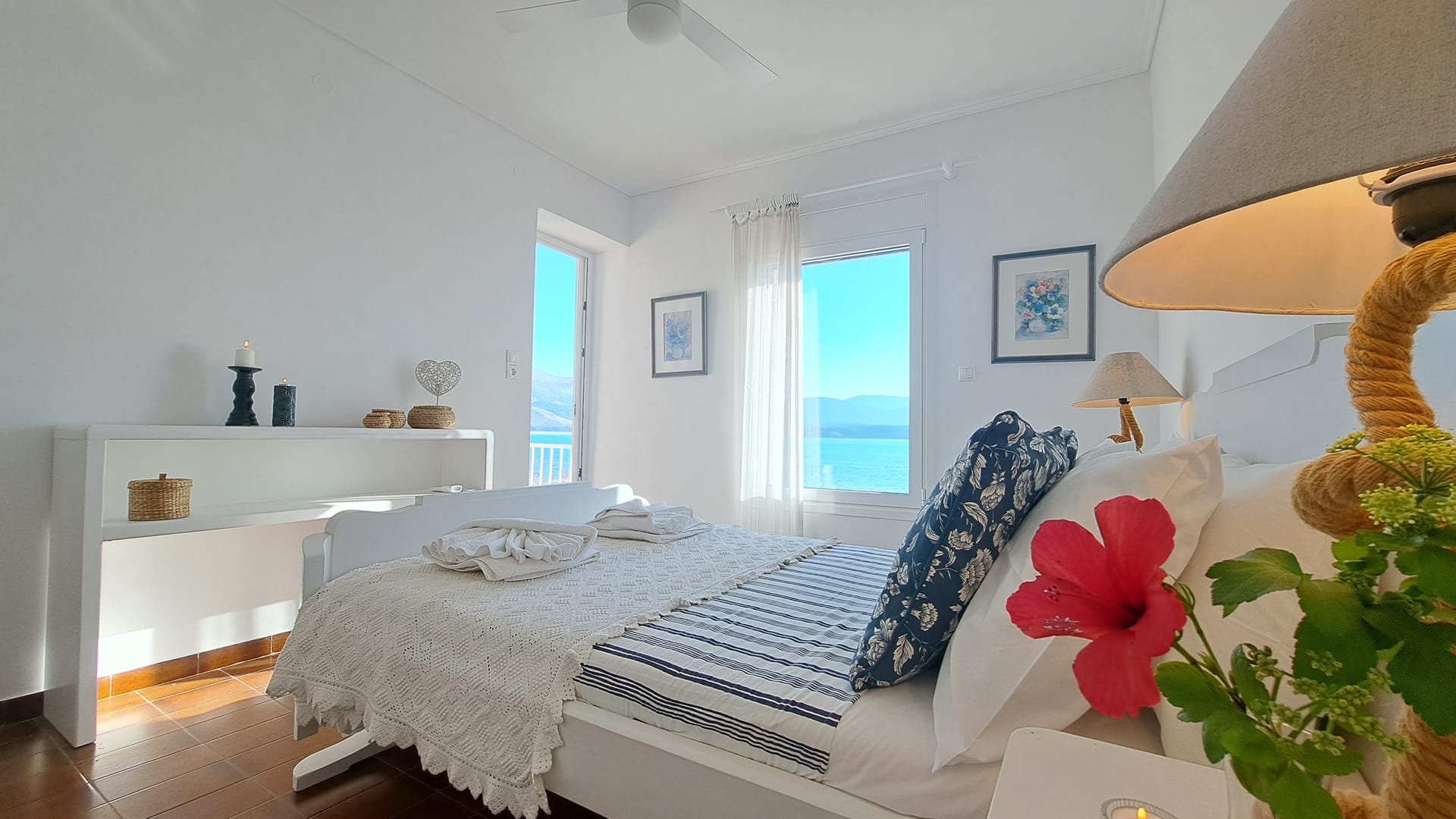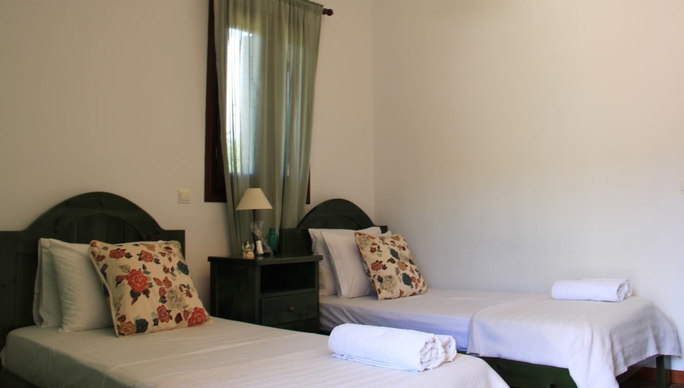 At the front of the premises, by the beach, we have Alexandros (downstairs) and Eleanna (upstairs). Tucked behind, amongst the trees but higher up and with incredible views, we have Maria Christina (downstairs) and Aspasia (upstairs).
