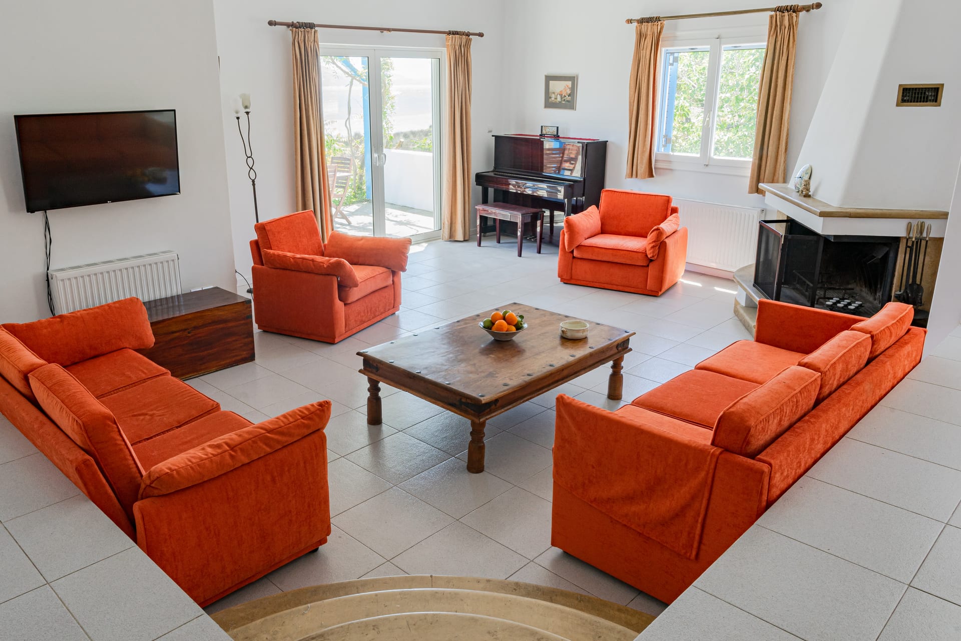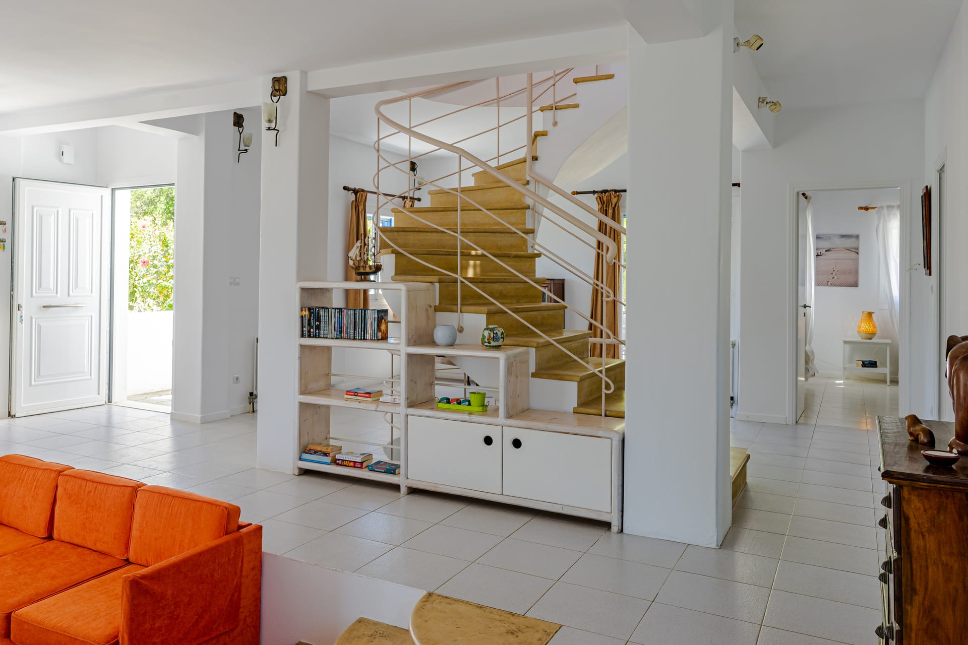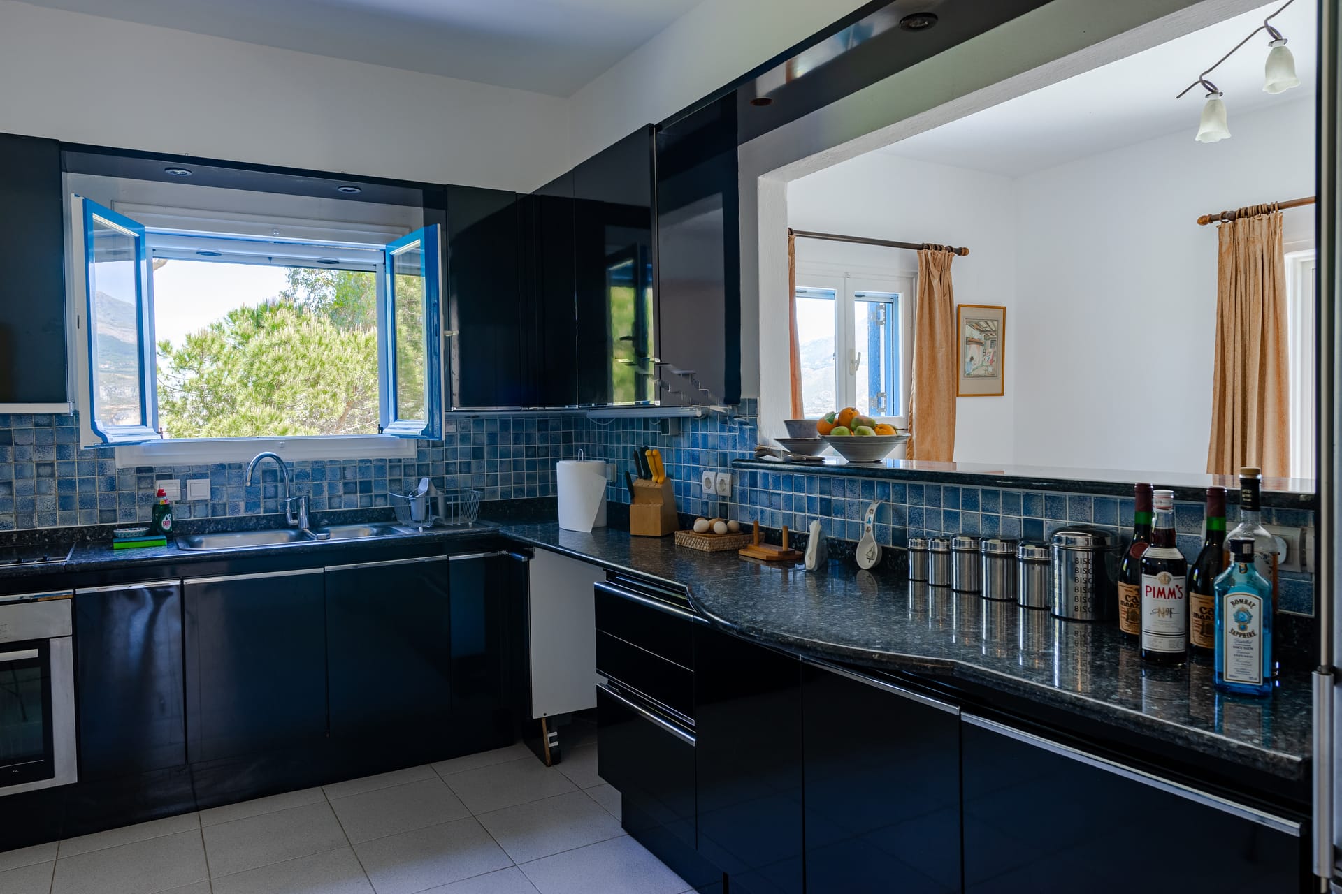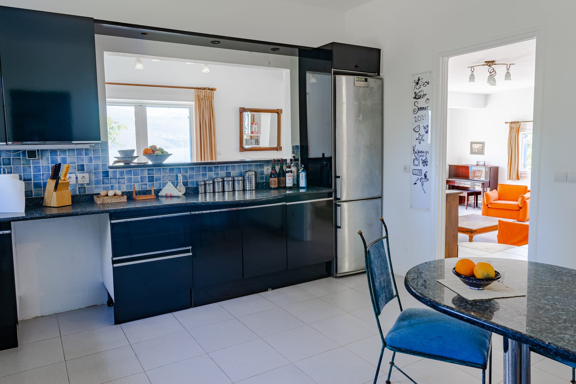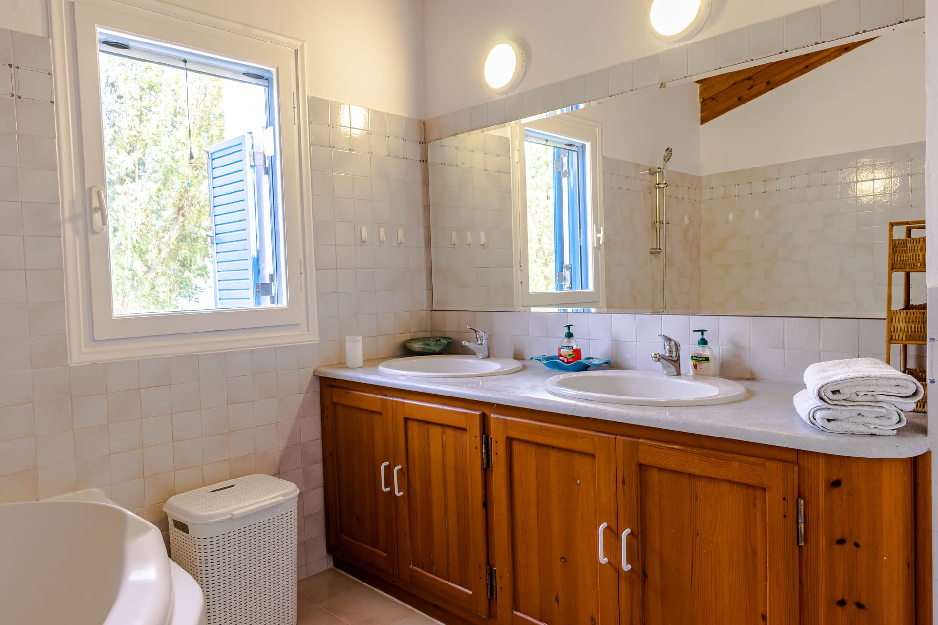 Outside, the property is surrounded by a wide expanse of gardens, with mature trees, pots of scented geranium and flowerbeds peppered with herbs you can use for your evening meal. Terraces surround the house on all levels, so you can catch the sun, or the shade, as you please. Strolling down from the terrace to a sandy path, you quickly reach the family-friendly beach. The gently-sloping coast and calm waters mean that young children can splash around safely. Please note that due to the gentle slope, deeper water for swimming is quite a distance out from the beach. For those looking for bigger waves and more excitement, the beaches of Petani and the north of the Paliki peninsula are within an easy drive of about 20 minutes.
