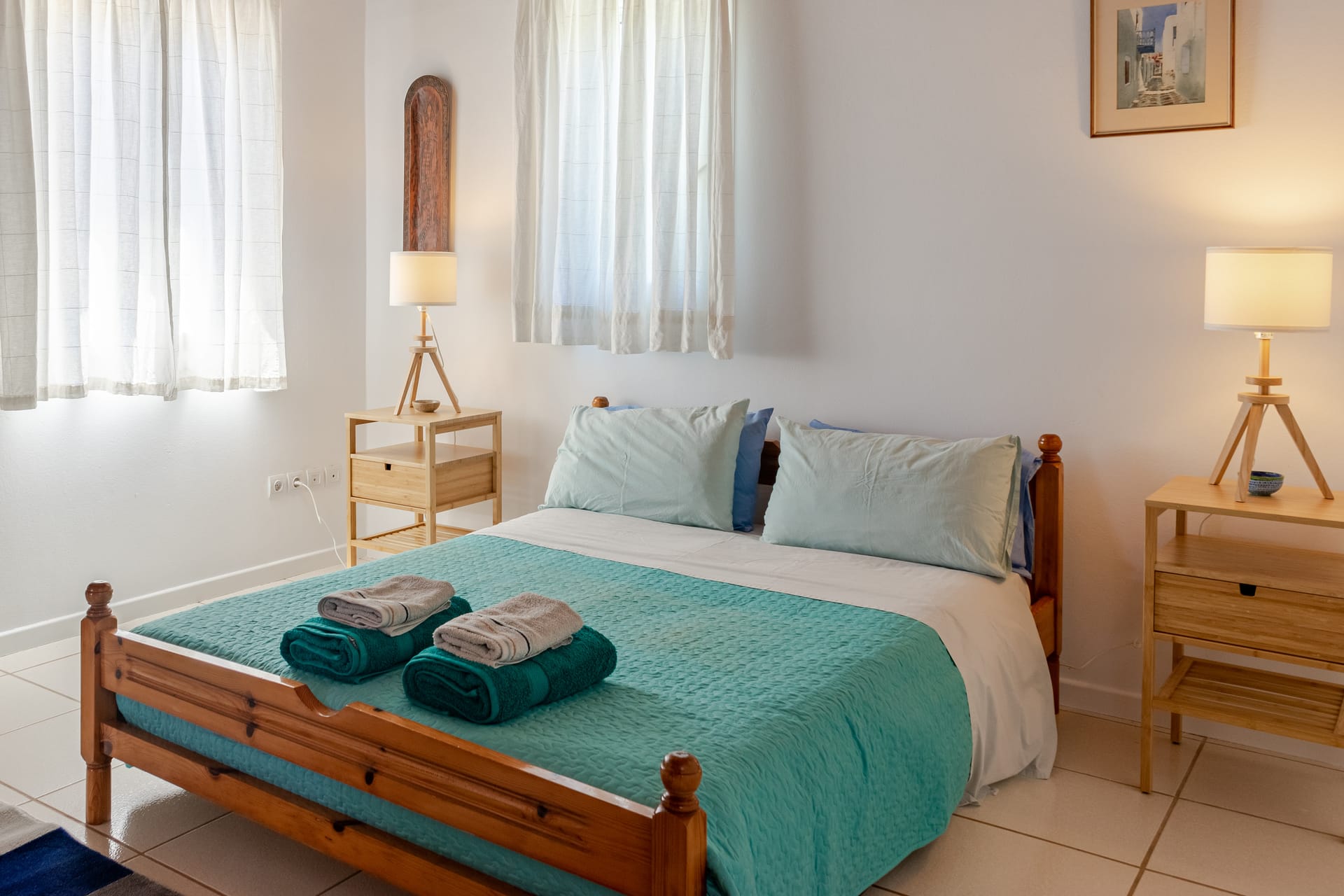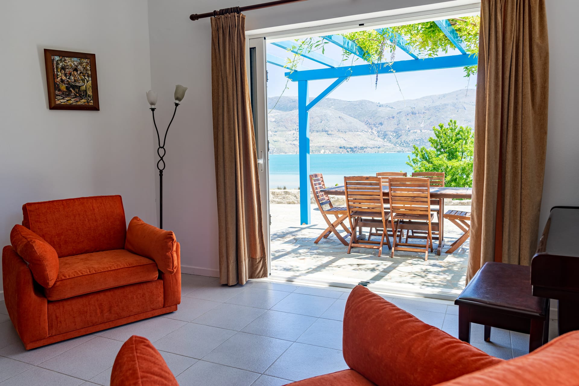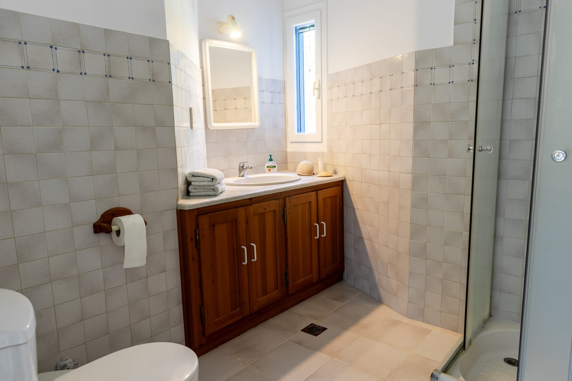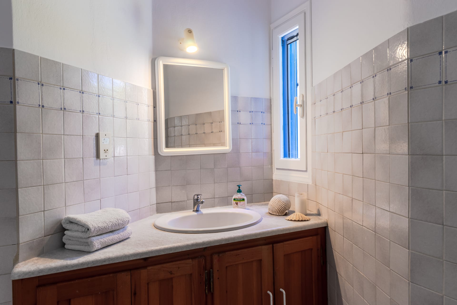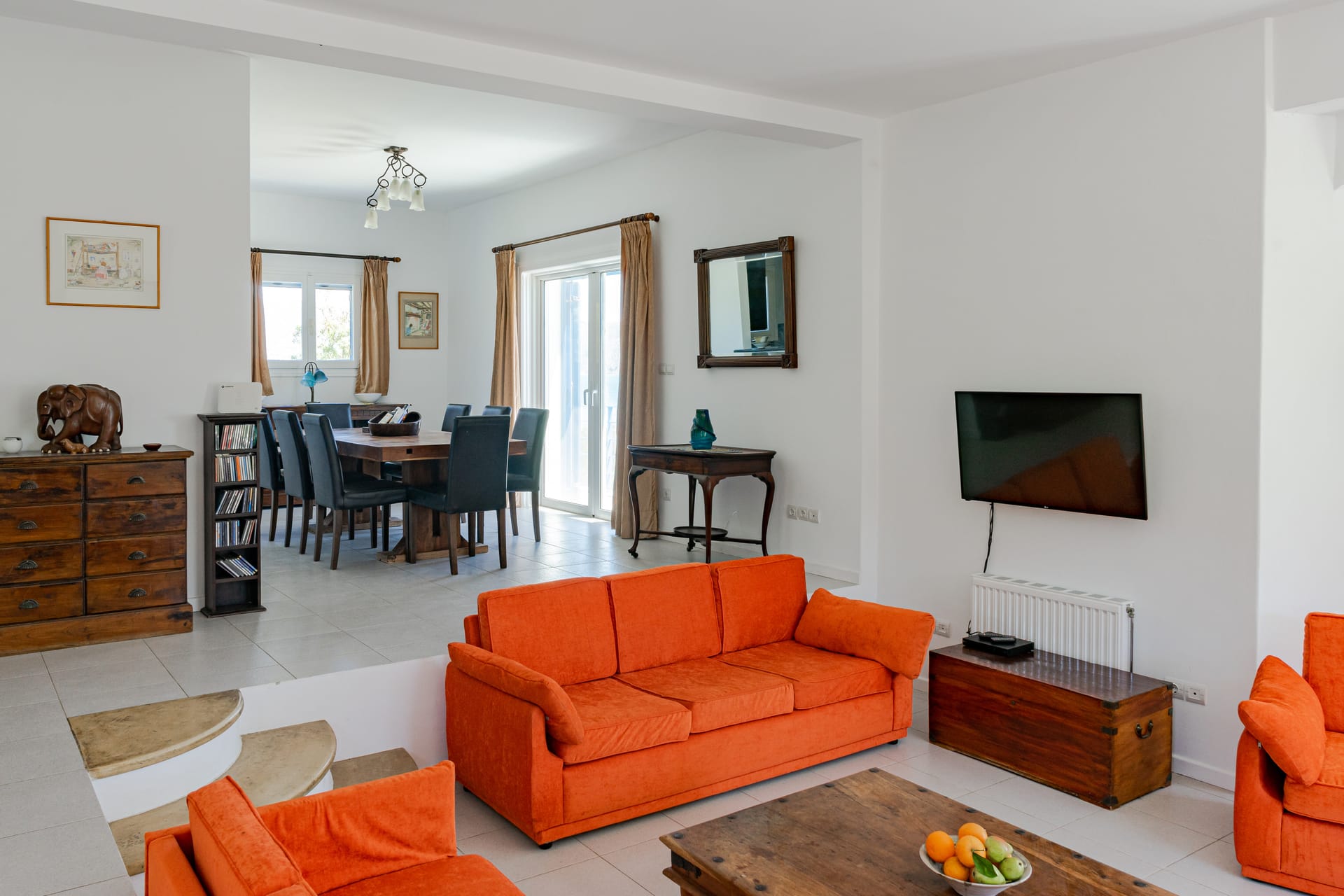 Outside, the property is surrounded by a wide expanse of gardens, with mature trees, pots of scented geranium and flowerbeds peppered with herbs you can use for your evening meal. Terraces surround the house on all levels, so you can catch the sun, or the shade, as you please. Strolling down from the terrace to a sandy path, you quickly reach the family-friendly beach. The gently-sloping coast and calm waters mean that young children can splash around safely. Please note that due to the gentle slope, deeper water for swimming is quite a distance out from the beach. For those looking for bigger waves and more excitement, the beaches of Petani and the north of the Paliki peninsula are within an easy drive of about 20 minutes.