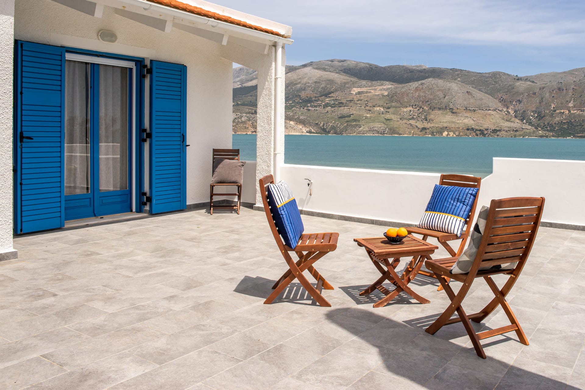 As you turn off the road from Lixouri and down the narrow lane towards the water you’ll feel a sense of anticipation as to what you’ll find. Passing between olive groves you get a glimpse of the sea as you approach the pretty blue-shuttered home that is yours for your holiday.