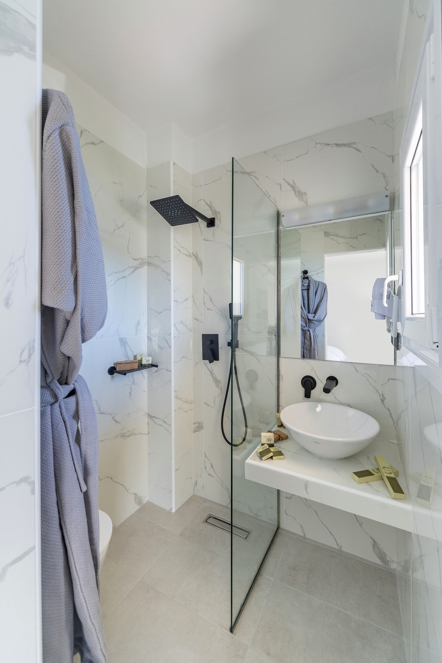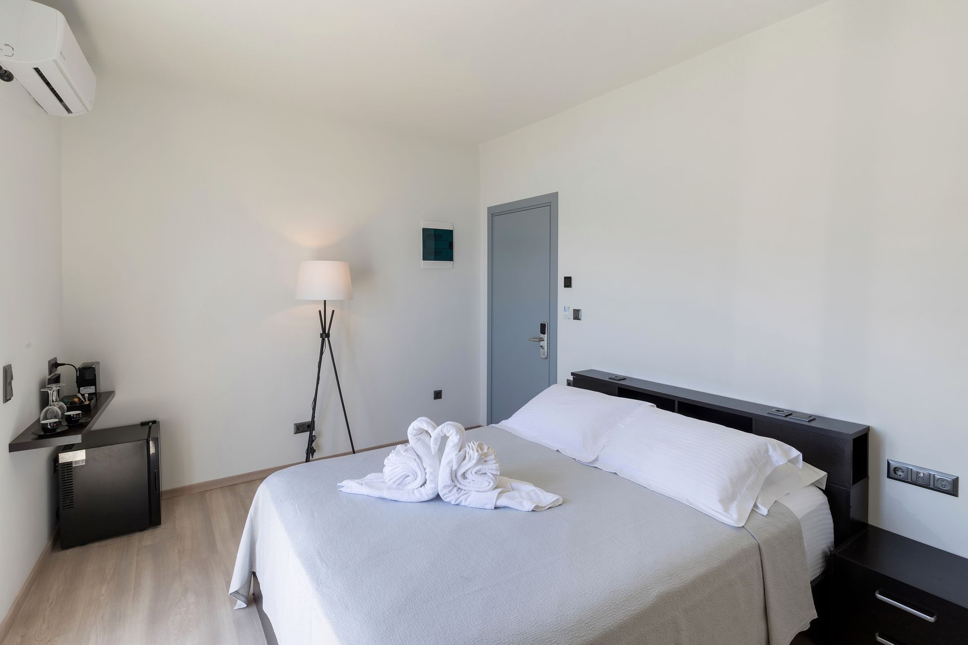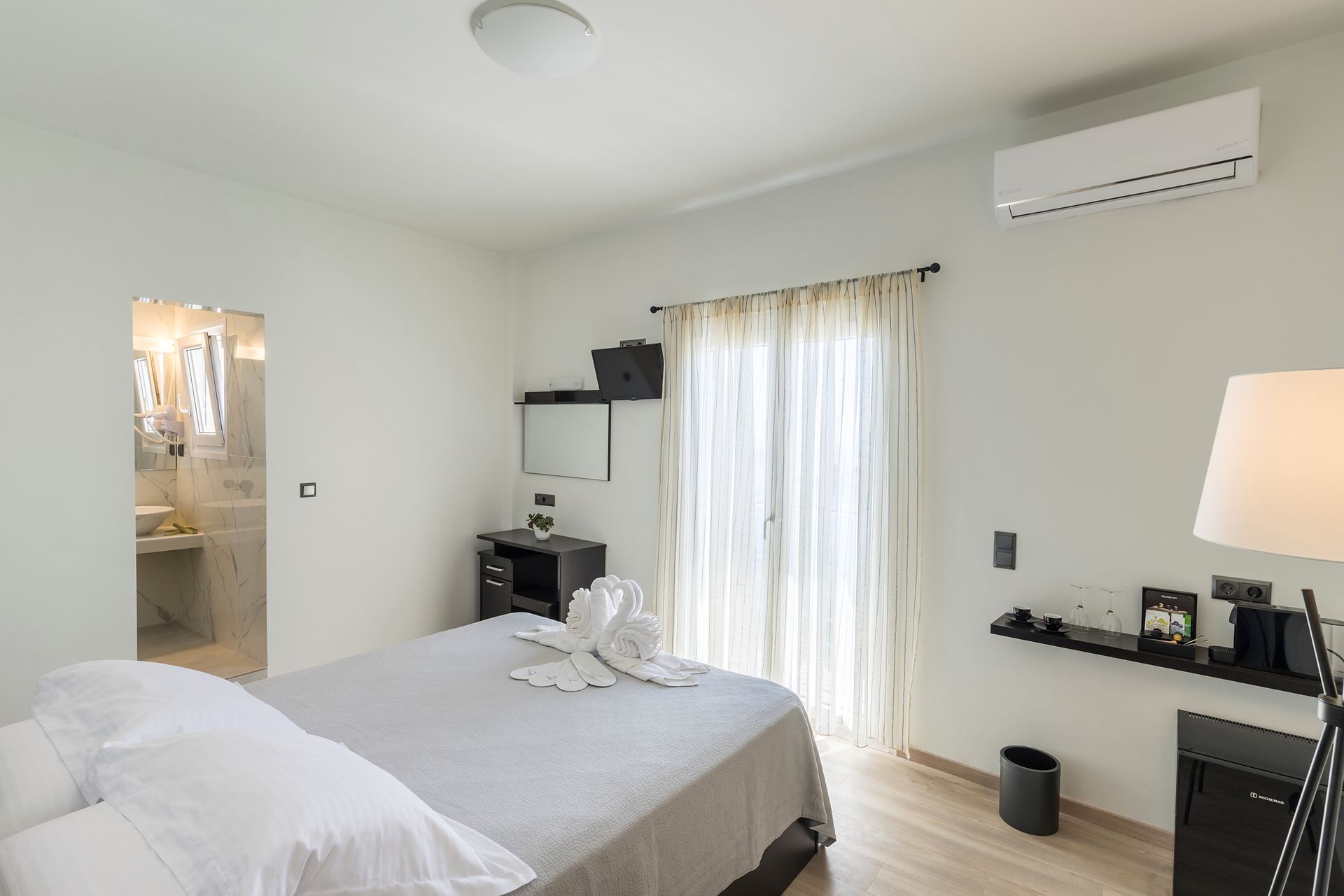 Sleek and spectacular with unparalleled panoramic views to the Aegean Sea, this luxury room is designed for utterly relaxing beachfront living. The interiors decorated in soothing blue and white tones against the breathtaking Aegean panorama as a backdrop, promise a gorgeous accommodation for up to two persons.