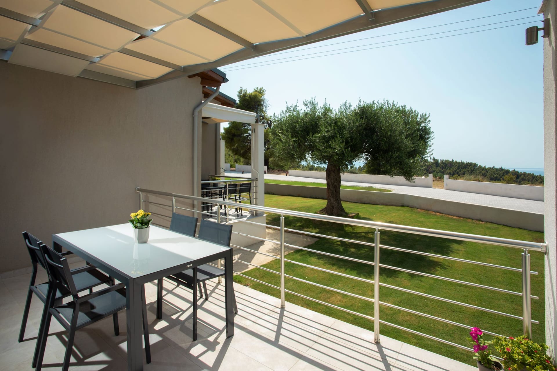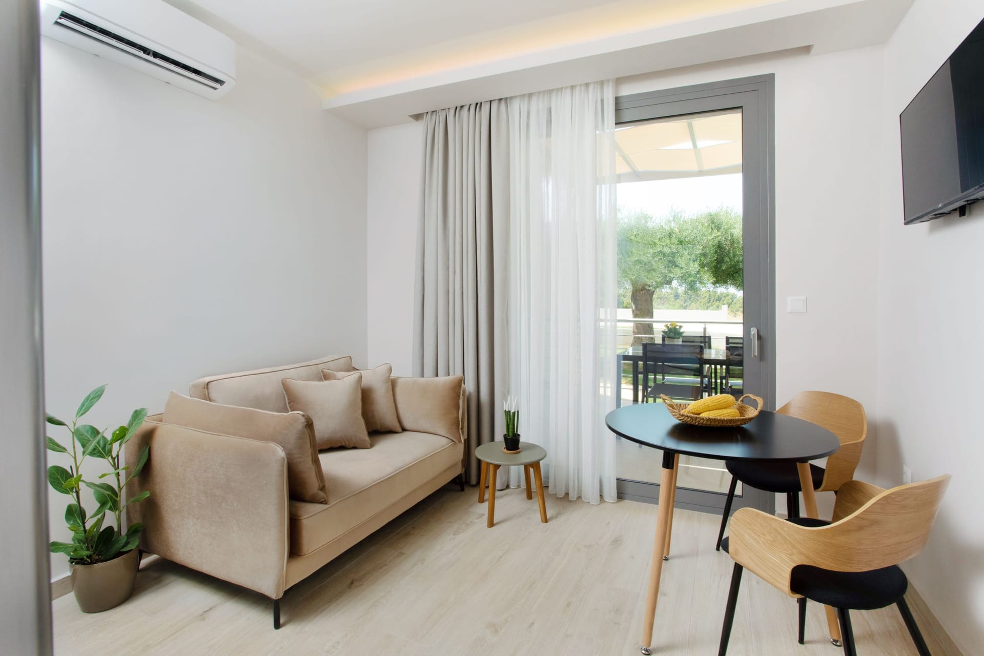 Welcome to our Deluxe Sea View Apartment where functionality blends in with the premium design details of the amenities and decoration. This type of room presents a spacious living room area alongside an airy private balcony with contemporary outdoor furniture and sea views.