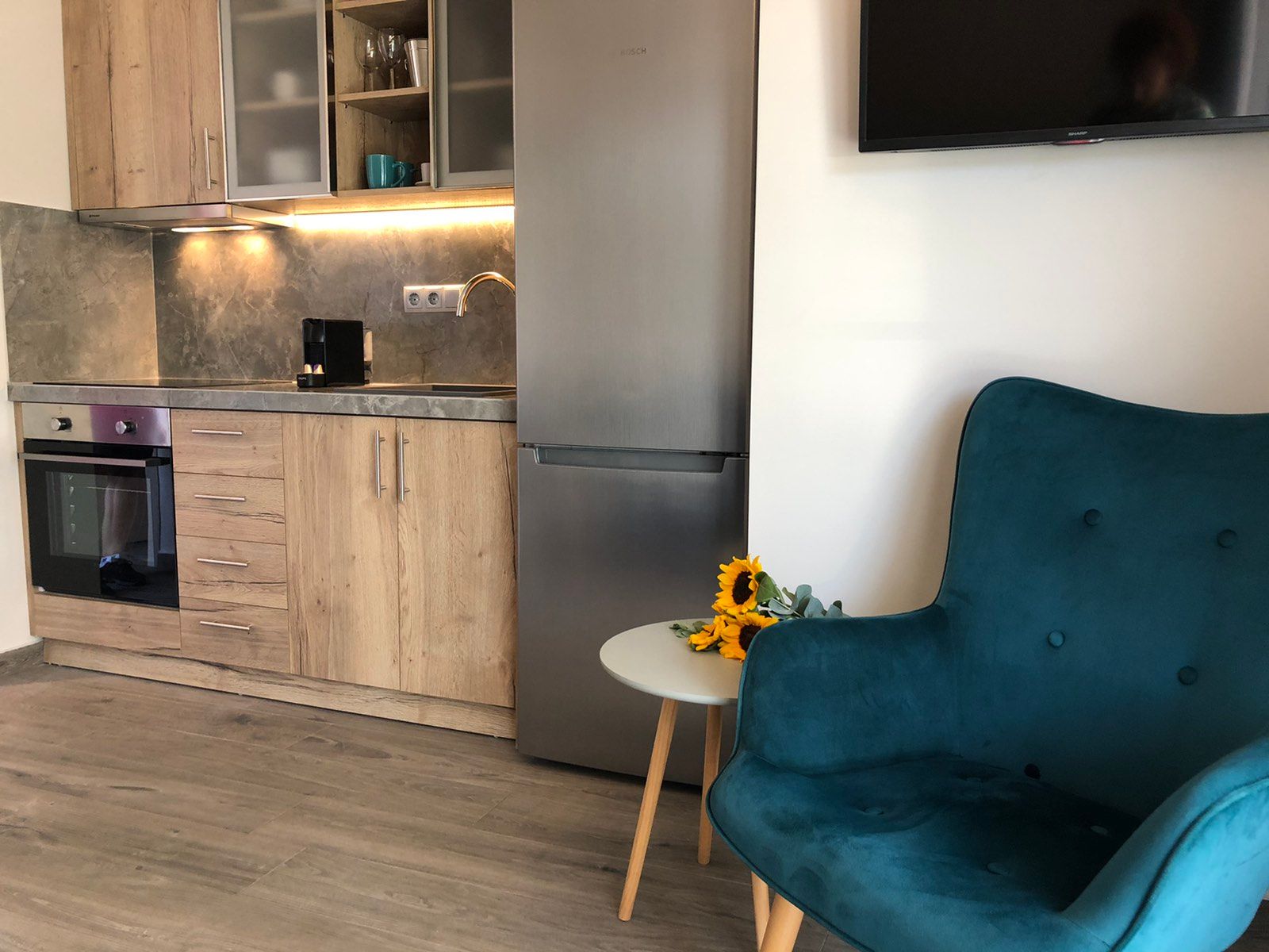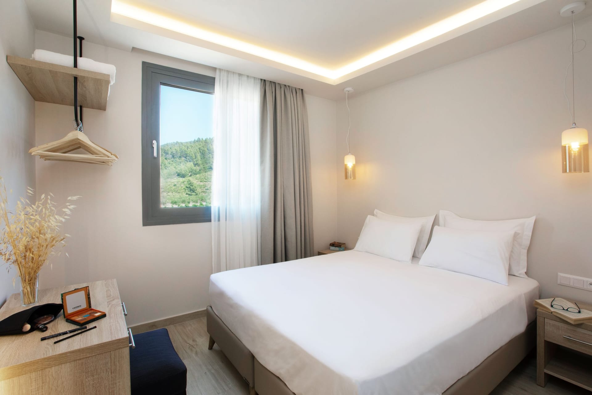 The refreshing bathroom features a rainfall shower as well as lavish bath amenities for an ultimate cozy experience. The Deluxe Sea View Apartment provides a Queen-Size bed, a fully equipped kitchen and it is ideal for the precious getaway of 2 guests.