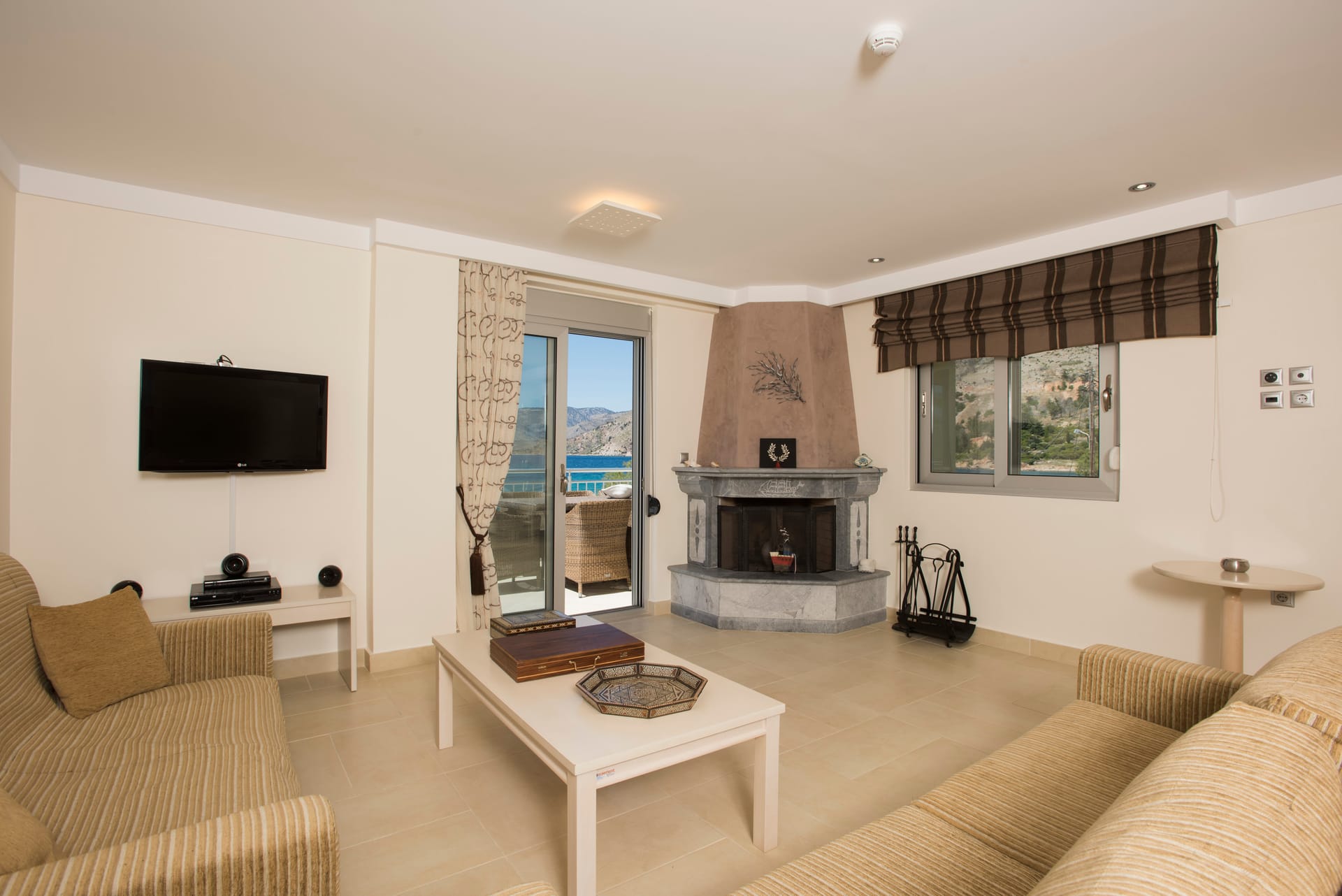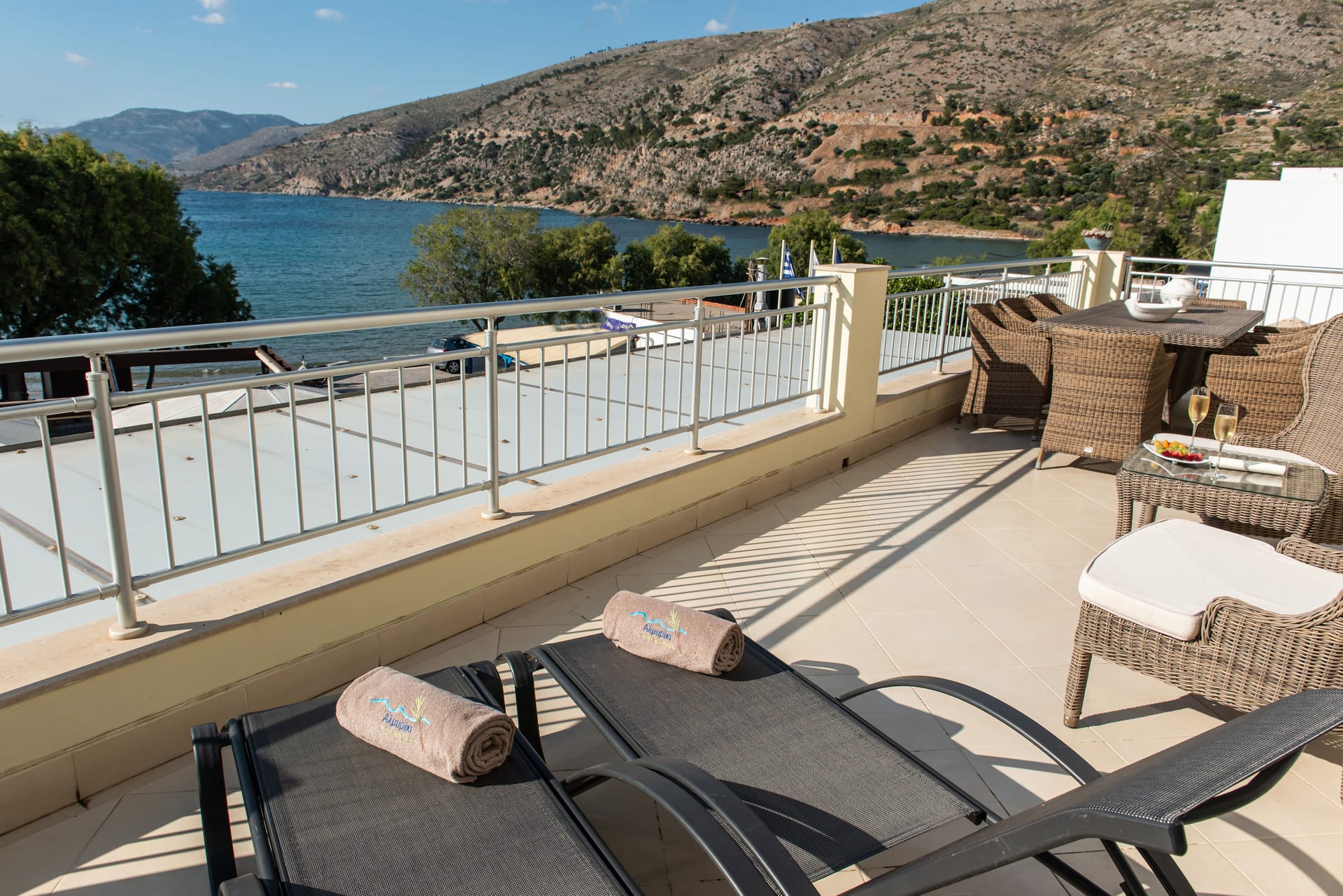 Our 2 Bedroom 2 Bathroom Suite with Sea View on the first floor of the Hotel consisting of two bedrooms (features a king and a queen size bedroom), a spacious living area with two double sofa beds, two separate bathrooms and a very spacious balcony with a living room and a dinning table.