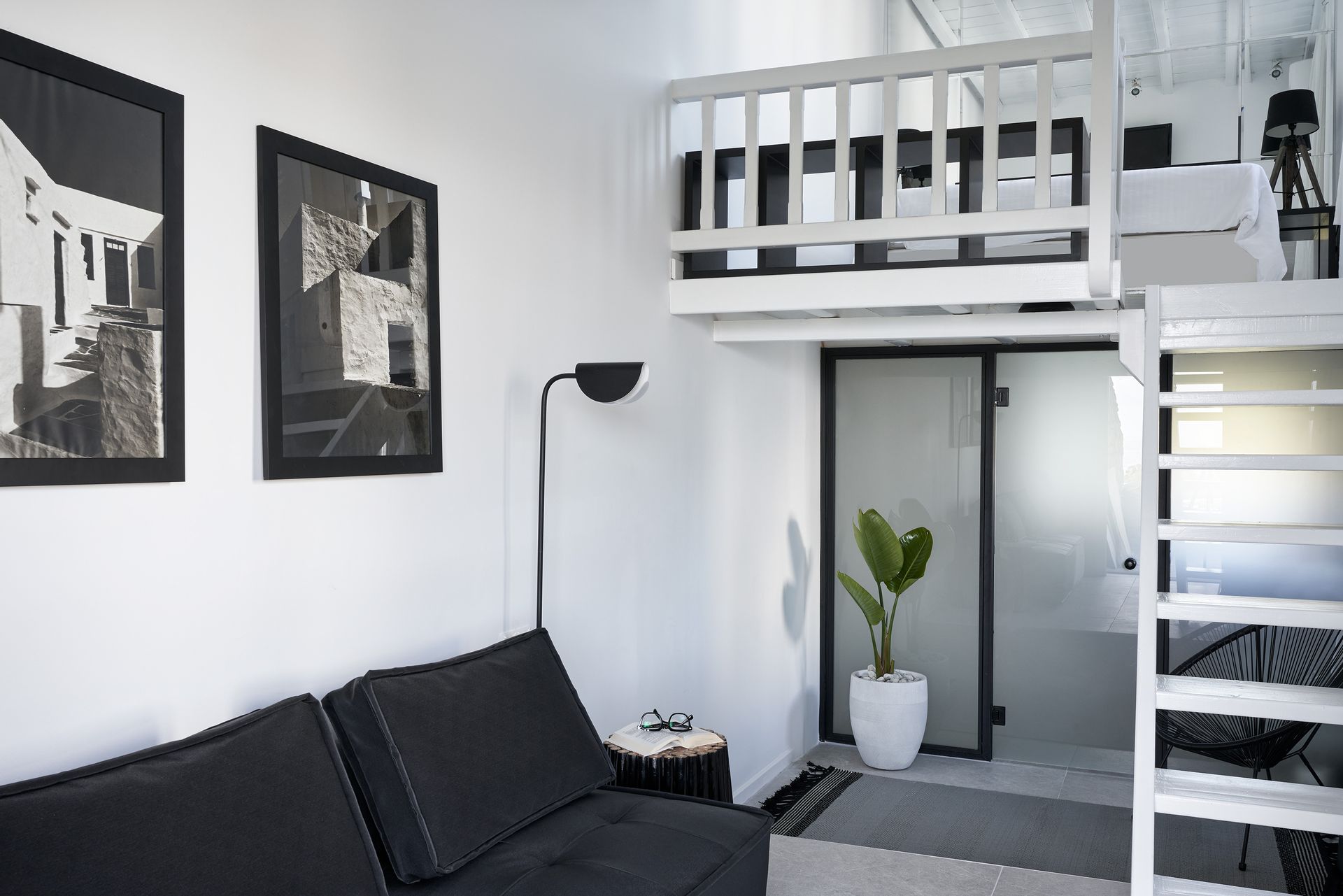 Small double storey studio , situated on the 1st floor at 25 sqm with panoramic sea view.