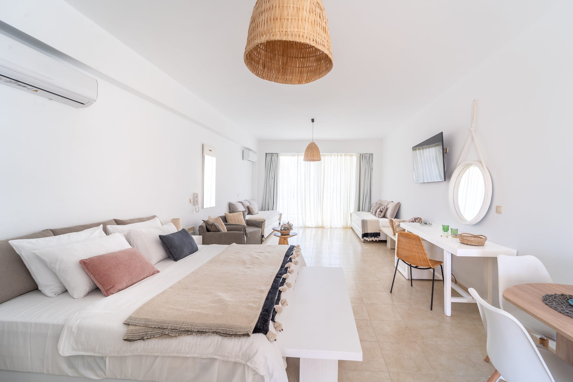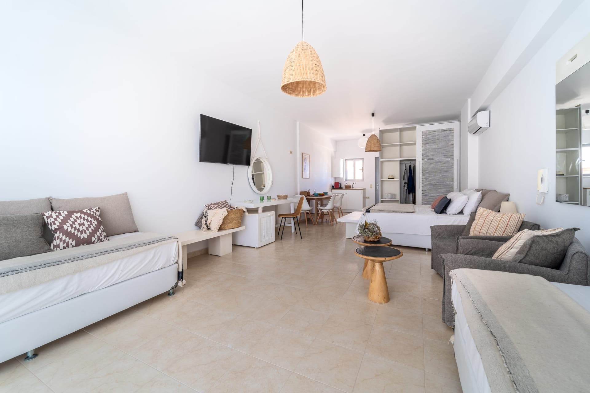 Experience modern comfort in our newly renovated Comfort Apartment with Balcony. This stylishly designed space offers the perfect retreat for up to four guests, combining contemporary aesthetics with functionality. Relax and unwind in the spacious living area, complete with a cozy kitchenette for your culinary needs. Step out onto the private balcony and savor the fresh air and city views. Perfect for families or couples, our Comfort Suite offers a tranquil retreat in the heart of the city.