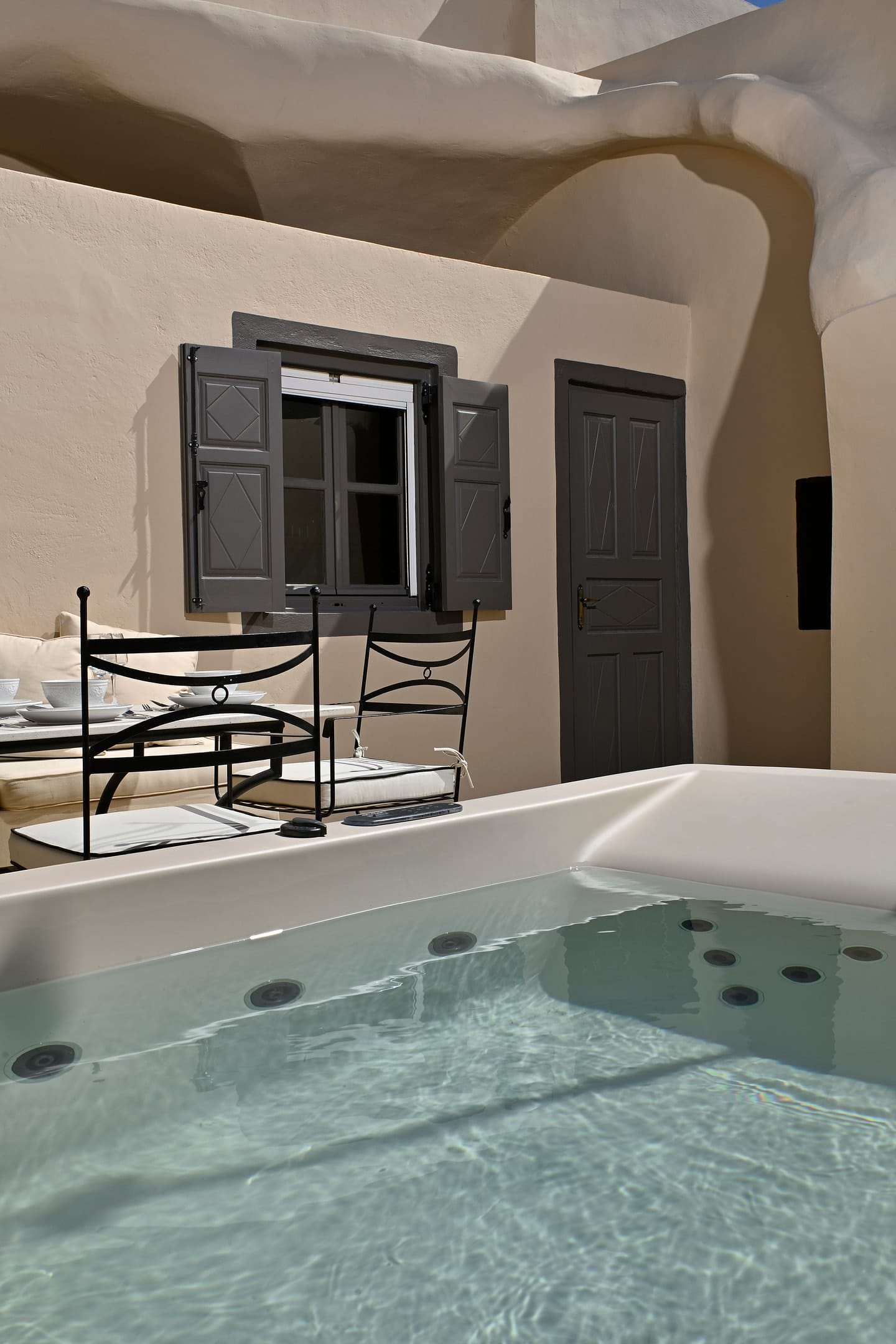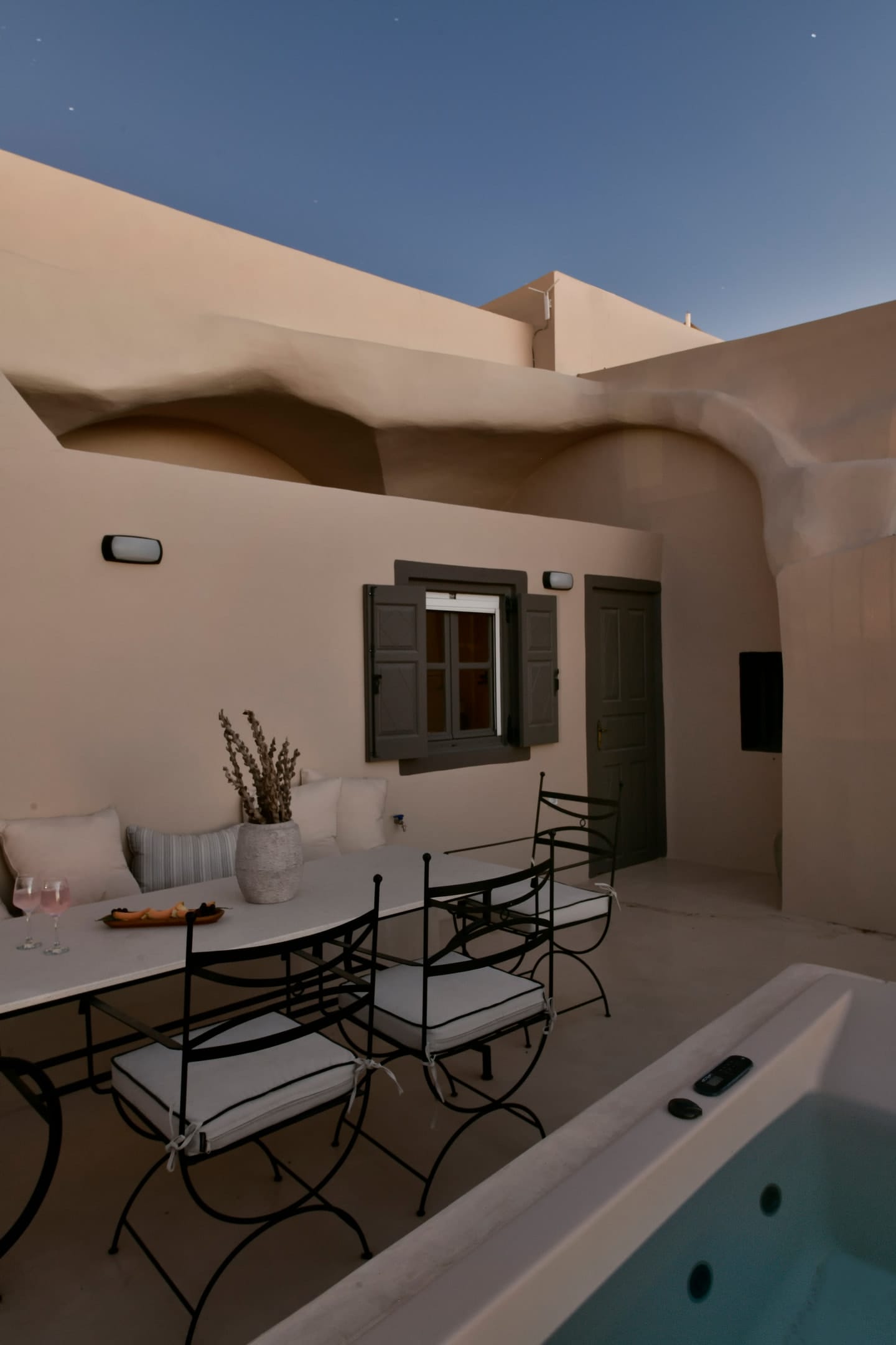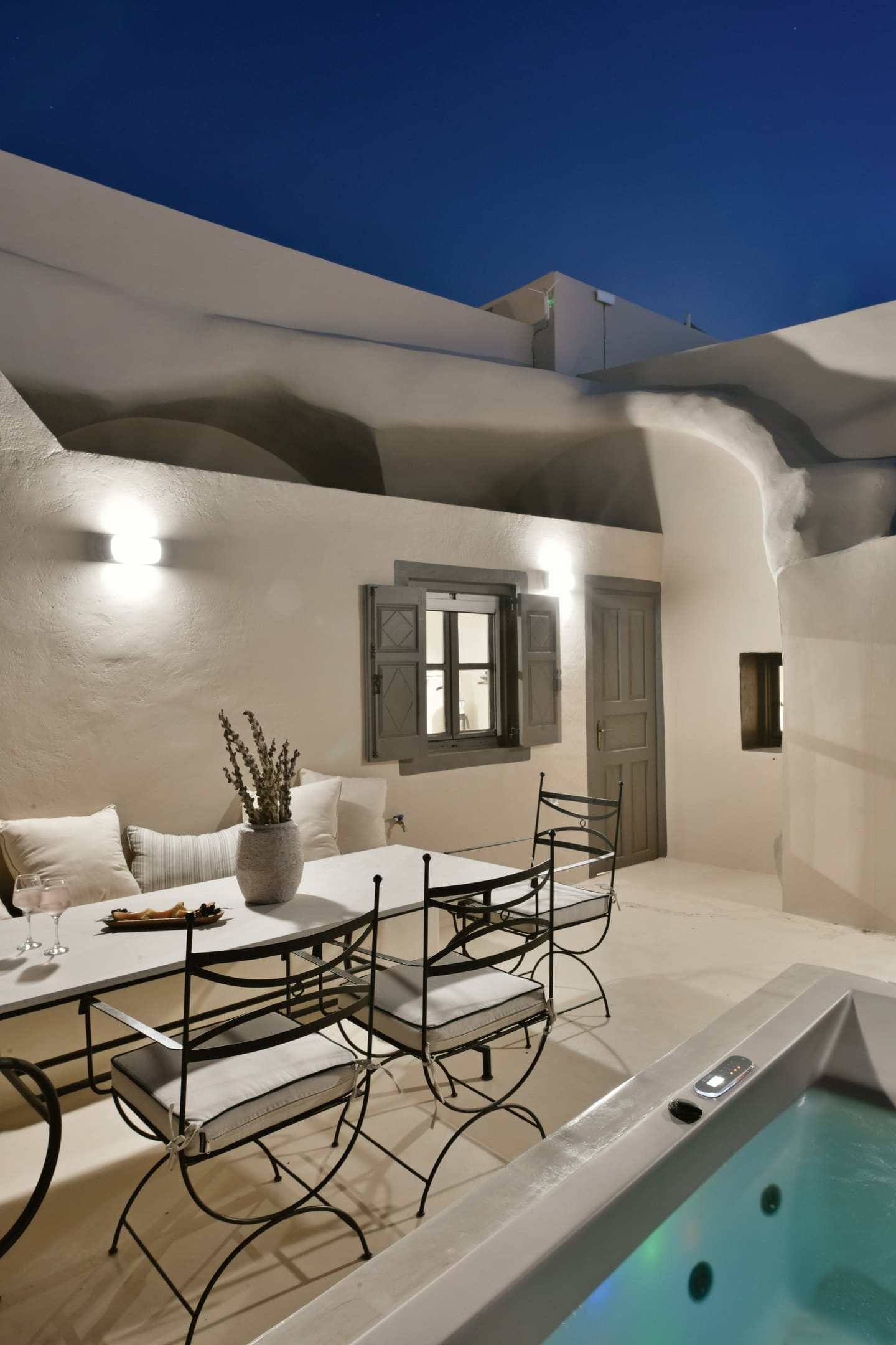 The courtyard and the terrace with the sea view will make your stay in Oia even more beautiful with the amazing view to the horizon as a backdrop.