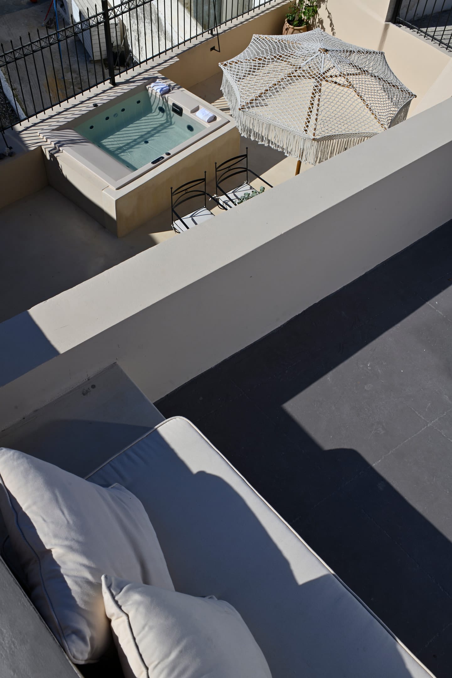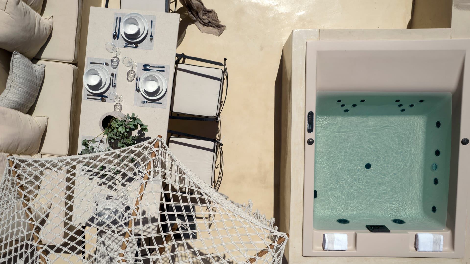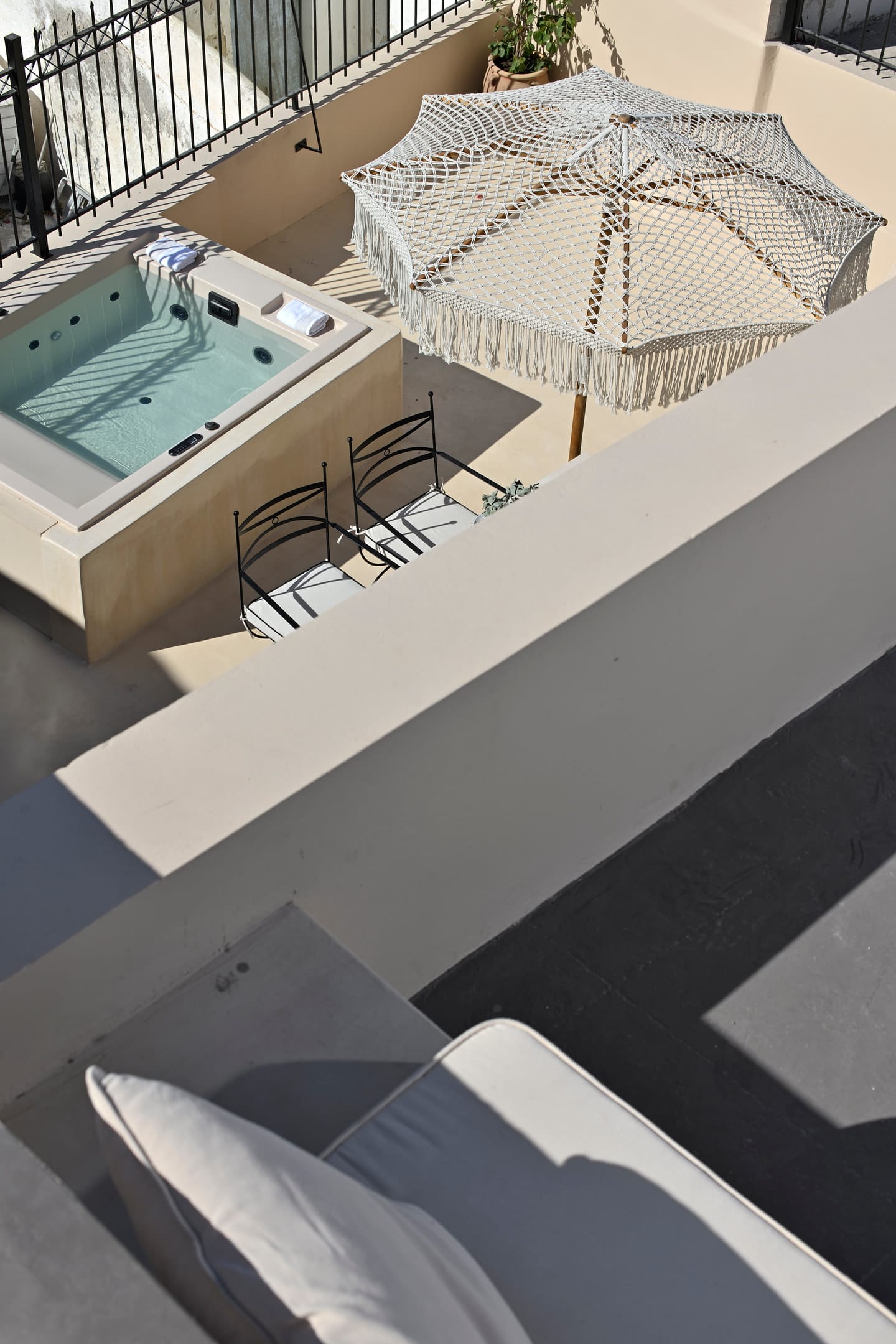 The courtyard and the terrace with the sea view will make your stay in Oia even more beautiful with the amazing view to the horizon as a backdrop.