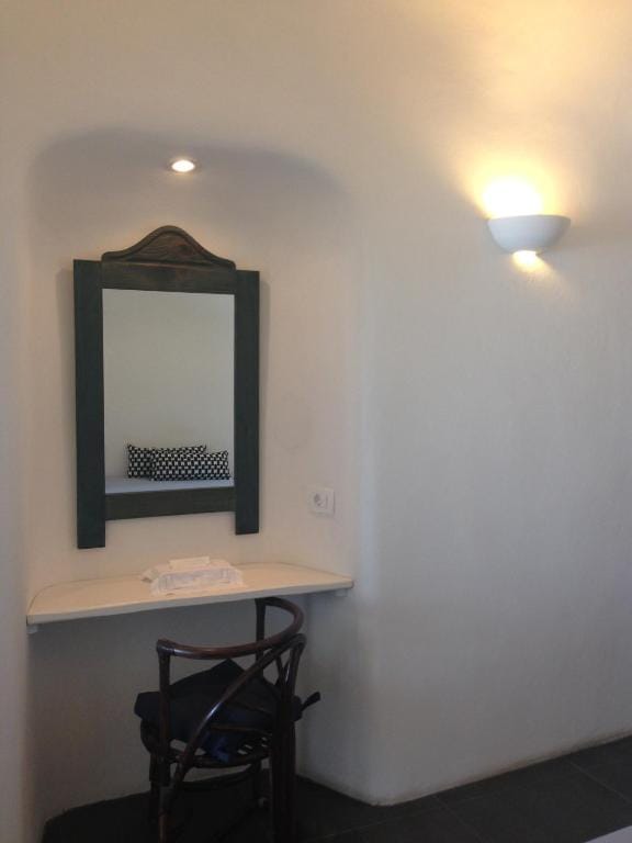 The terrace boasts a very large sheltered plunge pool that is accessible both from inside the Suite and from the terrace. Excellent volcano, caldera and sea views, along with a beautiful perspective of the traditional settlement of Imerovigli.
