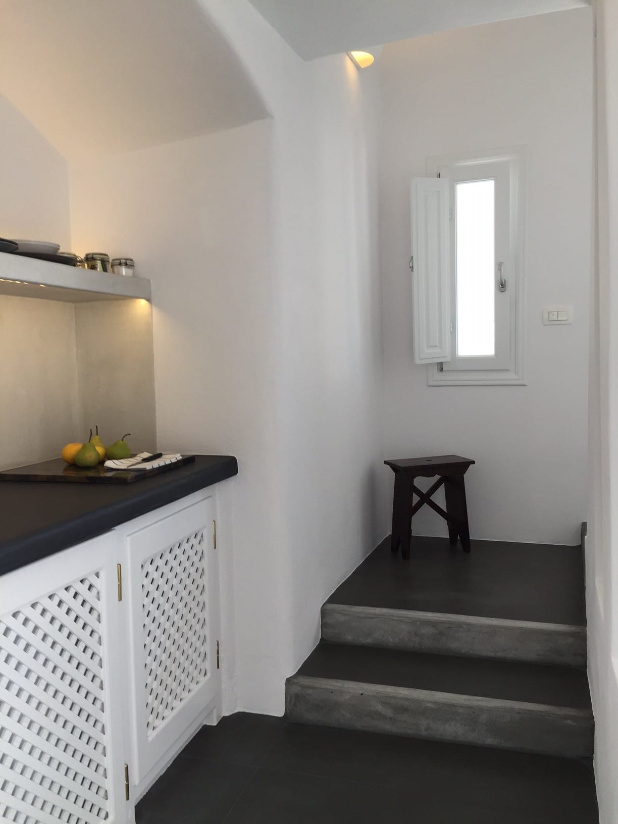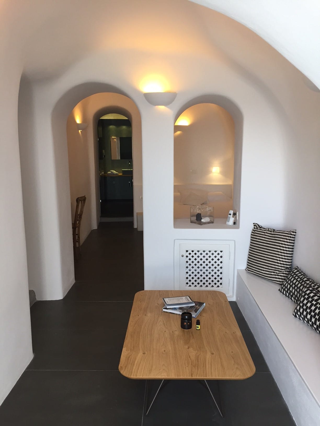 A distinctive Cave Suite, with a unique architectural layout and a perfect blend of traditional and modern architectural features, including an open plan kitchenette.