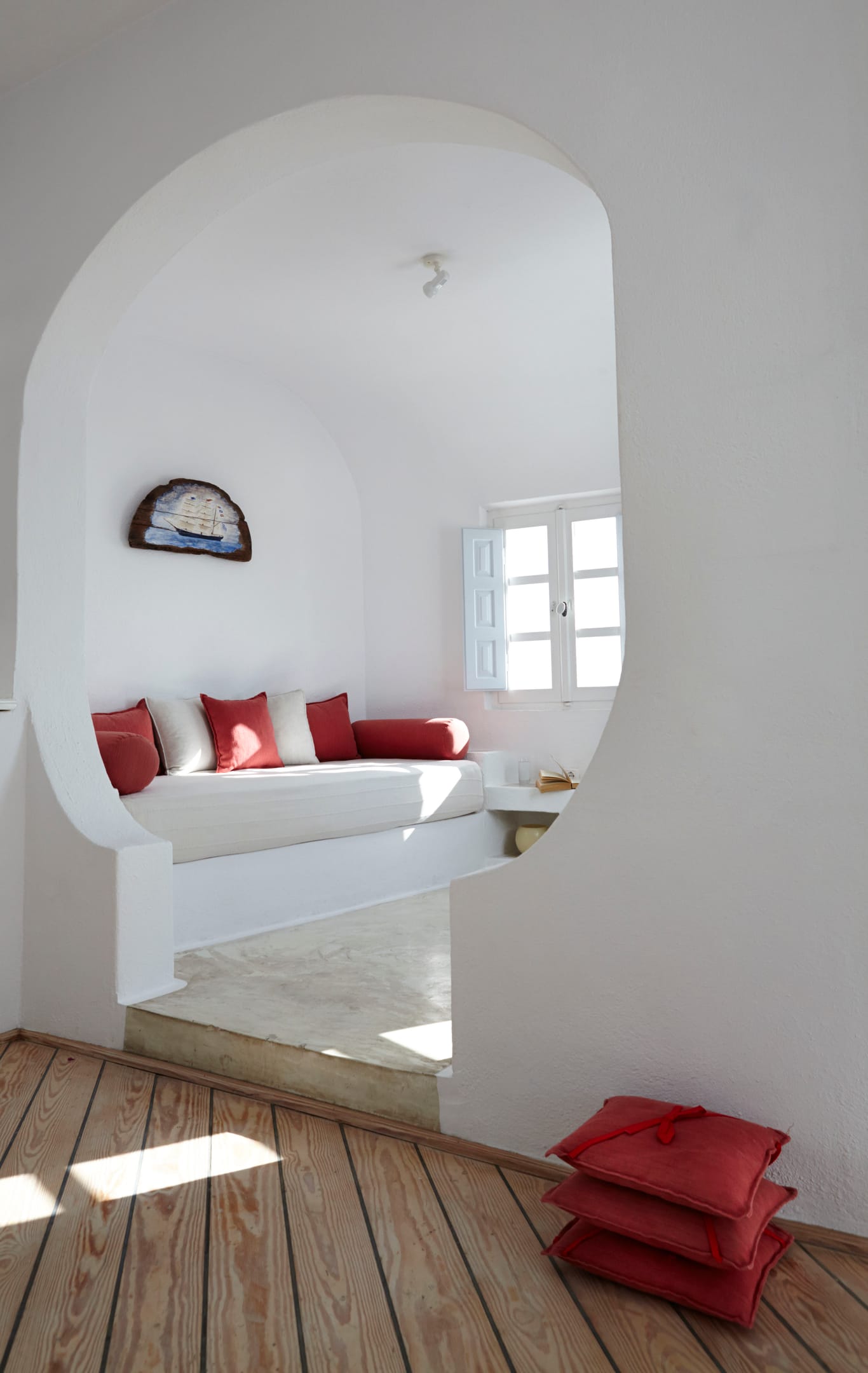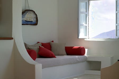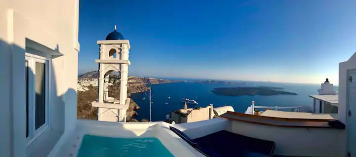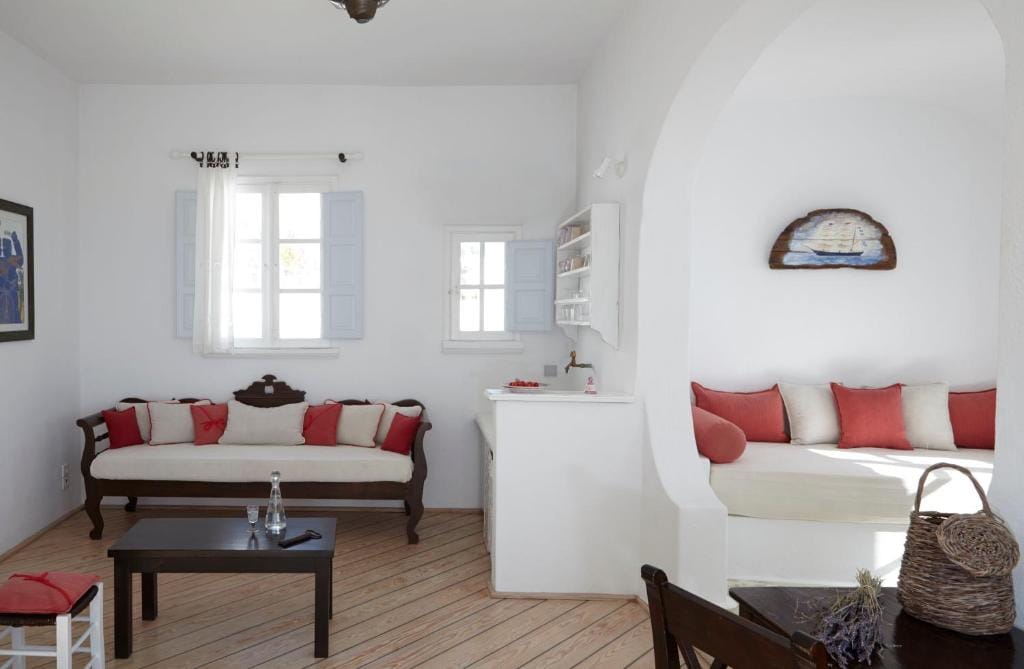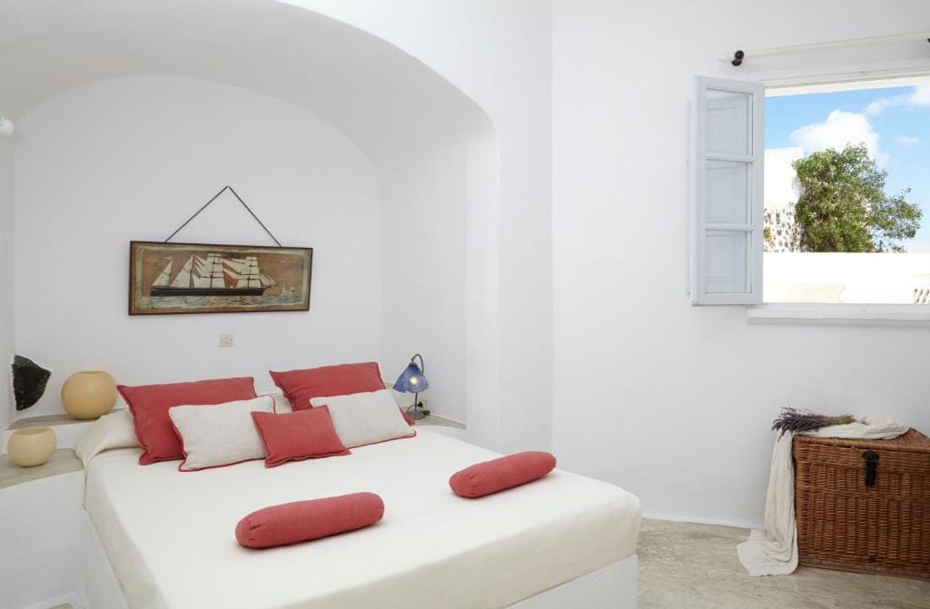 A large, fully private, elegant apartment, decorated in the characteristic, traditional Santorinian architectural style.