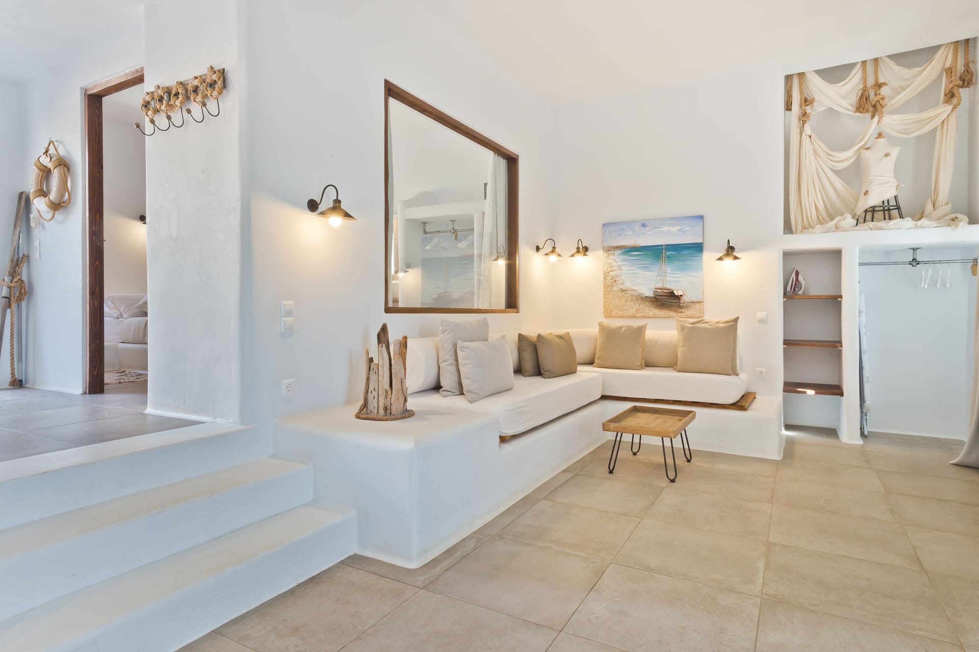 Its furnished large private veranda of 20m² offers built-in sofa loungers, a dining area and astonishing sea view.