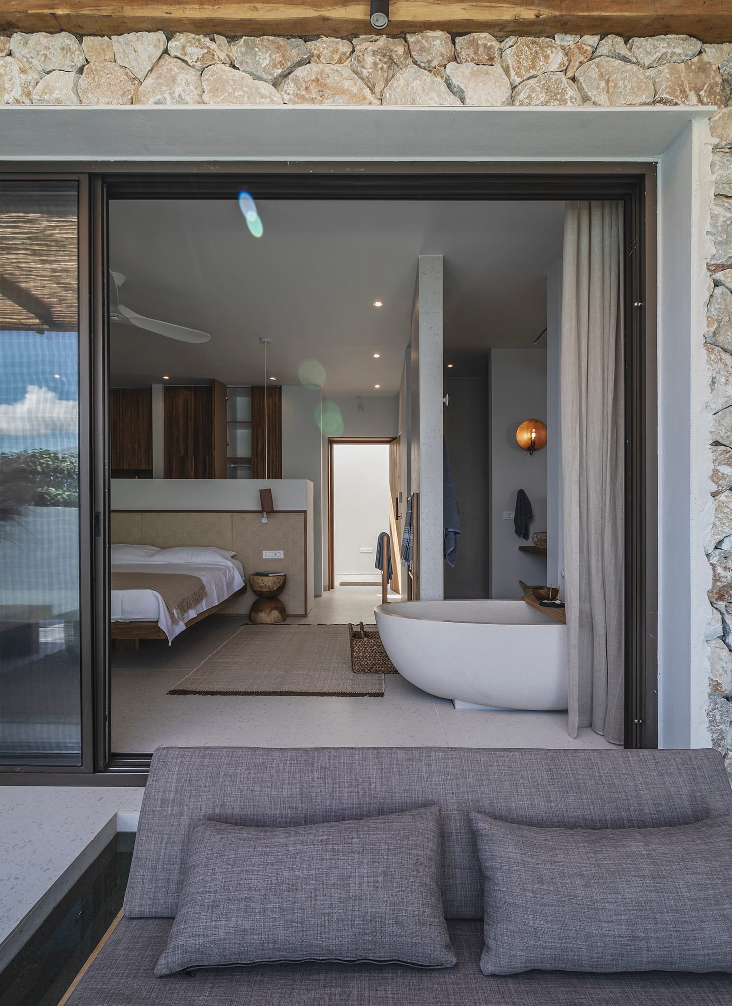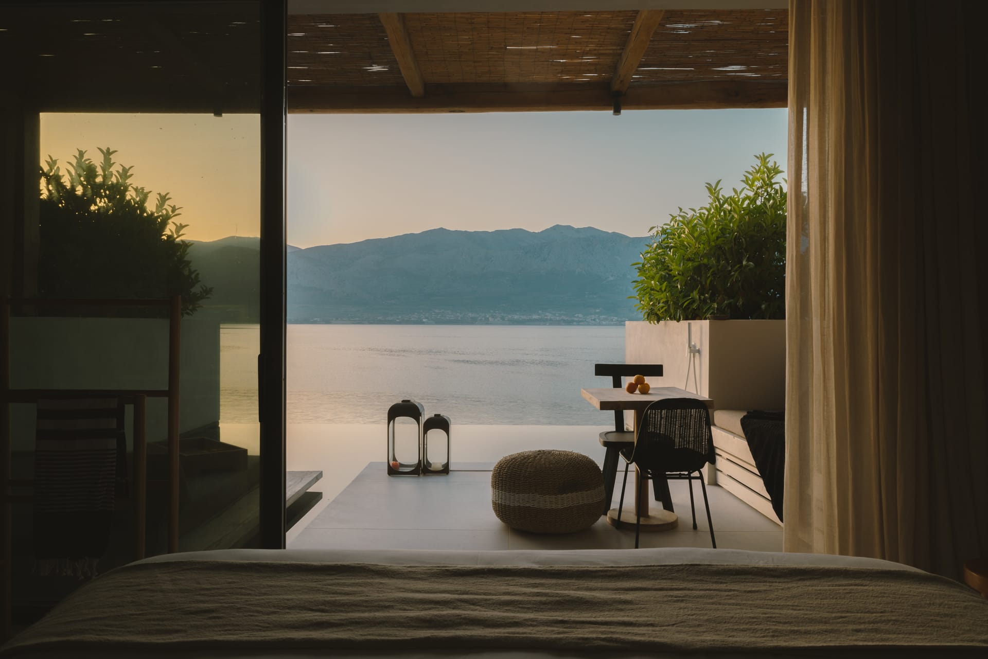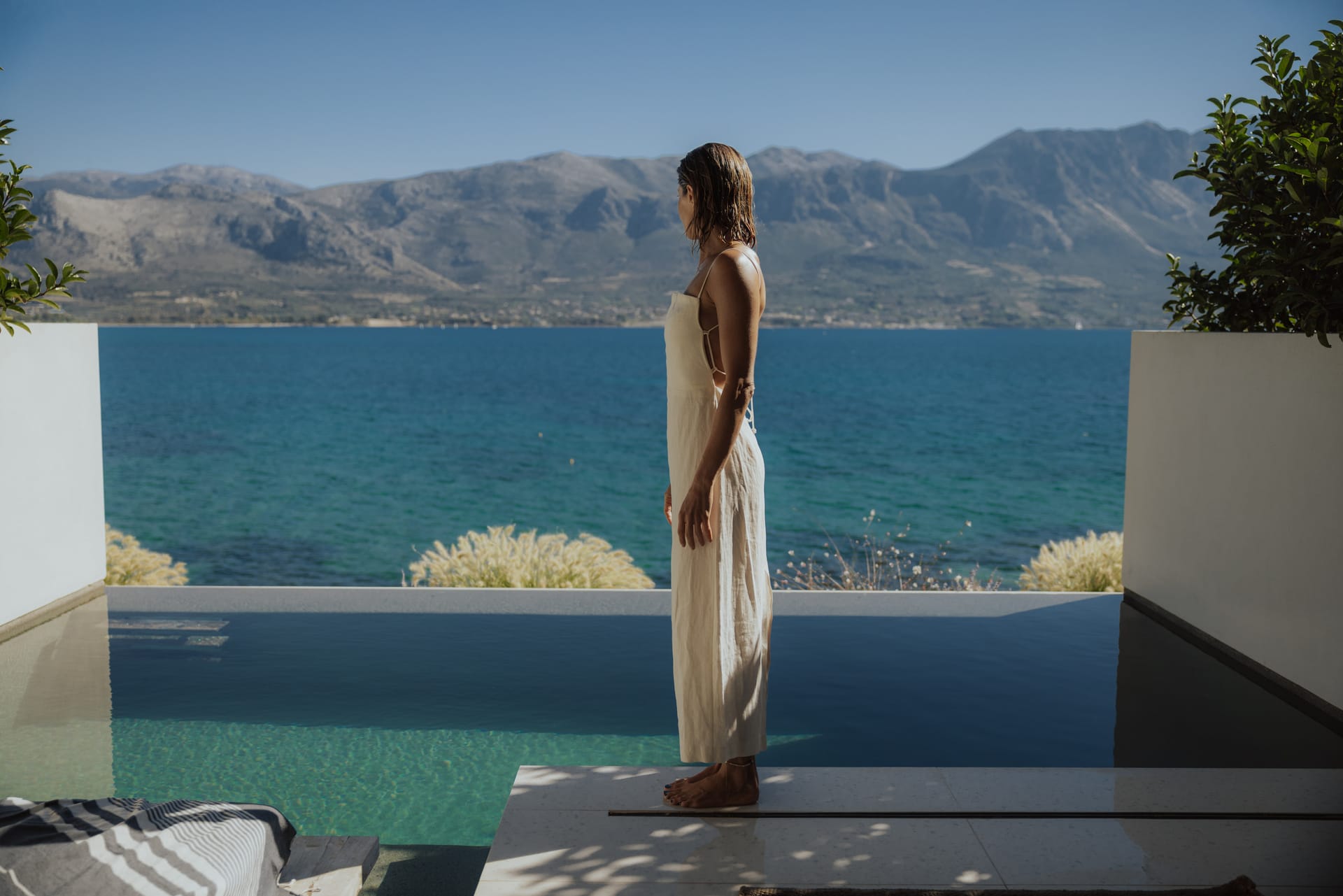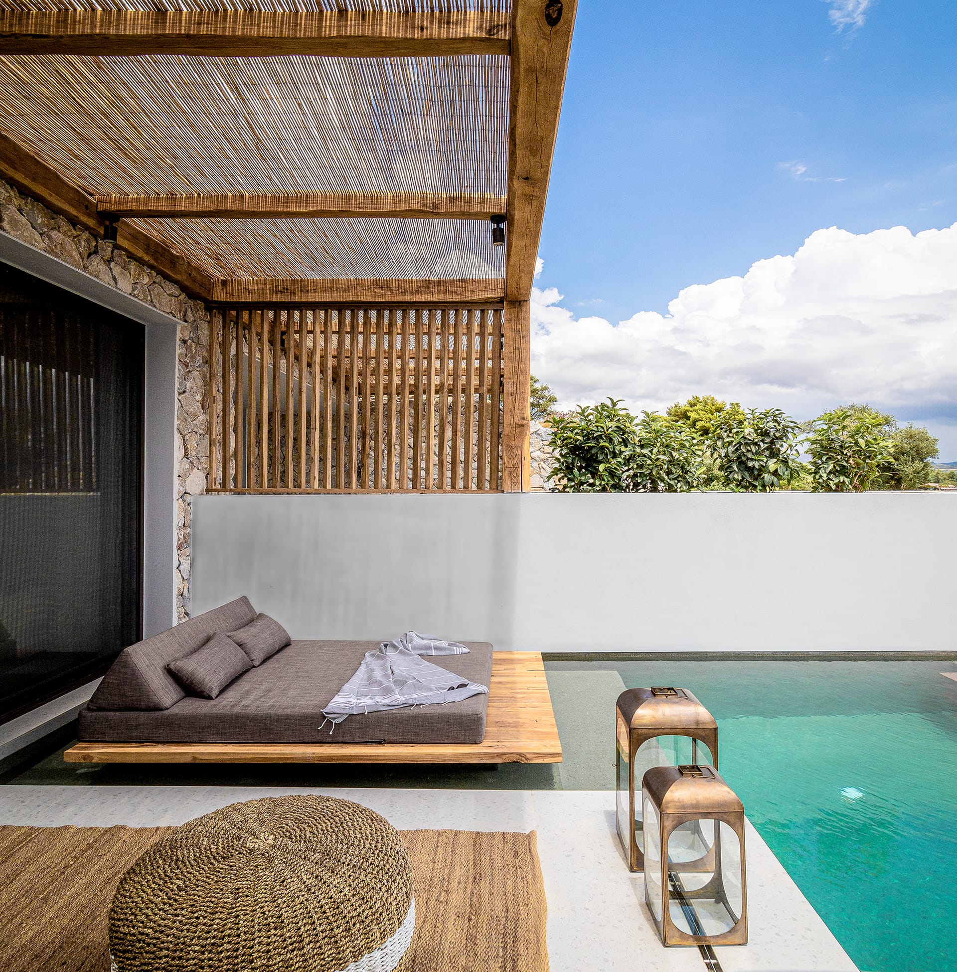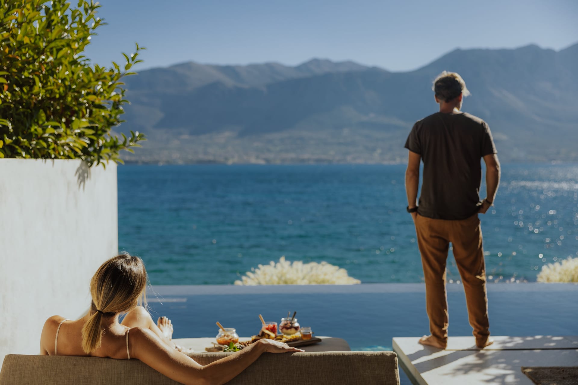 Sleep soundly on a high quality teakwood bed and natural, sustainable Coco-Mat mattress. Take a refreshing shower or luxuriate in the bathtub with our specially selected Zealots, Greek Culture products that are inspired by ancient art, natural ingredients and a touch of alchemy. Indulge your senses, lie back and drink in the stunning panoramic view of the Ionian Sea and Acarnanian Mountains before you. Or venture outside to the serene lounge area, immerse yourself in your own private infinity pool then recline on the sun deck until the sun goes down. Amethyst Selene Suites offer the perfect combination of tranquility and seclusion.
