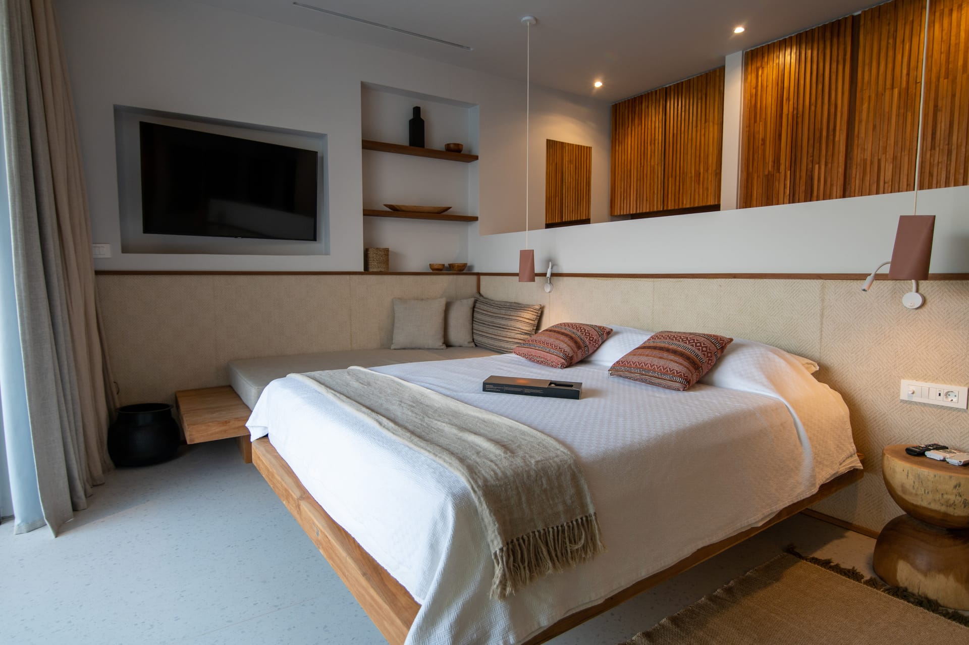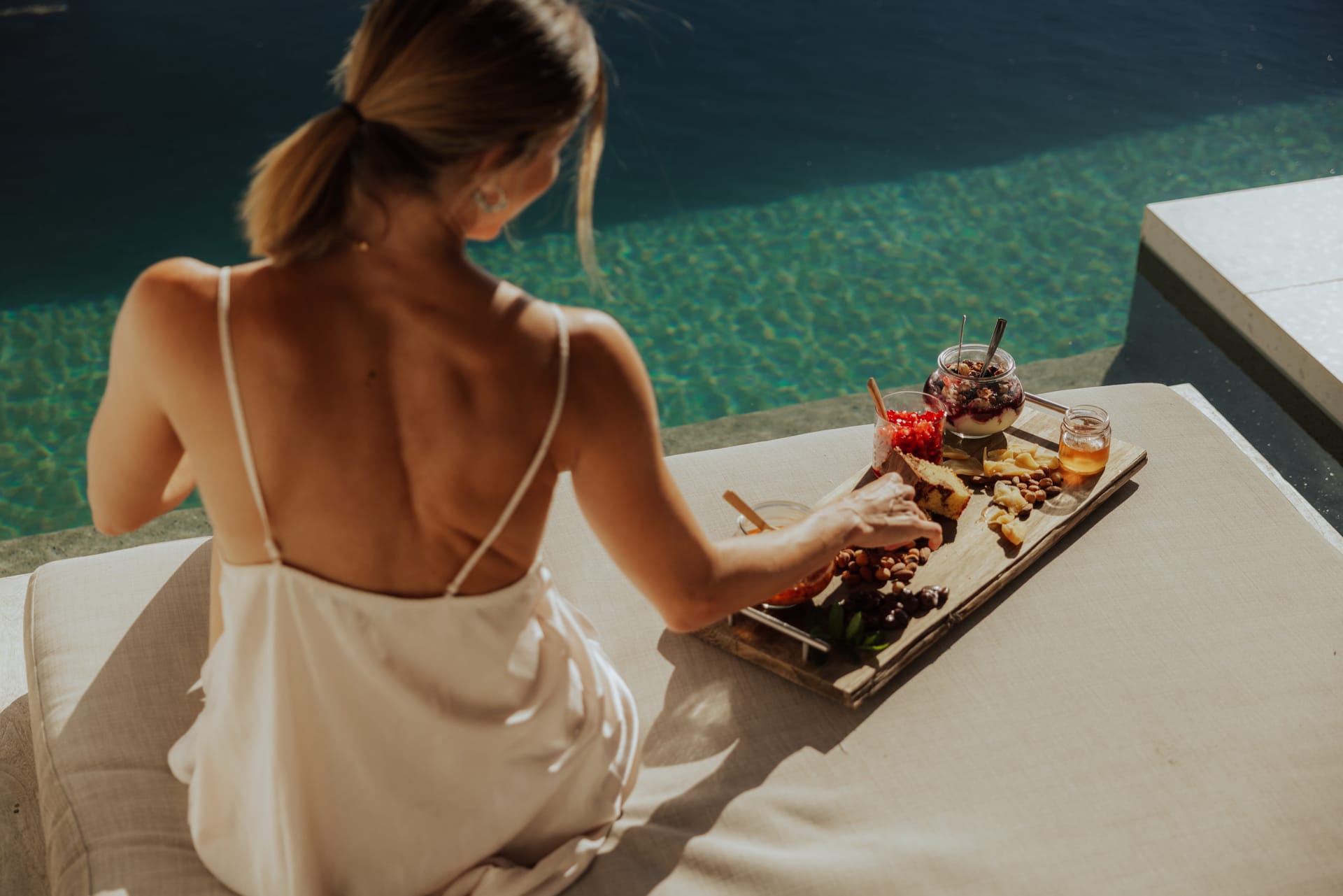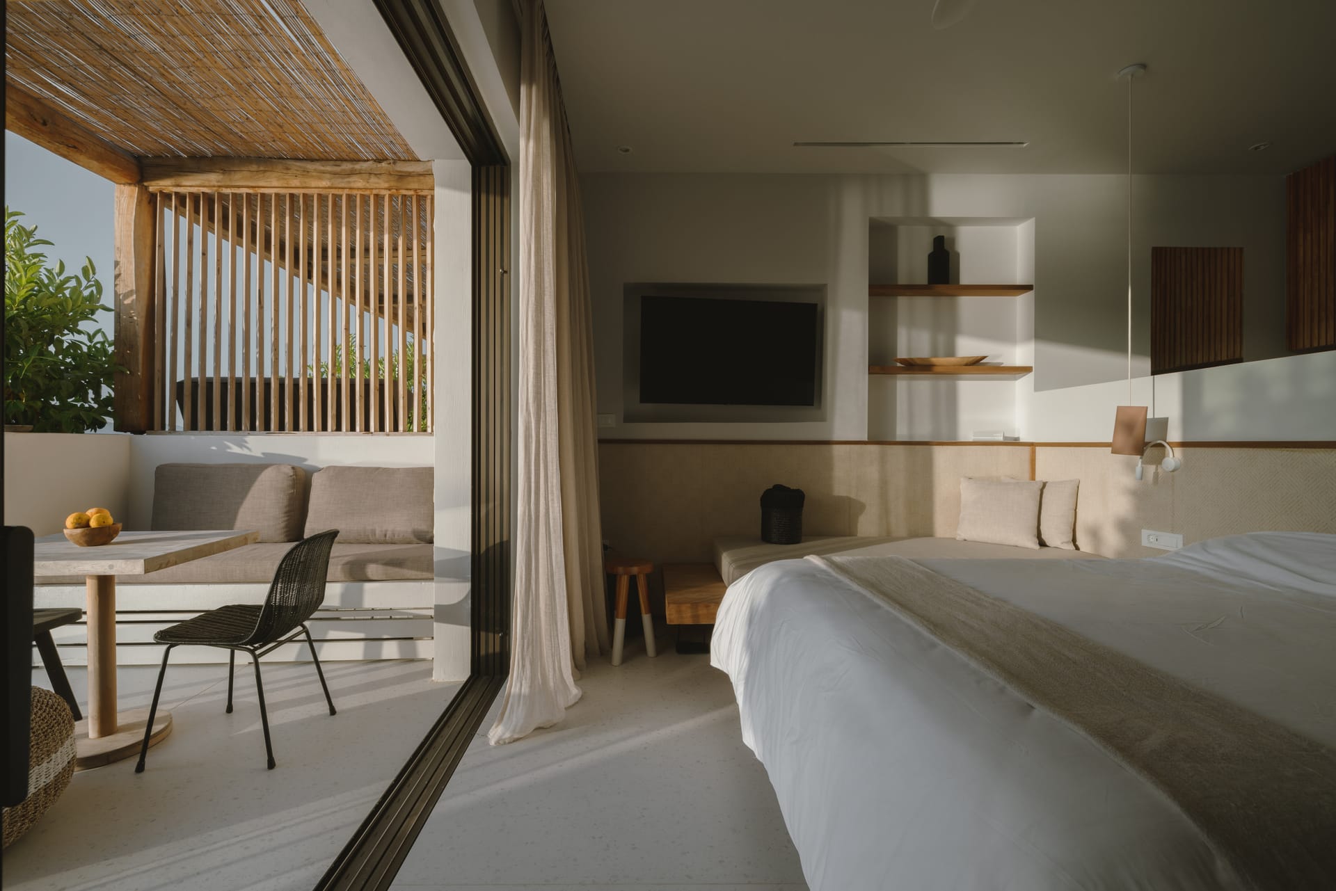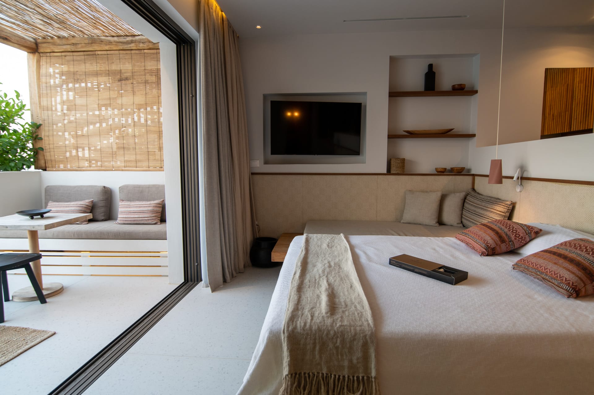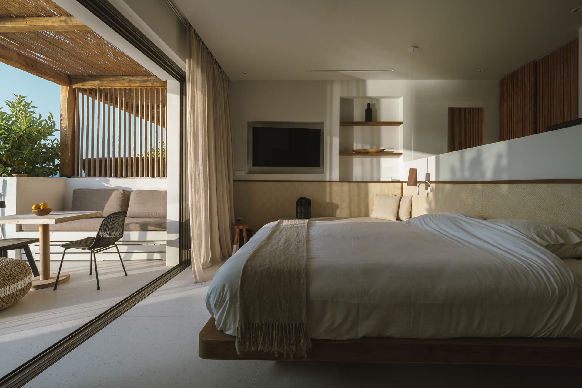 Sleep soundly on a high quality teakwood bed and natural, sustainable Coco-Mat mattress. Take a refreshing shower or luxuriate in the bathtub with our specially selected Zealots, Greek Culture products that are inspired by ancient art, natural ingredients and a touch of alchemy. Indulge your senses, lie back and drink in the stunning panoramic view of the Ionian Sea and Acarnanian Mountains before you. Or venture outside to the serene lounge area, immerse yourself in your own private infinity pool then recline on the sun deck until the sun goes down. Amethyst Selene Suites offer the perfect combination of tranquility and seclusion.