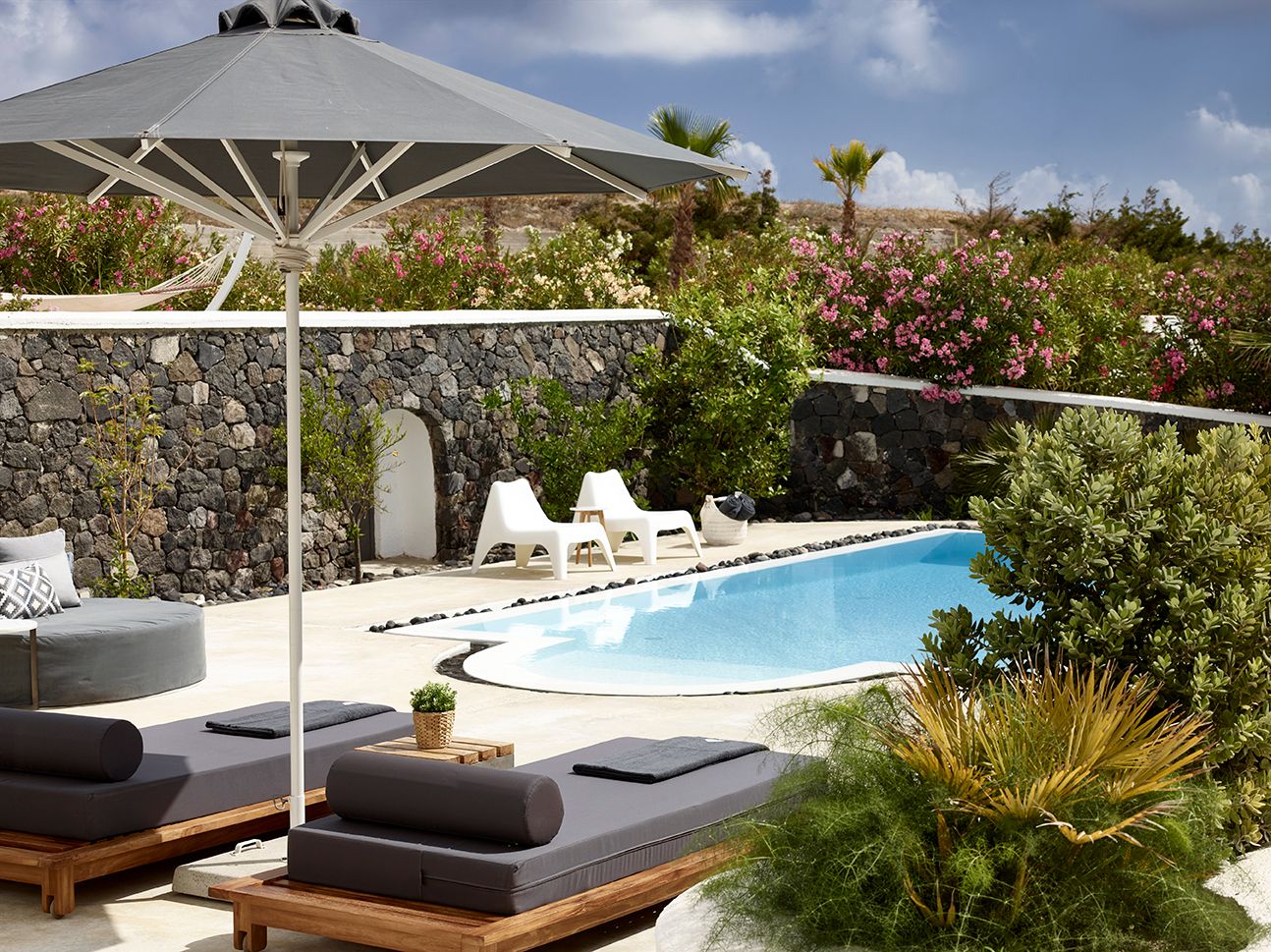 This lovely villa for up to 6 guests, is a modern and comfortable villa ideal for couples, friends or family who wish to enjoy a quiet stay in an idyllic and tranquil location in Santorini! Villa Aqua is of 150 sq.m. in dimensions, and spans in 2 levels. Featuring a private pool with a sun terrace, this villa includes a 32" flat-screen, satellite TV, a DVD player and a fully equipped kitchen.