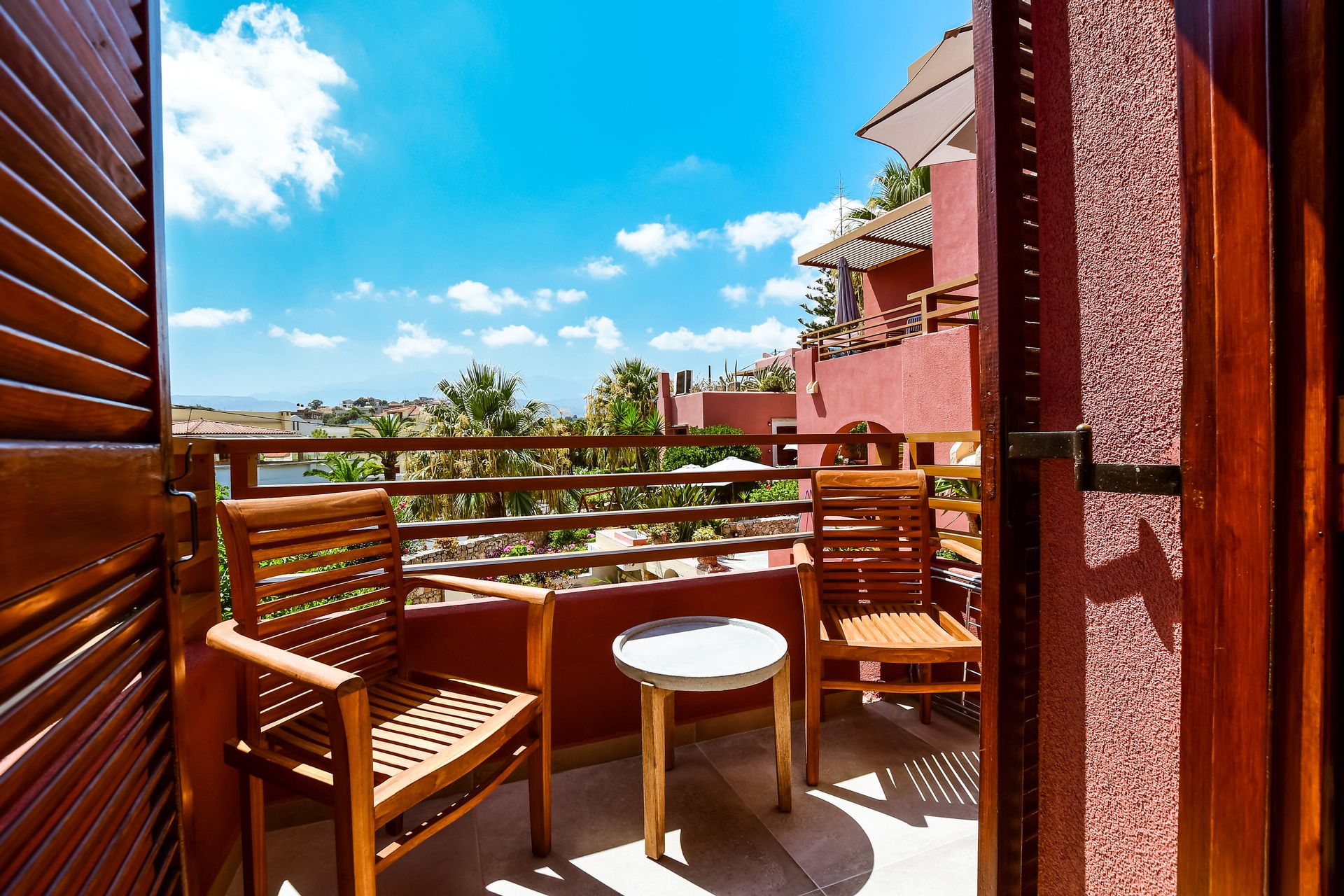 This recently renovated two storey room type comes with excellent details, one bedroom with twin beds, two modern style bathrooms with shower, a fully equipped kitchen with electric appliances (Coffee Maker, Toaster, Kettle and Microwave Oven) and a furnished balcony as well as a terrace, with garden view.