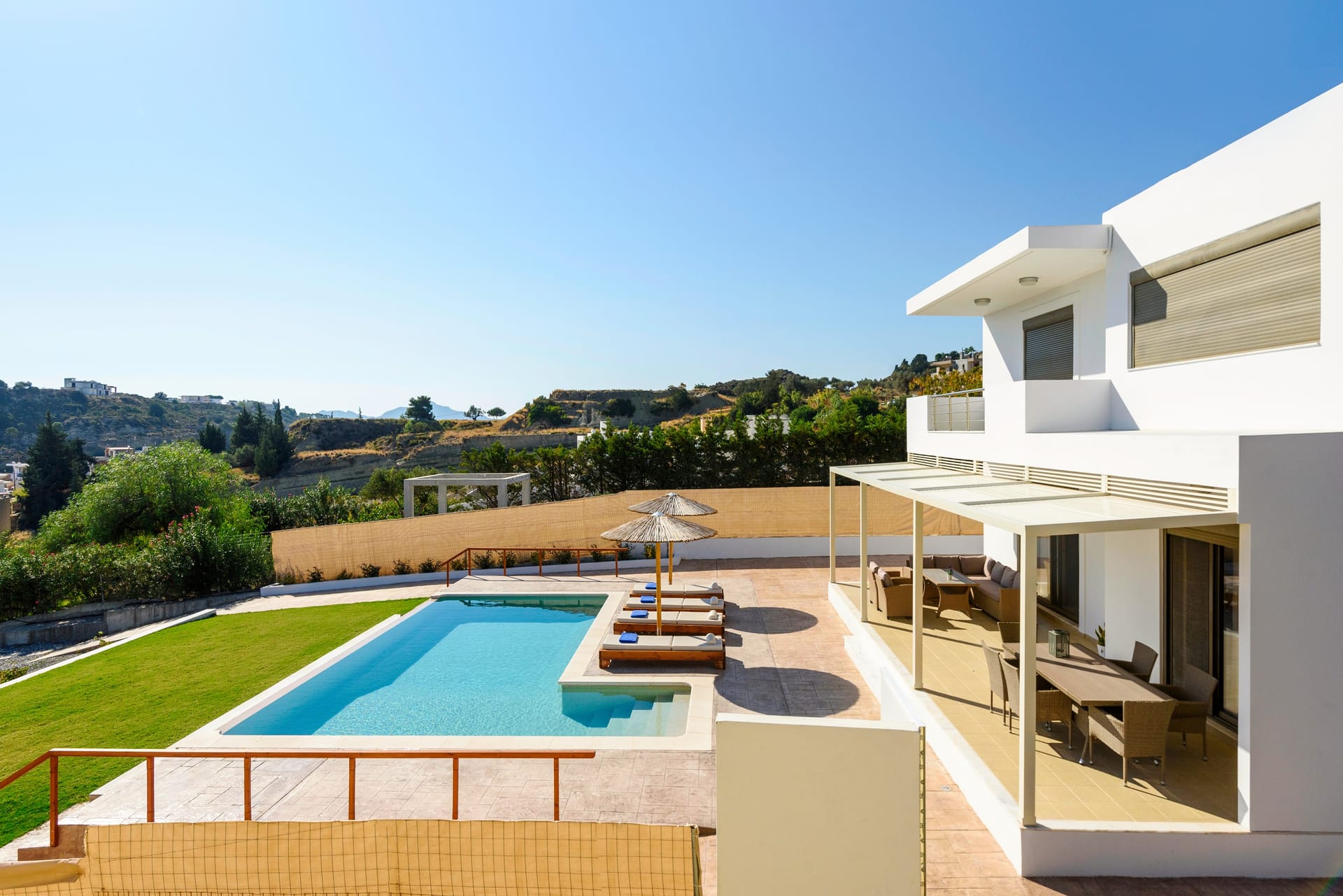 The exclusive villa features 7 spacious bedrooms, 7 bathrooms/1 WC, a comfortable living room and dining area and a fully equipped kitchen. The interior of the villa as well as the exterior was created using material of the highest quality, designers furniture and state of the art technology and equipment to extend to its select guests an enlarged experience of simplistic sophistication. On the vast outdoor area of the villa lies a refreshing large outdoor private pool and a outdoor lounge and sitting area with lavish sun beds and a bar area where guests can have memorable entertaining moments throughout the day and night.